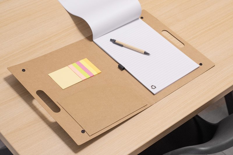 Papierowa teczka konferencyjna BOTE A4, zamykana na napy, to elegancki i ekologiczny dodatek dla profesjonalistów. Wyposażona w wygodny uchwyt, ułatwia przenoszenie dokumentów na spotkania i konferencje. W środku znajduje się papierowy długopis, brulion A4, kieszeń na pojedyncze kartki oraz zestaw karteczek karteczek. BOTE stanowi doskonałą alternatywę dla teczek wykonanych z innych materiałów, łącząc funkcjonalność z troską o środowisko.