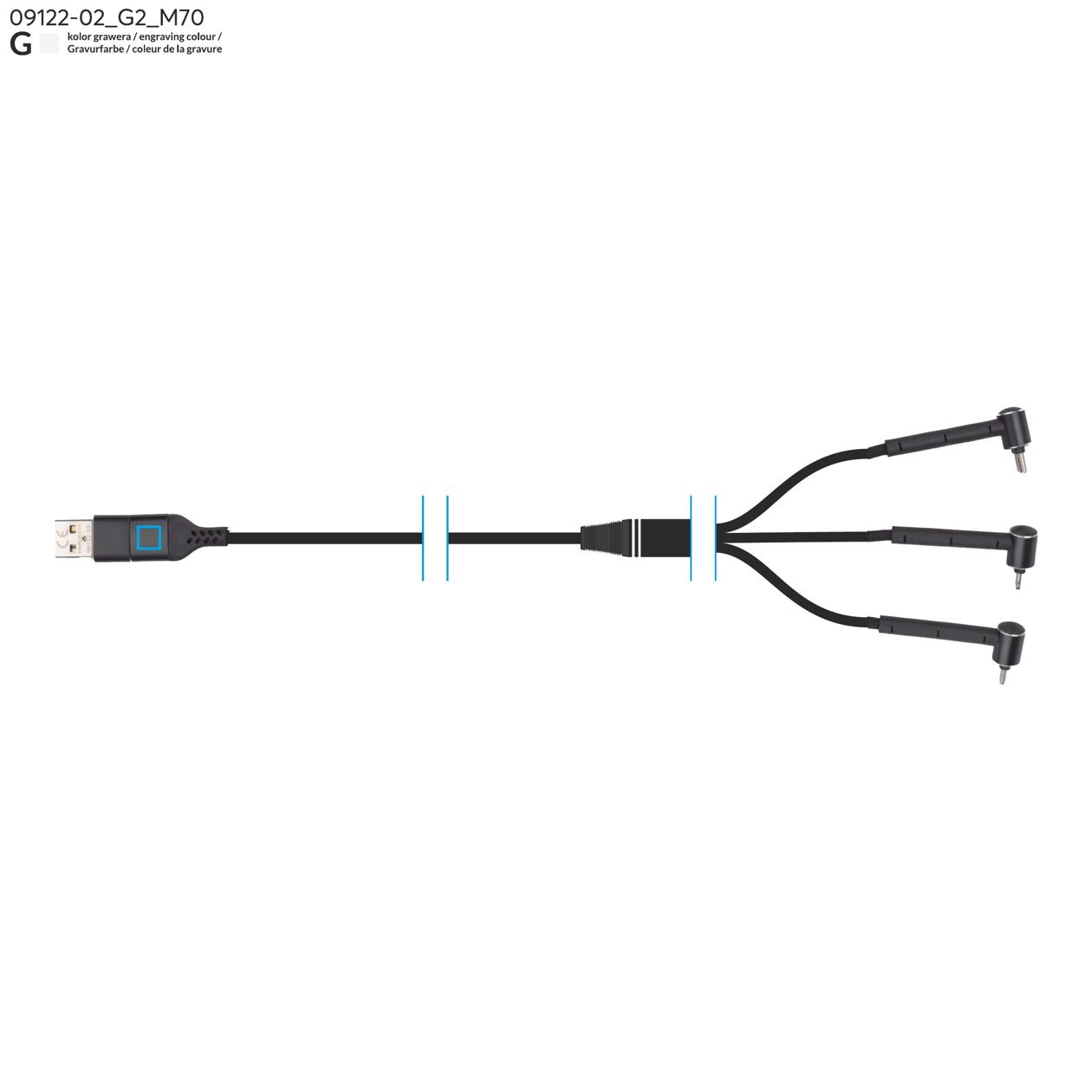 Kabel USB do ładowania RICO to aż sześć funkcji w jednym produkcie. Posiada dwa wejścia: USB-A i USB-C i trzy wyjścia: micro USB, USB-C i Lightning (iPhone). Dodatkowo, trzy końcówki posiadają specjalne wzmocnienia z tworzywa, które umożliwiają zastosowanie kabla jako stojaka na telefon! Sam przewód powleczony jest wytrzymałym materiałem i ma długość ok. 1,20 m. Tylko do ładowania.