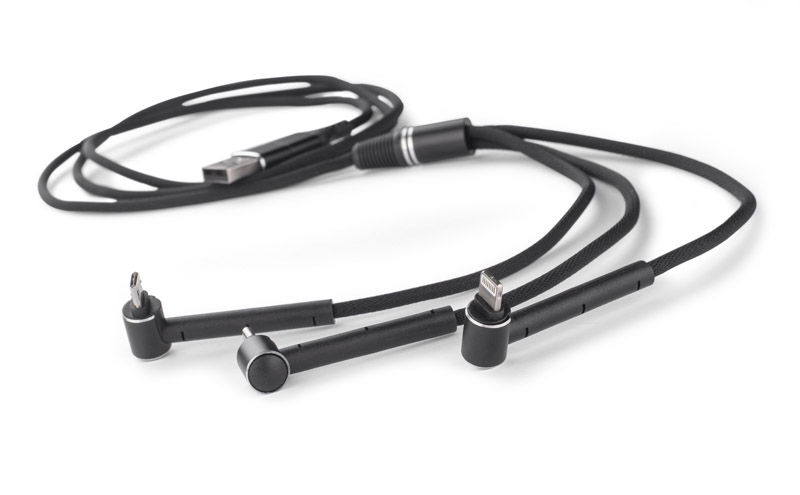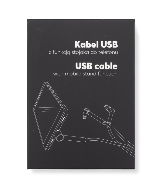 Kabel USB do ładowania RICO to aż sześć funkcji w jednym produkcie. Posiada dwa wejścia: USB-A i USB-C i trzy wyjścia: micro USB, USB-C i Lightning (iPhone). Dodatkowo, trzy końcówki posiadają specjalne wzmocnienia z tworzywa, które umożliwiają zastosowanie kabla jako stojaka na telefon! Sam przewód powleczony jest wytrzymałym materiałem i ma długość ok. 1,20 m. Tylko do ładowania.