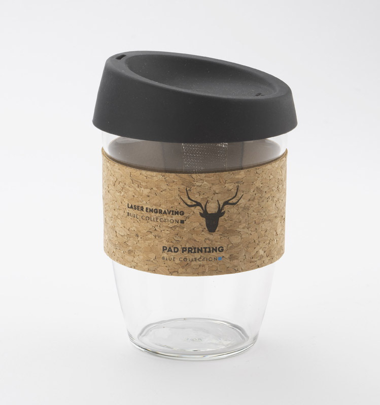 Kubek SKLO wykonany jest ze szkła borokrzemowego, które jest szkłem o wysokiej jakości i jest odporne na wysoką temperaturę. Korkowy pasek ułatwia trzymanie, zapobiega poparzeniom oraz wyślizgnięciu się kubka z ręki, a także stanowi element ozdobny. Pokrywka z otworem do picia wykonana jest z silikonu. Kubek świetnie sprawdzi się jako zamiennik dla tych z plastiku, czy papieru. Nieśmy w świat ideę eko!