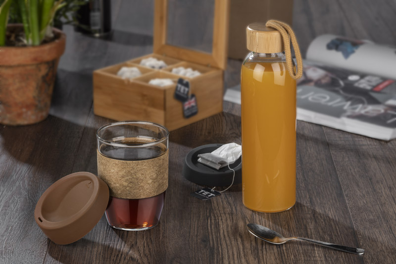 Kubek SKLO wykonany jest ze szkła borokrzemowego, które jest szkłem o wysokiej jakości i jest odporne na wysoką temperaturę. Korkowy pasek ułatwia trzymanie, zapobiega poparzeniom oraz wyślizgnięciu się kubka z ręki, a także stanowi element ozdobny. Pokrywka z otworem do picia wykonana jest z silikonu. Kubek świetnie sprawdzi się jako zamiennik dla tych z plastiku, czy papieru. Nieśmy w świat ideę eko!