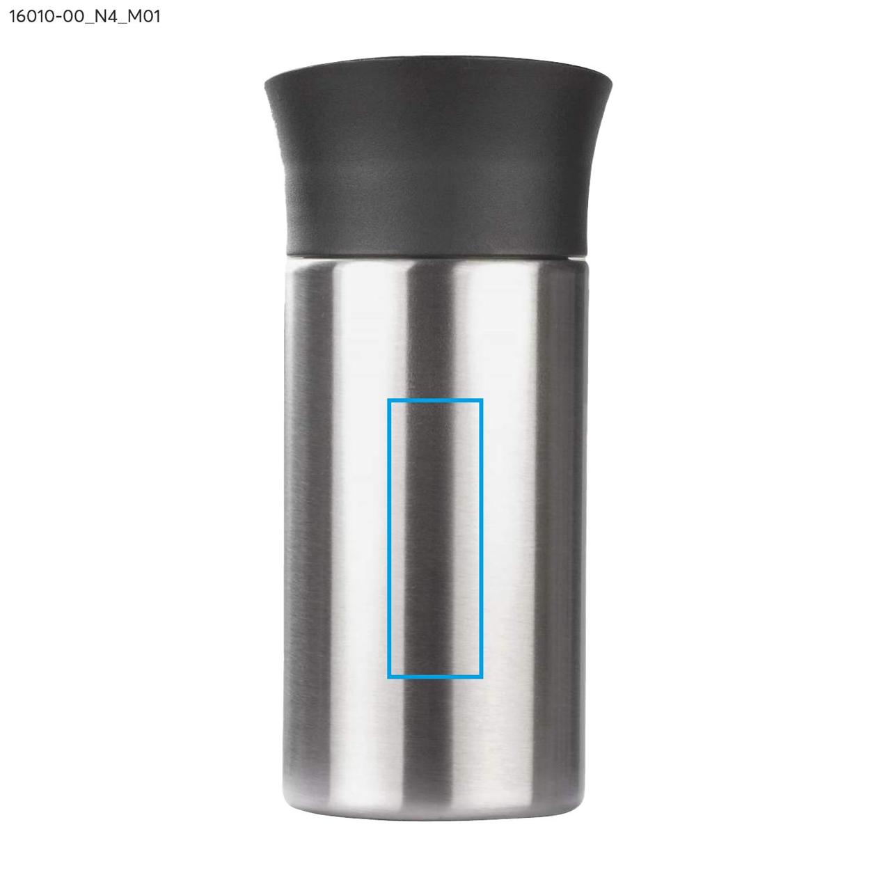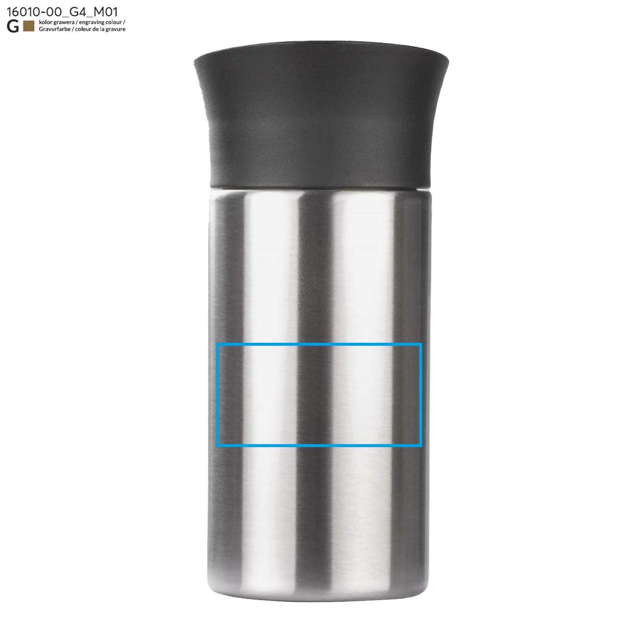Kubek EDDY jest wykonany ze stali. Posiada bardzo wygodne zamknięcie z tworzywa z systemem click, które zapewnia szczelność i możliwość picia z każdej strony. Wnętrze wykonane ze stali nierdzewnej o podwyższonym standardzie. Pojemność 300 ml sprawia, że nie przytłacza swoim rozmiarem. Utrzymuje temperaturę do 13 godzin.