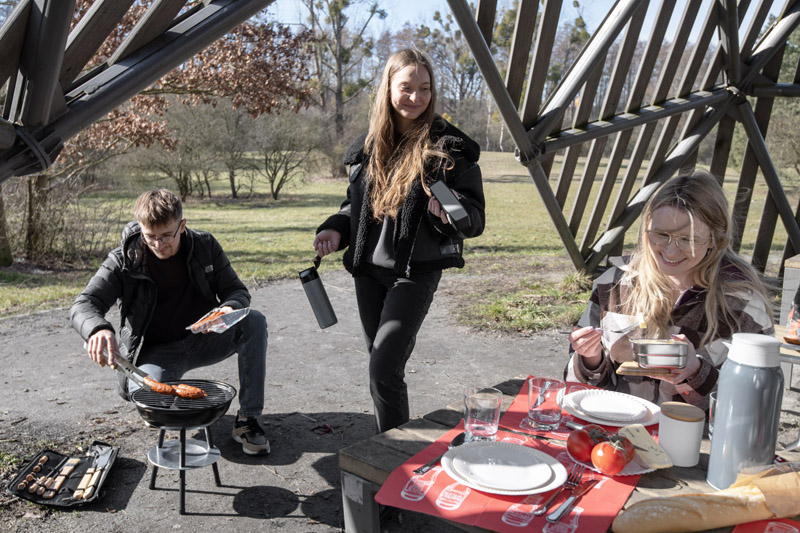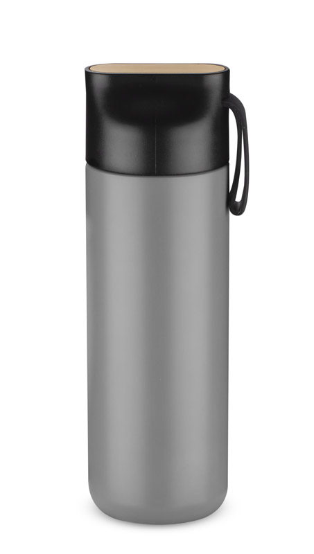Butelka termiczna ELSA wykonana jest ze stali nierdzewnej o podwyższonym standardzie. Posiada próżnię między ściankami, dzięki czemu utrzymuje temperaturę napoju około 10 godzin. Zakrętka z tworzywa posiada ozdobny element z naturalnego bambusa i silikonowy uchwyt.