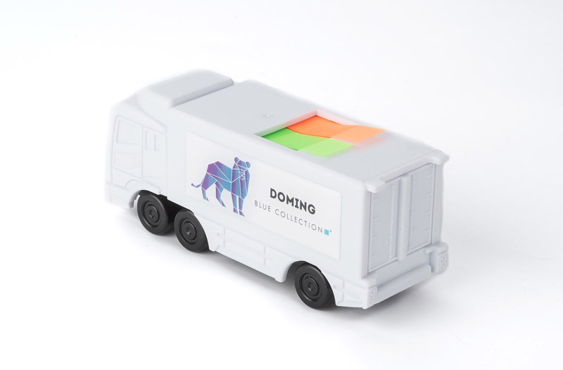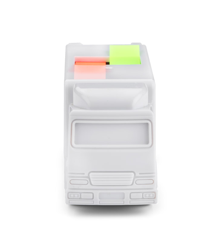 Karteczki samoprzylepne CARGO zawierają foliowe znaczniki w 2 kolorach (2 bloczki po 20 szt.). Atrakcyjny wygląd podajnika w kształcie ciężarówki jest ciekawą ozdobą biurka. Wykonany z tworzywa.