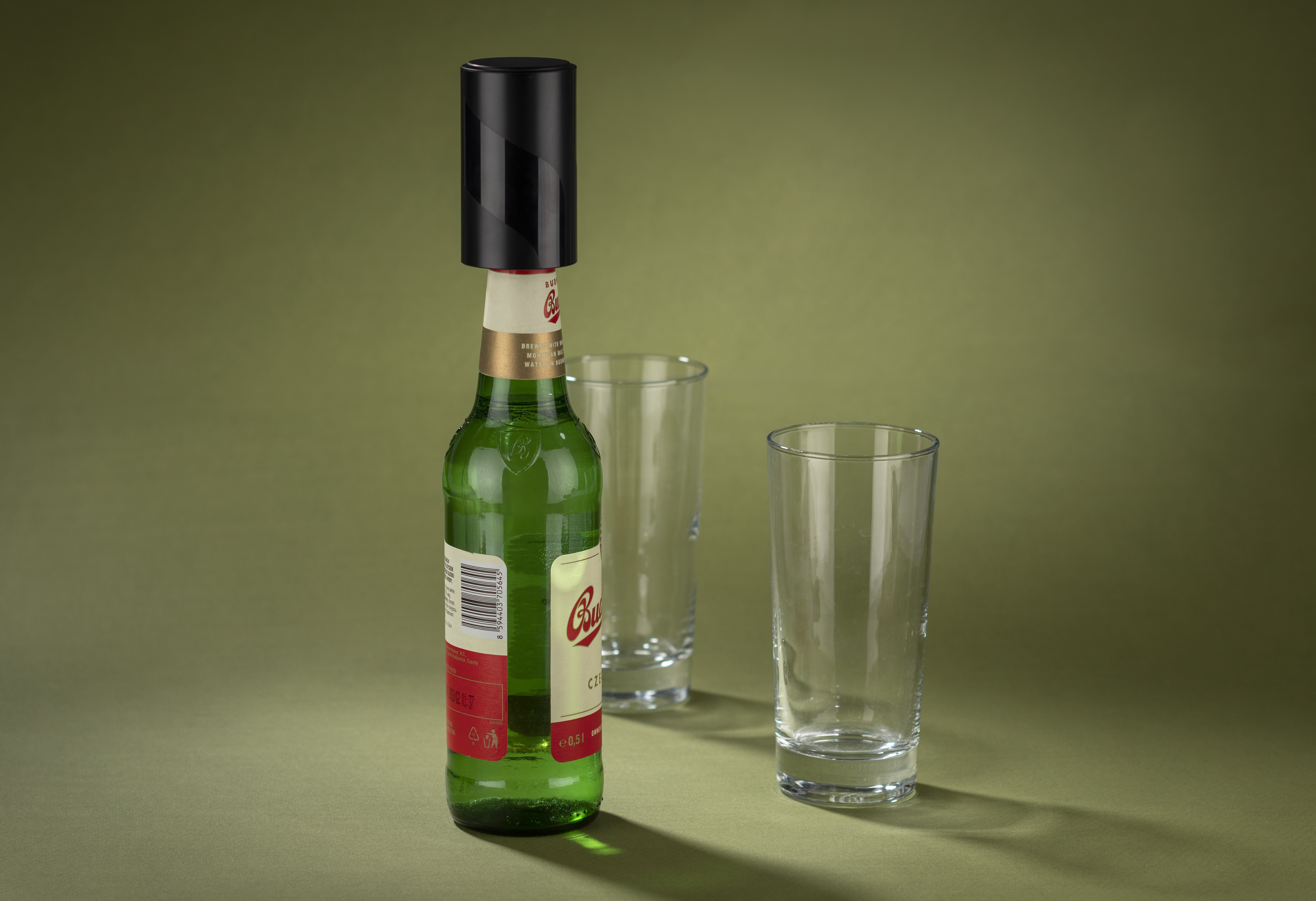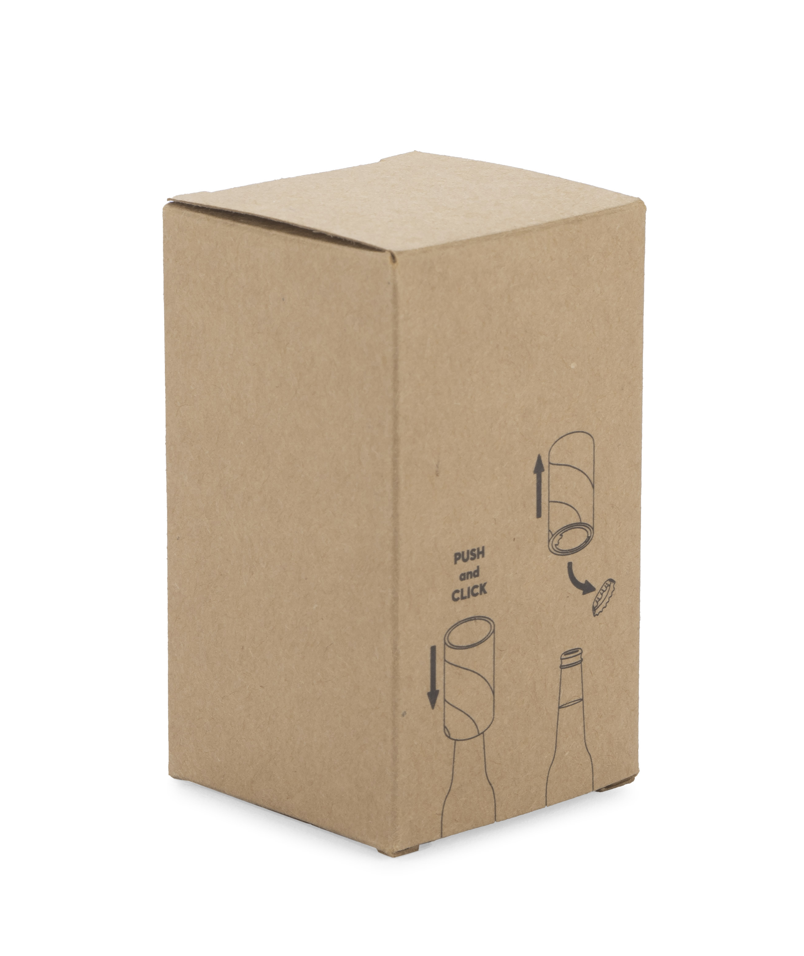 Otwieracz do butelek KOL wykonany z trwałego tworzywa ABS. Umożliwia otwarcie butelki z kapslem w łatwy sposób. Zapakowany w kartonik z papieru kraftowego. Posiada infografikę sugerującą sposób użycia.