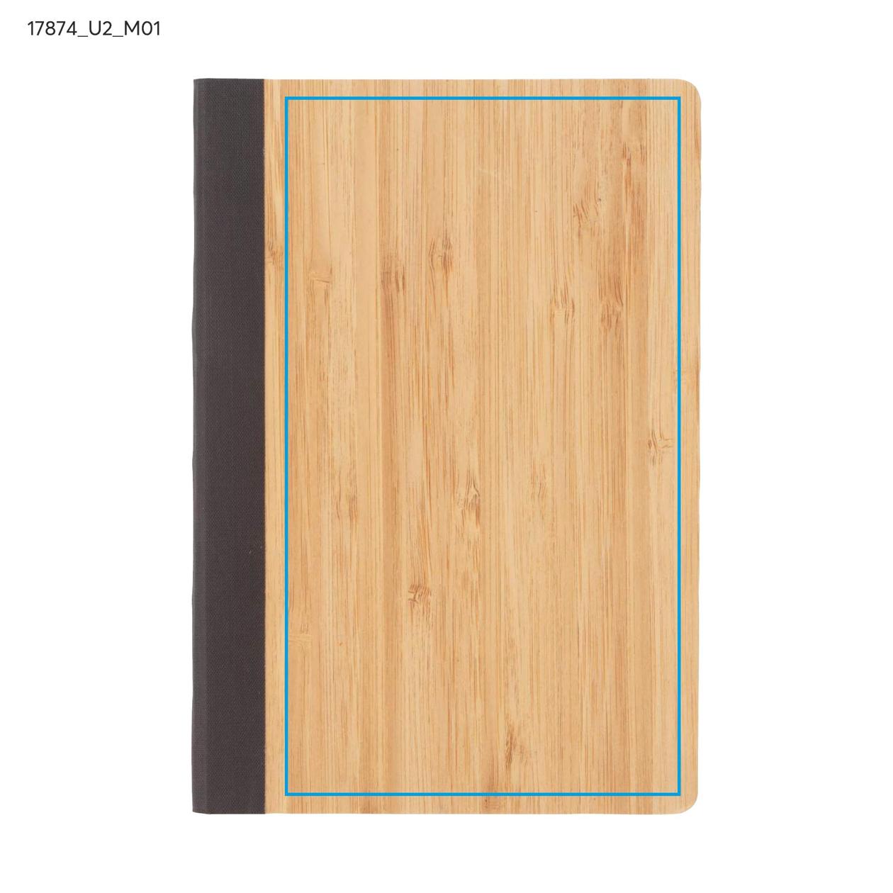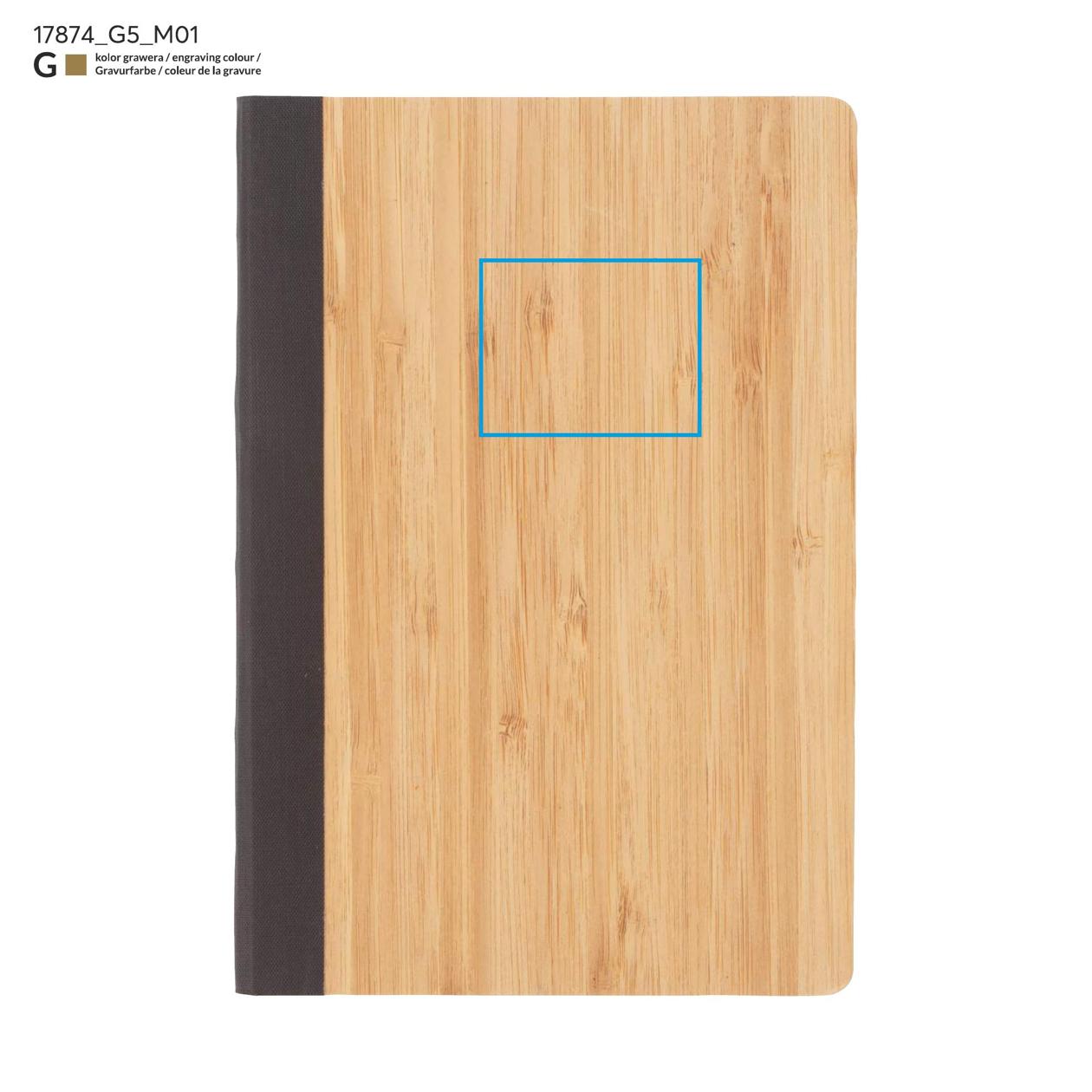 Oryginalny i wyjątkowy notes formatu A5. Okładka wykonana z bambusa zakończona na brzegu brązową taśmą, która stanowi ciekawy i ozdobny element. Kartki w notesie wyprodukowane zostały z papieru kamiennego. Taki papier jest wyjątkowo odporny na rozdarcia oraz na wilgoć. Posiada 80 gładkich kartek. Zapakowany w woreczek biodegradowalny.