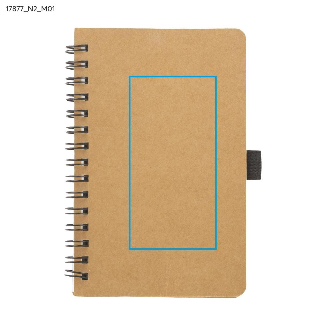 Klasyczny notes na spirali w papierowej, brązowej okładce wraz z miejscem na długopis. Kartki w notesie wykonane są z papieru kamiennego. Papier ten jest wyjątkowo wytrzymały i odporny na wilgoć. Posiada 60 kartek w linie, format A6. Zapakowany w woreczek biodegradowalny.