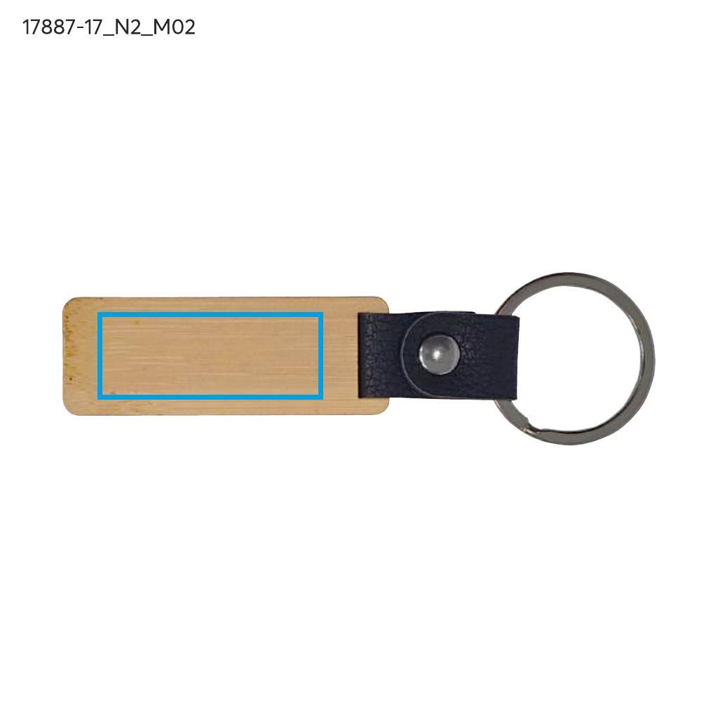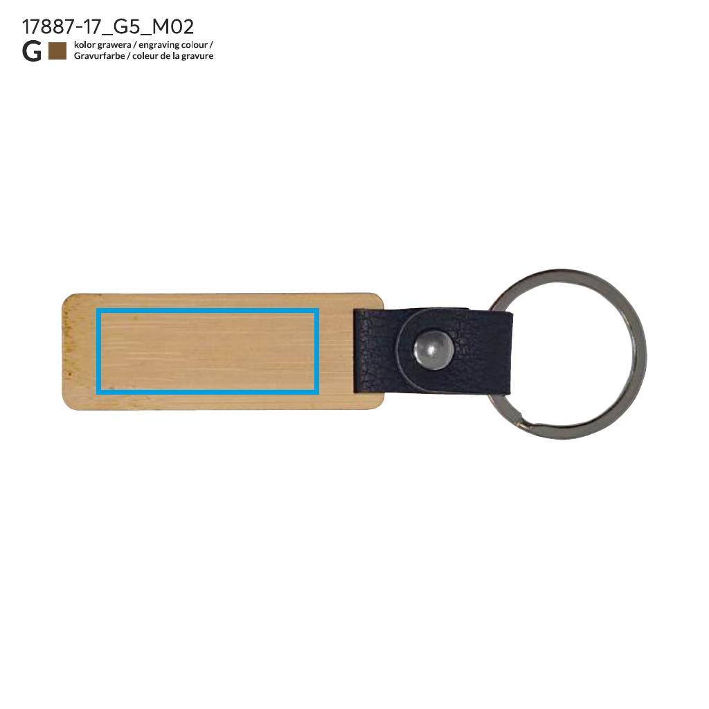 Brelok HOLZ to elegancki brelok wykonany z bambusa. Metalowa obręcz zawieszona jest na skórzanym pasku.