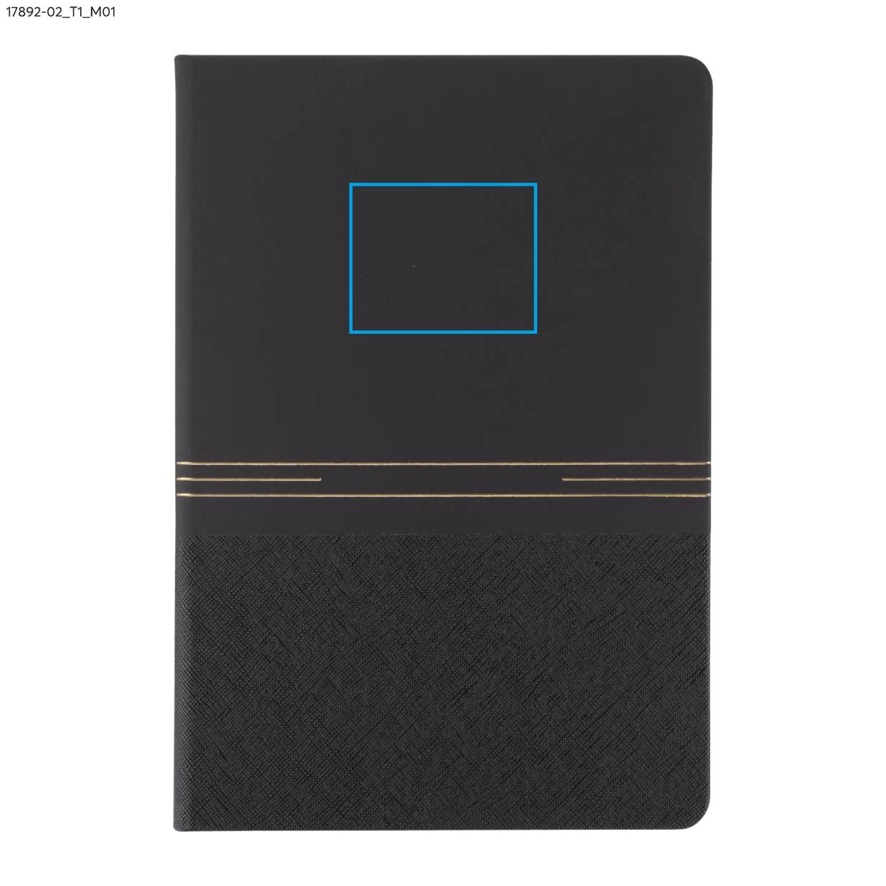 Elegancki notes w twardej okładce z ozdobnym złoceniem. Kartki w notesie wyprodukowane zostały z papieru kamiennego. Taki papier jest wyjątkowo odporny na rozdarcia oraz na wilgoć. Posiada 80 kartek w kropki. Format A5.