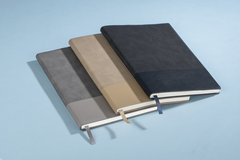 Notes FLAF w formacie A5 występuje w 3 stonowanych i eleganckich kolorach. Notes w miękkiej, okładce z łączonych materiałów: skóropodobnego (PU) i imitacji sztruksu, który jest niezwykle przyjemny w dotyku. Zawiera 80 kartek w kropki. W środku dodatkowo praktyczna wstążeczka - zakładka.