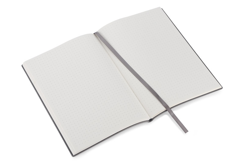 Notes FLAF w formacie A5 występuje w 3 stonowanych i eleganckich kolorach. Notes w miękkiej, okładce z łączonych materiałów: skóropodobnego (PU) i imitacji sztruksu, który jest niezwykle przyjemny w dotyku. Zawiera 80 kartek w kropki. W środku dodatkowo praktyczna wstążeczka - zakładka.