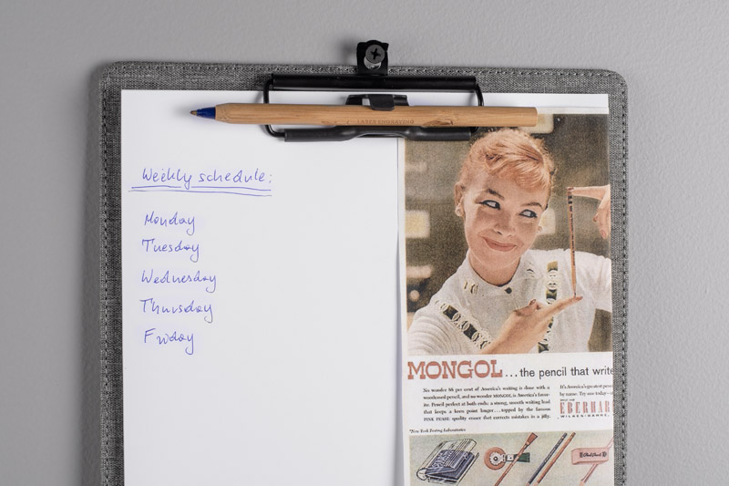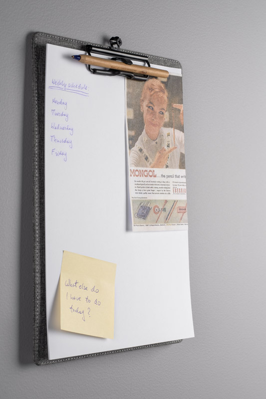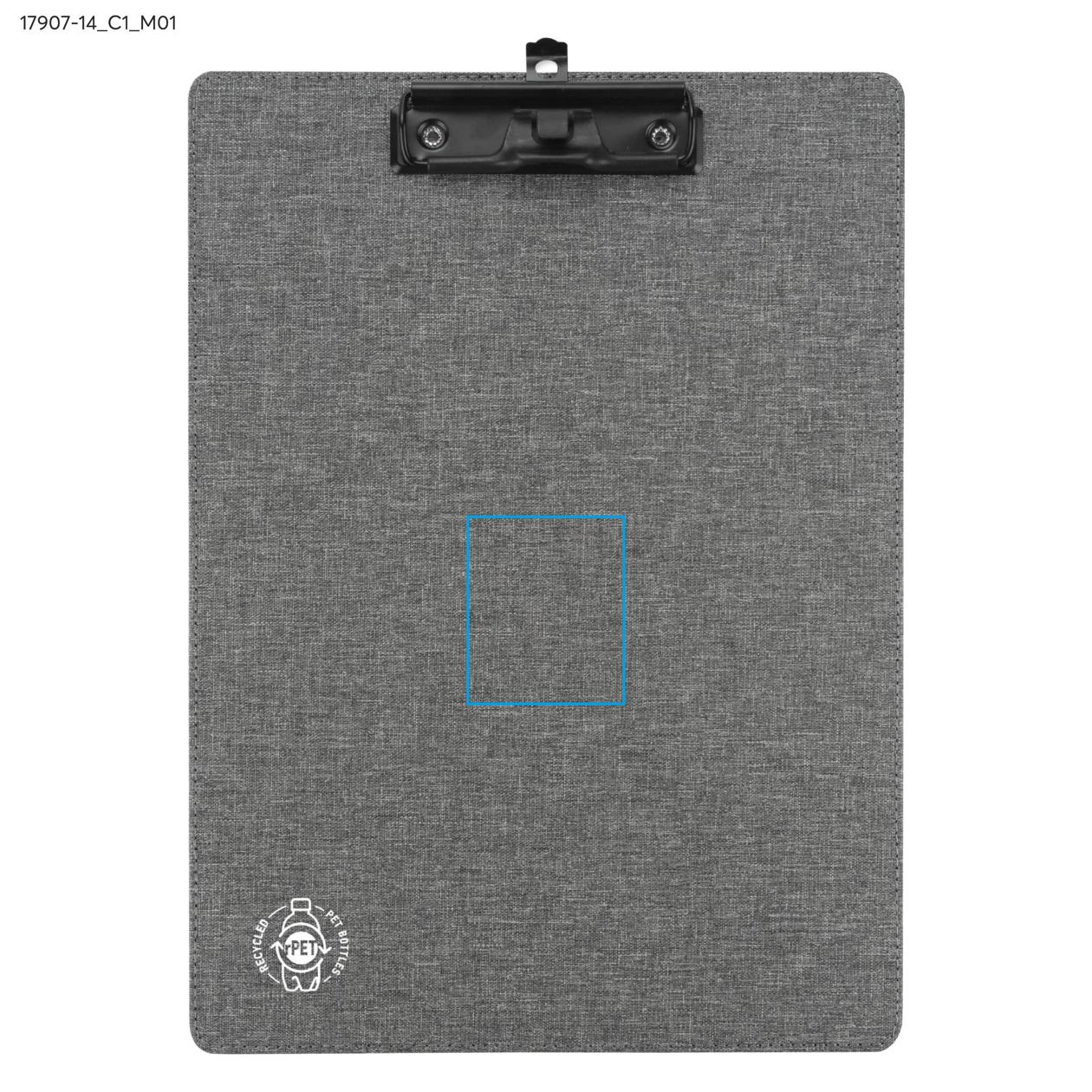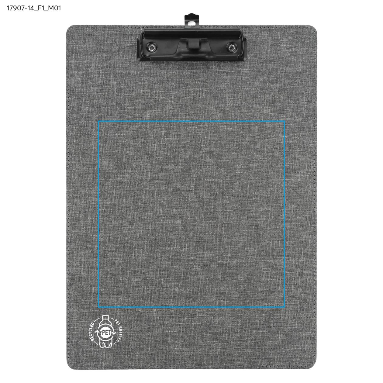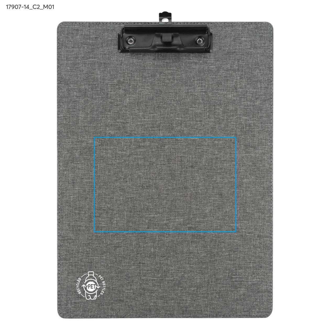 Podkładka CLIPAD to gadżet niezbędny na wszelkie konferencje czy spotkania biznesowe. W wygodny sposób można przechowywać najpotrzebniejsze dokumenty które potrzebujemy mieć przy sobie. Podkładka posiada także wieszaczek umożliwiający jej powieszenie. Wykonana z recyklingowanego tworzywa rPET.