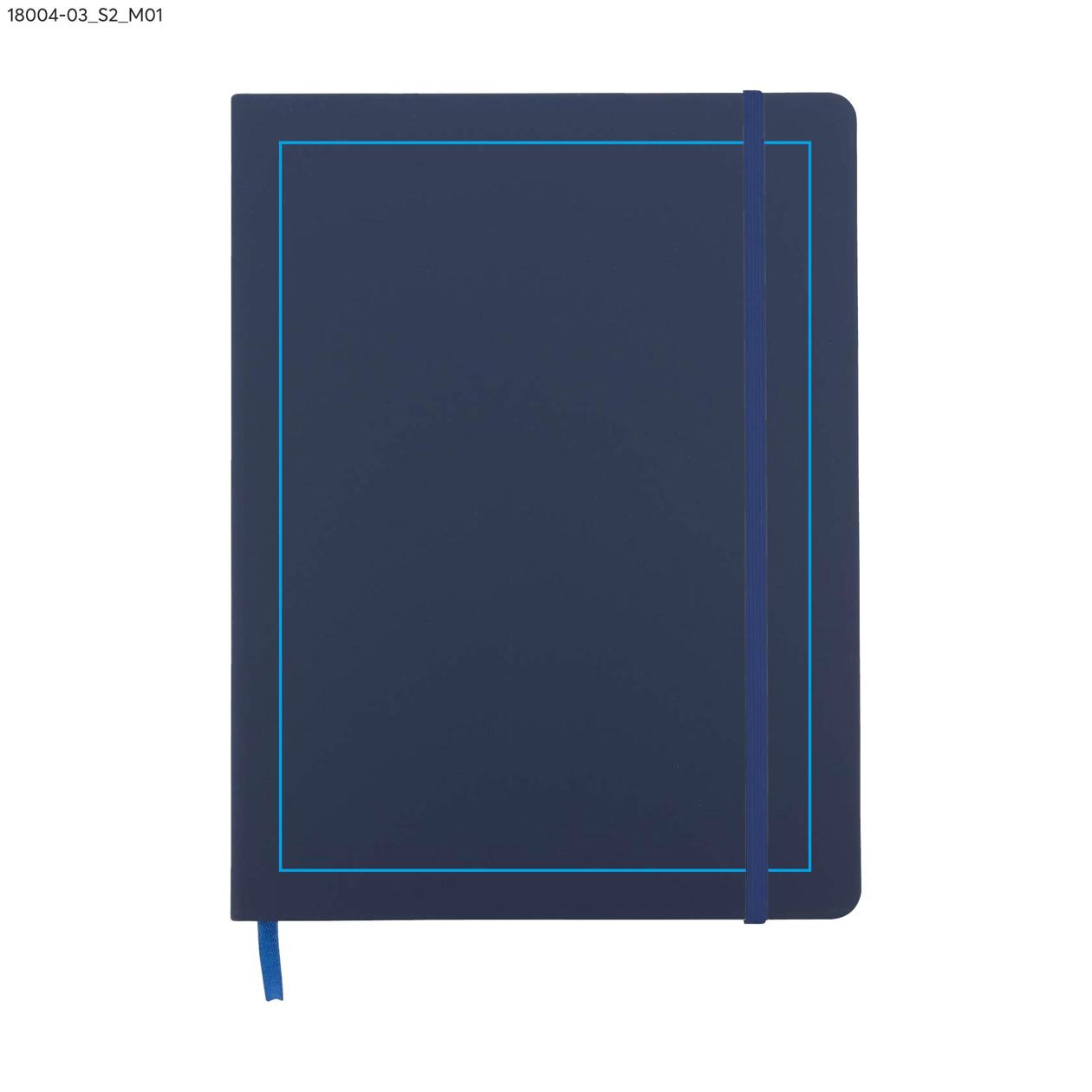 Gustowny notes VITAL B5 z kolorową gumką wykonany z materiału skóropodobnego (PU). Notes zawiera 80 kartek ecru w linie koloru pomarańczowego.