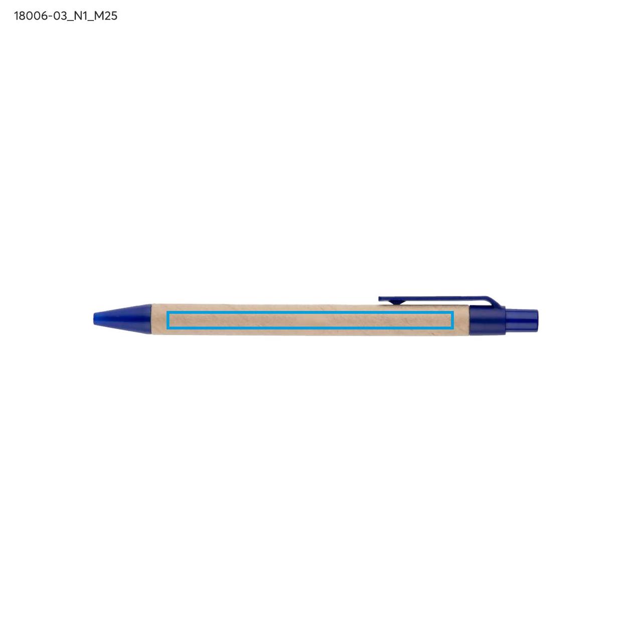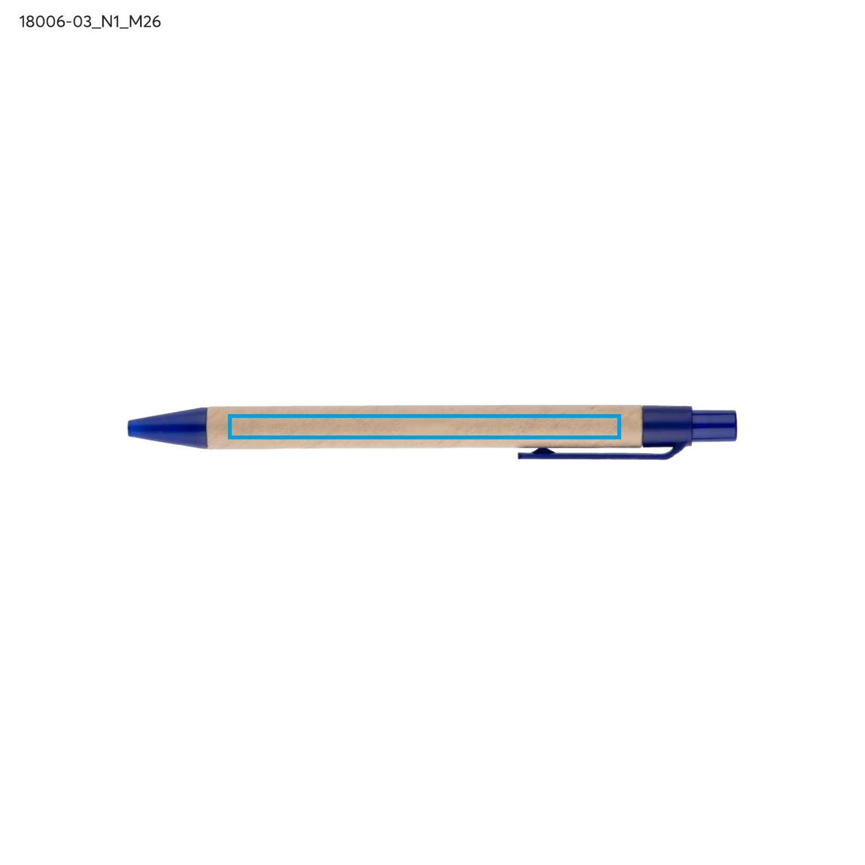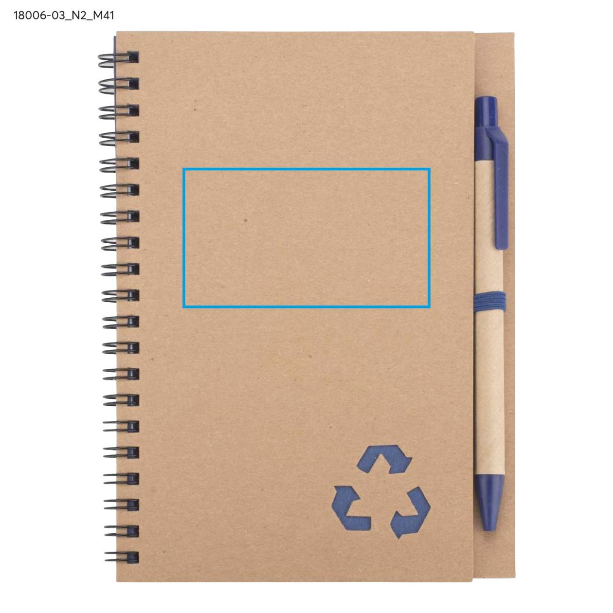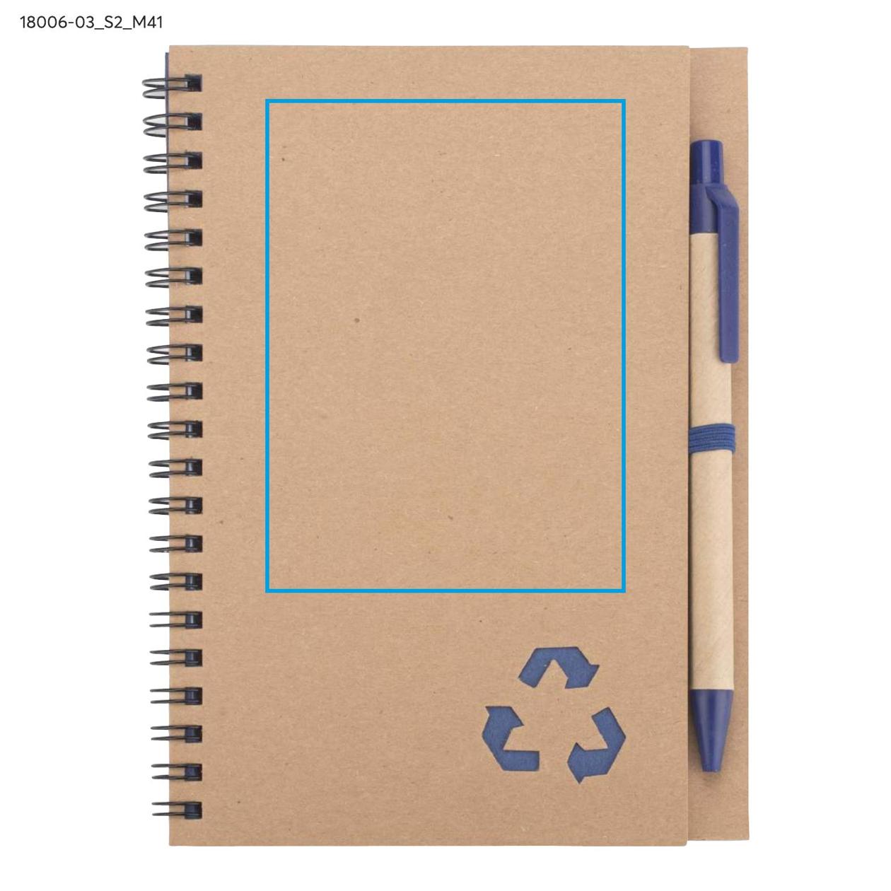 Notes SERENO na spirali w klasycznej, papierowej okładce. Posiada 70 kartek w linie. Do notesu dołączony jest w wyprofilowanym miejscu długopis, którego korpus wykonany jest z papieru. Wykończenia długopisu pasują kolorystycznie z przekładką notesu. Wkład w długopisie w kolorze niebieskim.