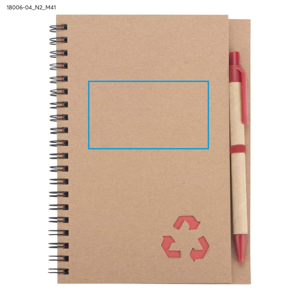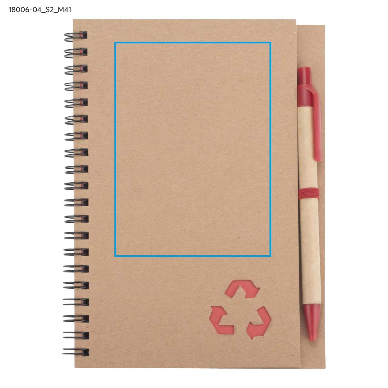Notes SERENO na spirali w klasycznej, papierowej okładce. Posiada 70 kartek w linie. Do notesu dołączony jest w wyprofilowanym miejscu długopis, którego korpus wykonany jest z papieru. Wykończenia długopisu pasują kolorystycznie z przekładką notesu. Wkład w długopisie w kolorze niebieskim.