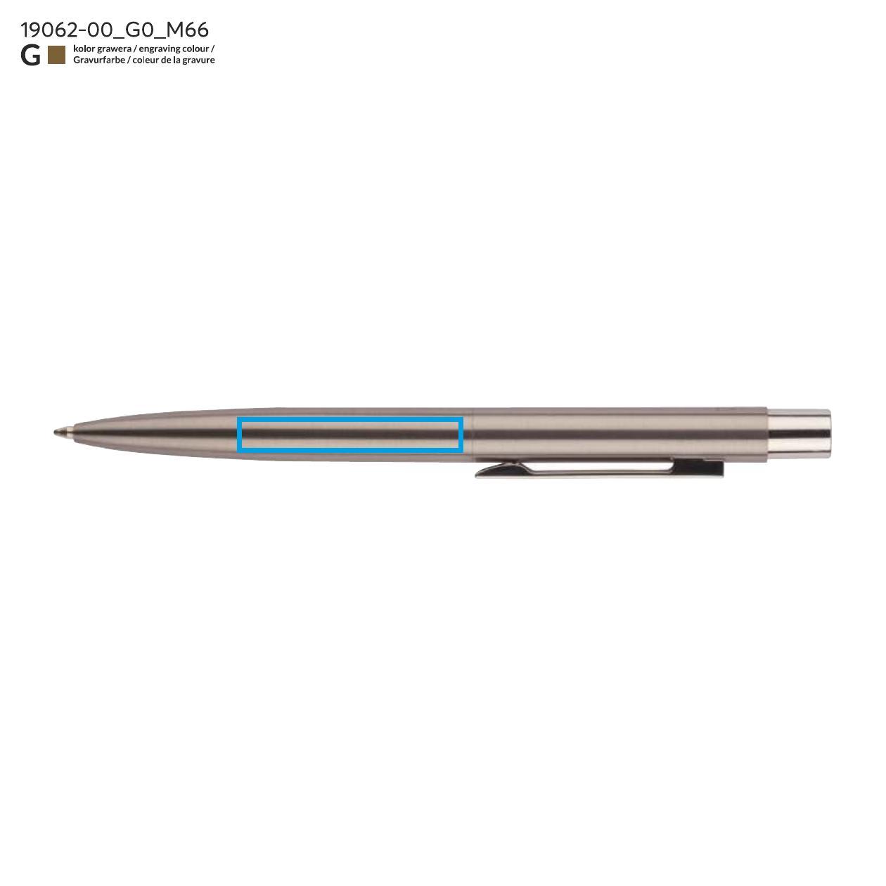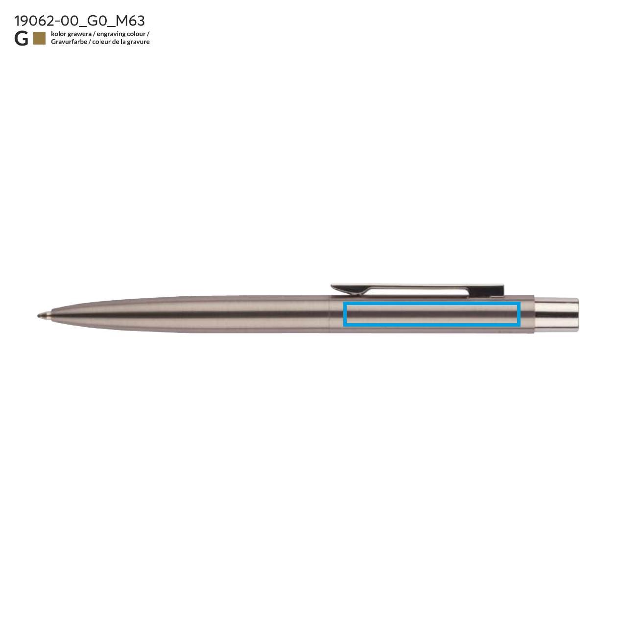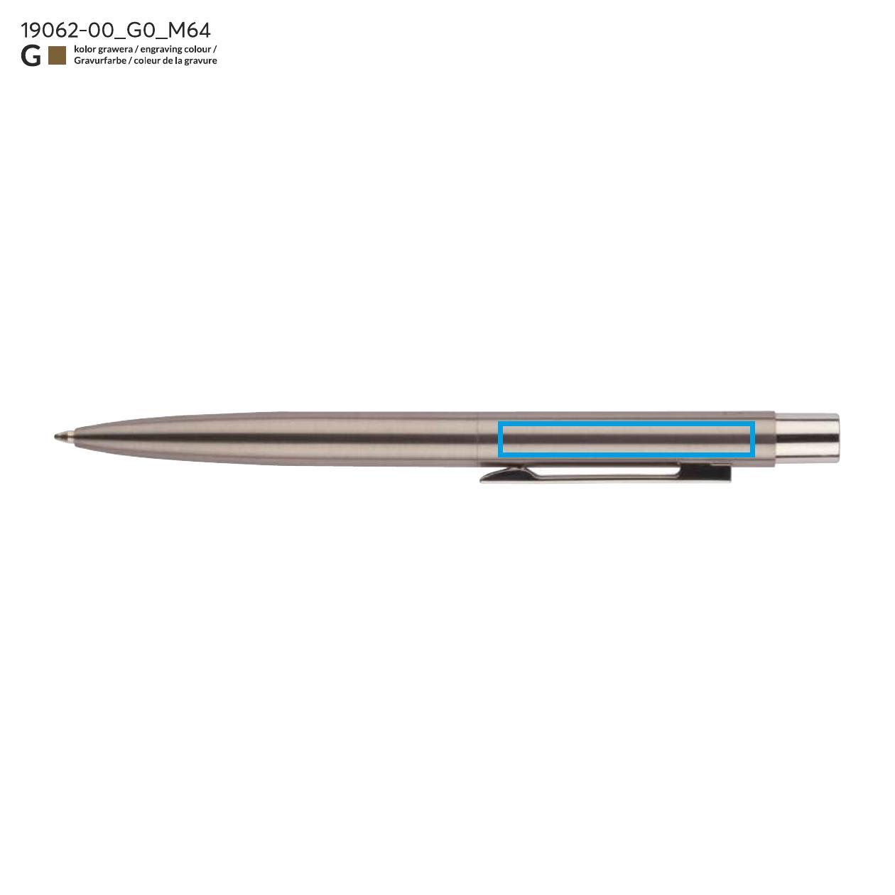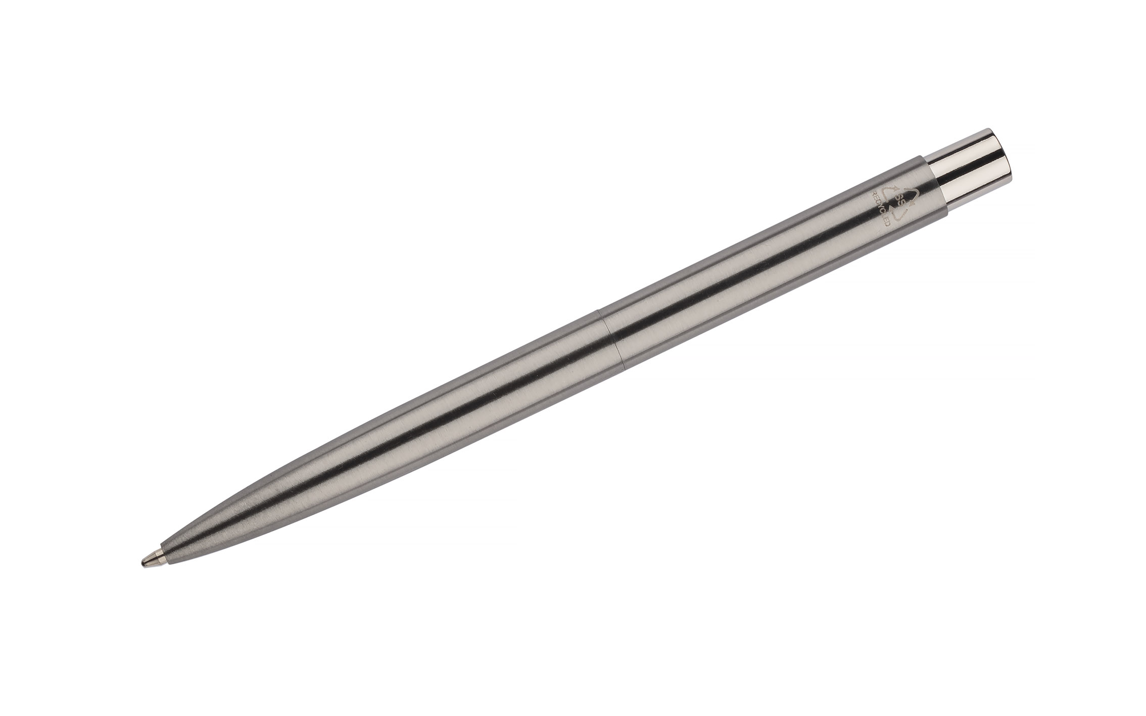 Długopis DELOX prezentuje się niezwykle elegancko. Wykonany z recyklingowanej stali nierdzewnej. Wkład w kolorze niebieskim.