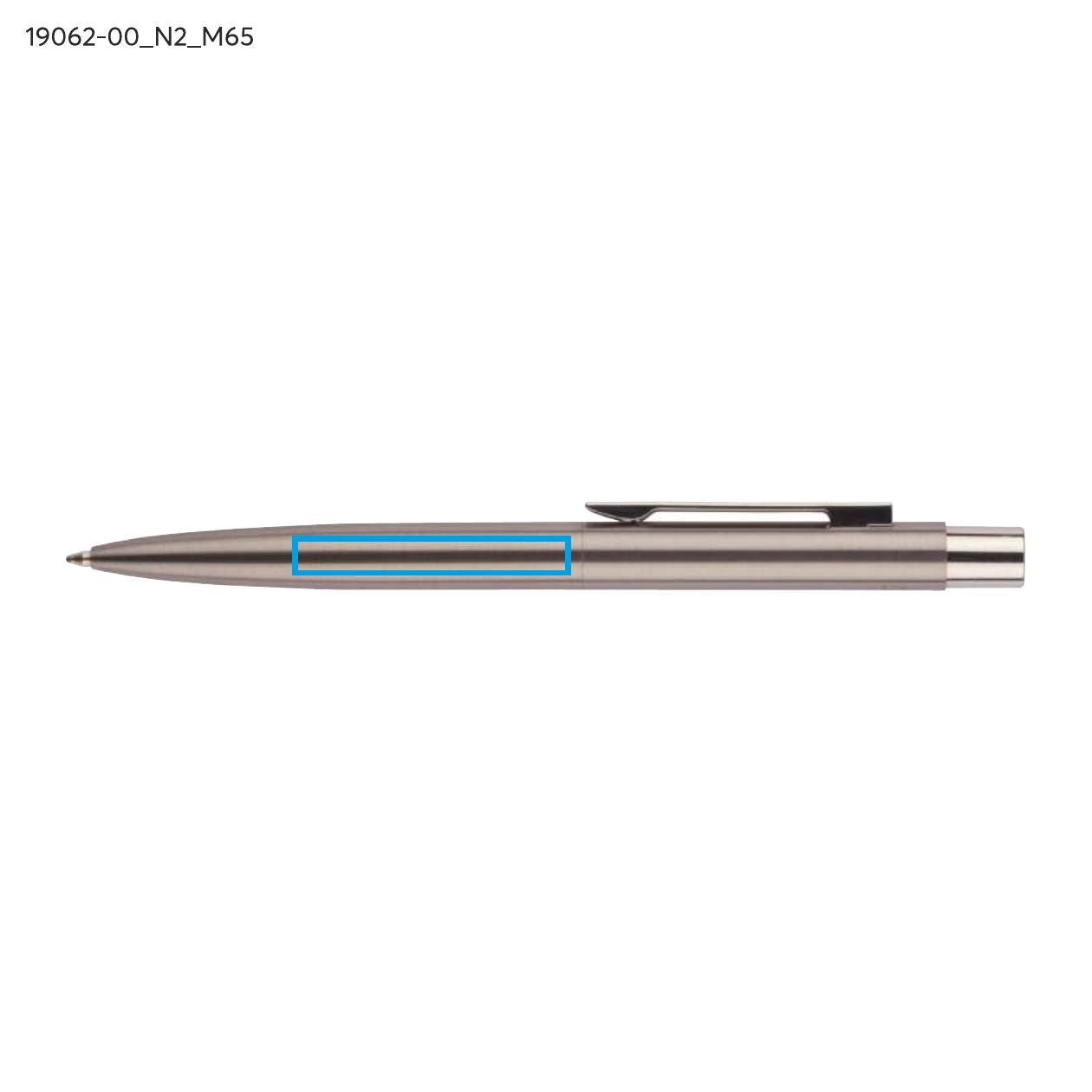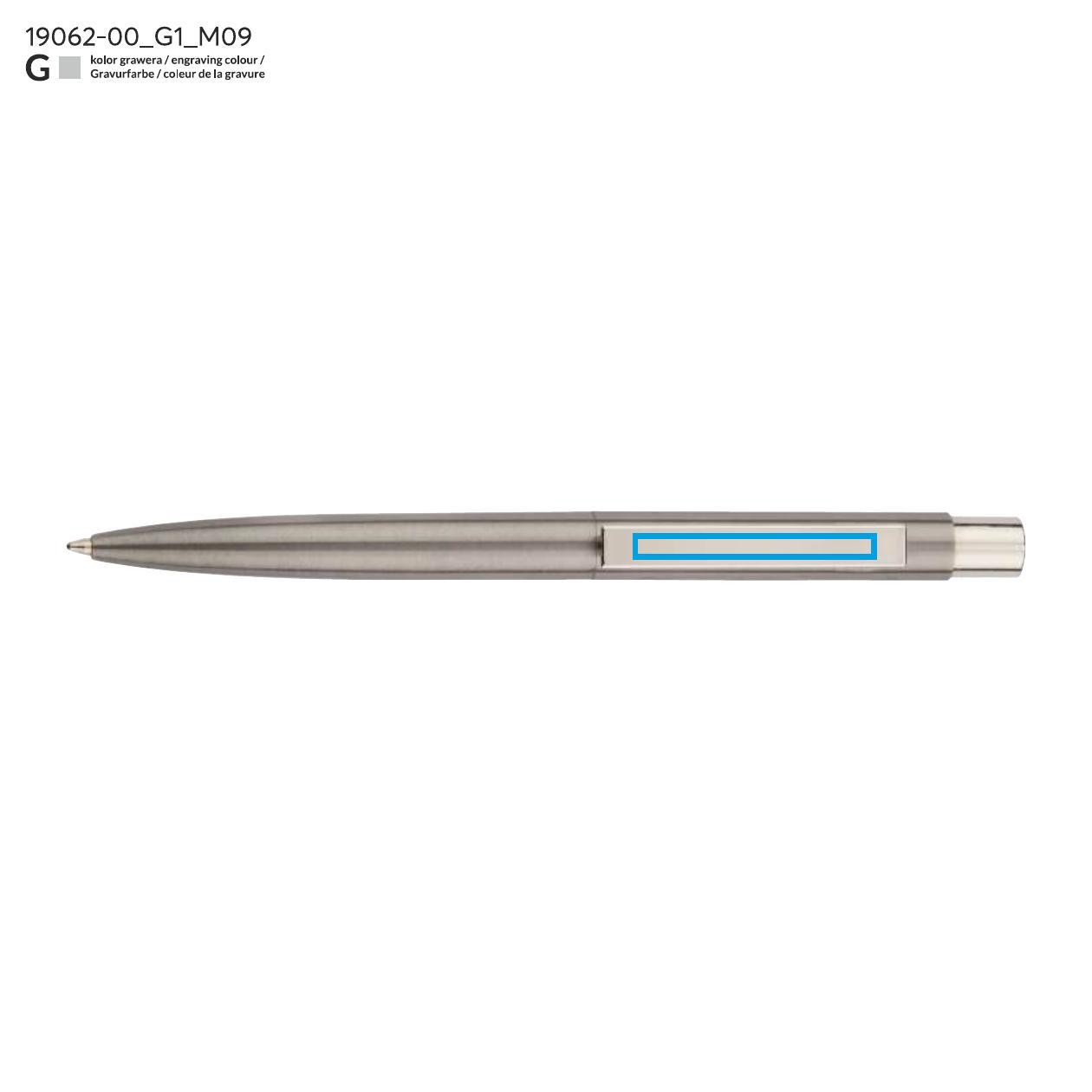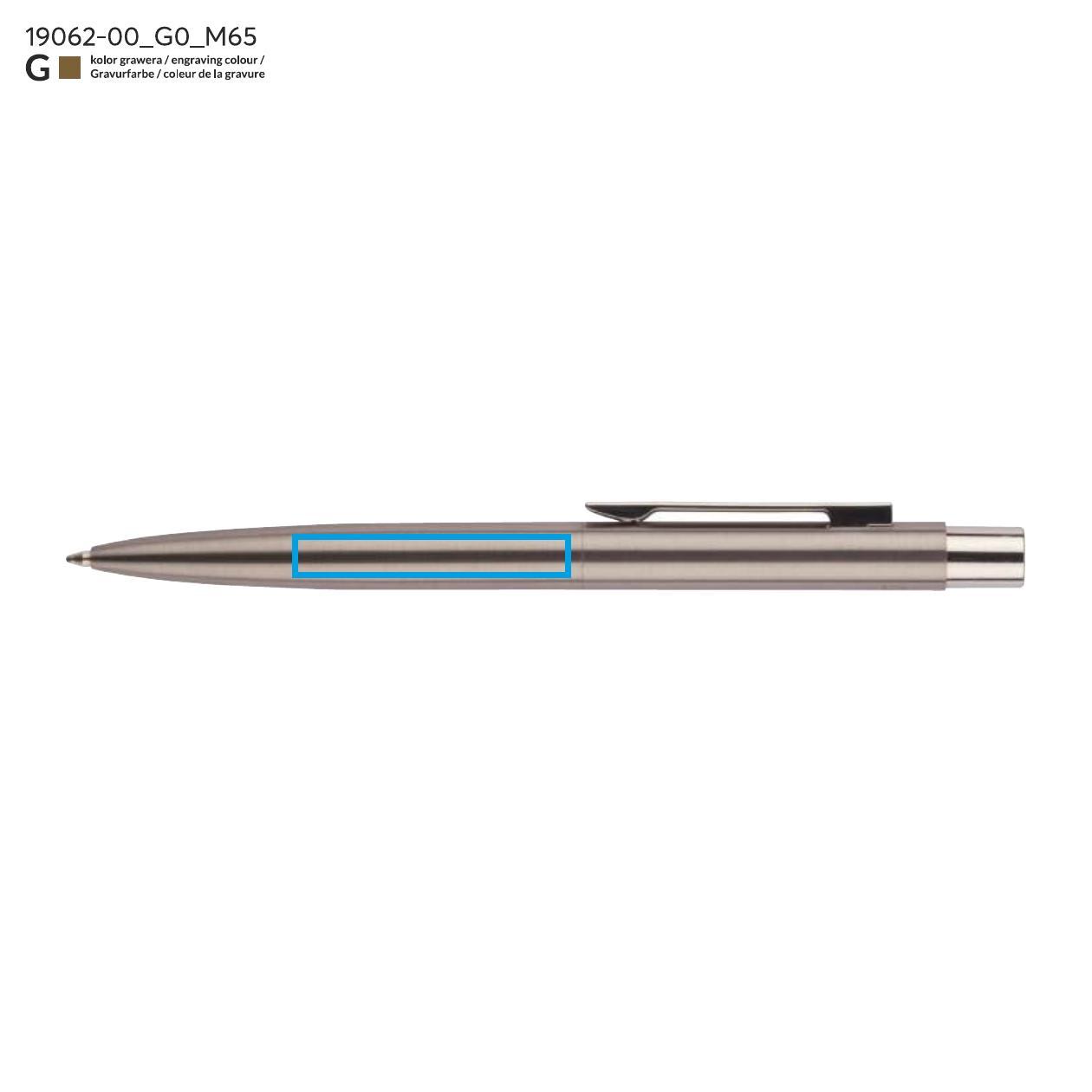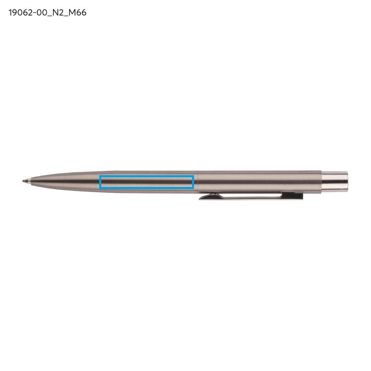 Długopis DELOX prezentuje się niezwykle elegancko. Wykonany z recyklingowanej stali nierdzewnej. Wkład w kolorze niebieskim.