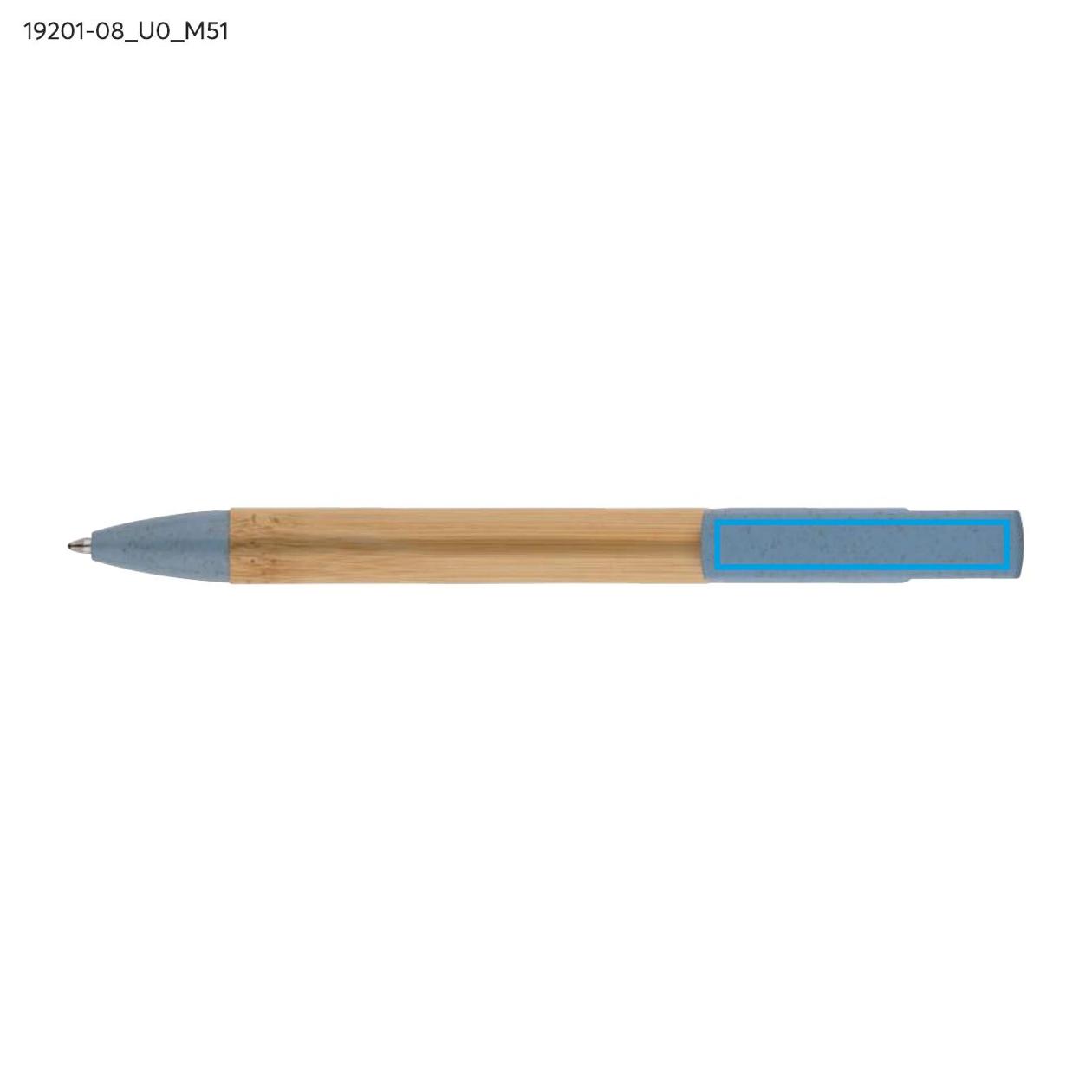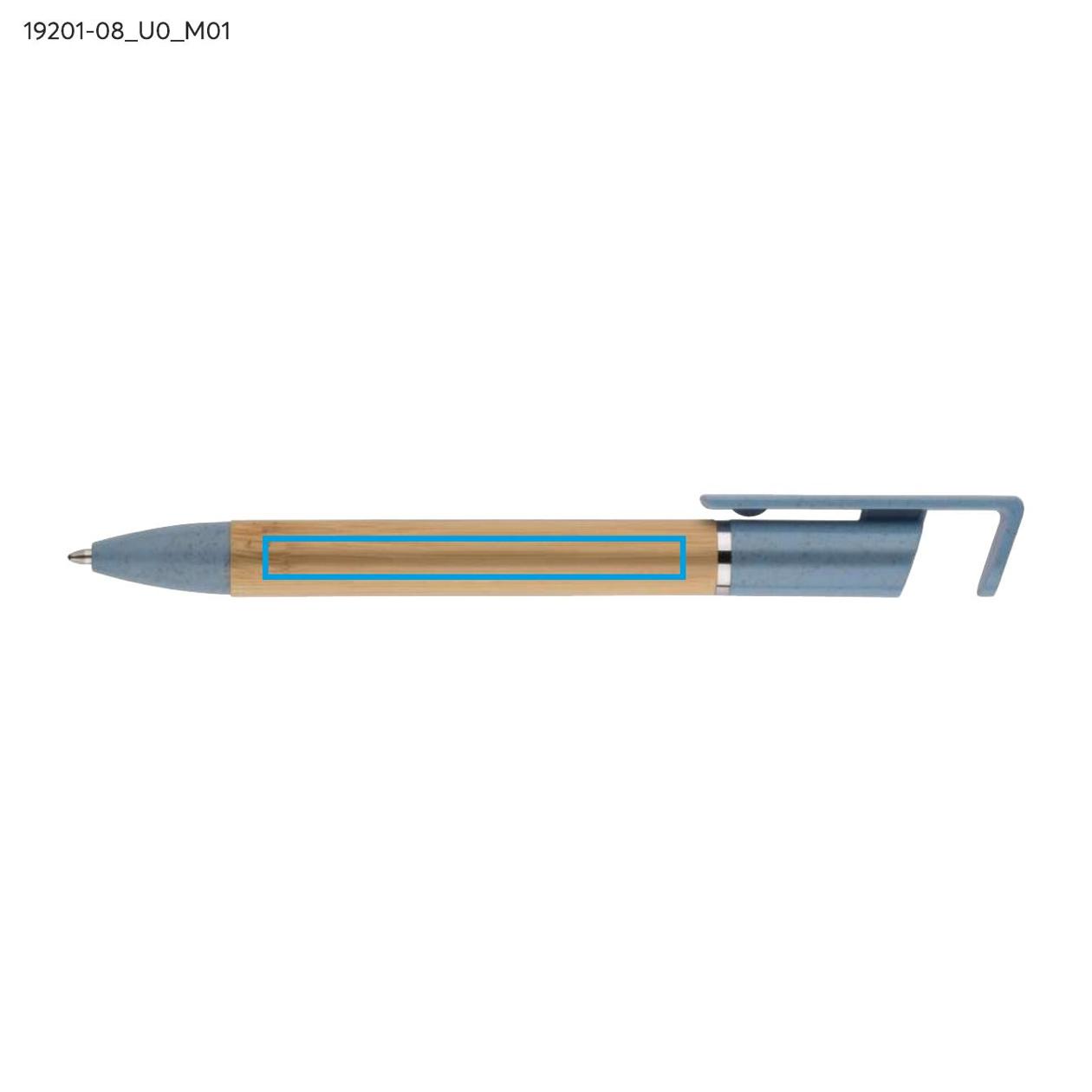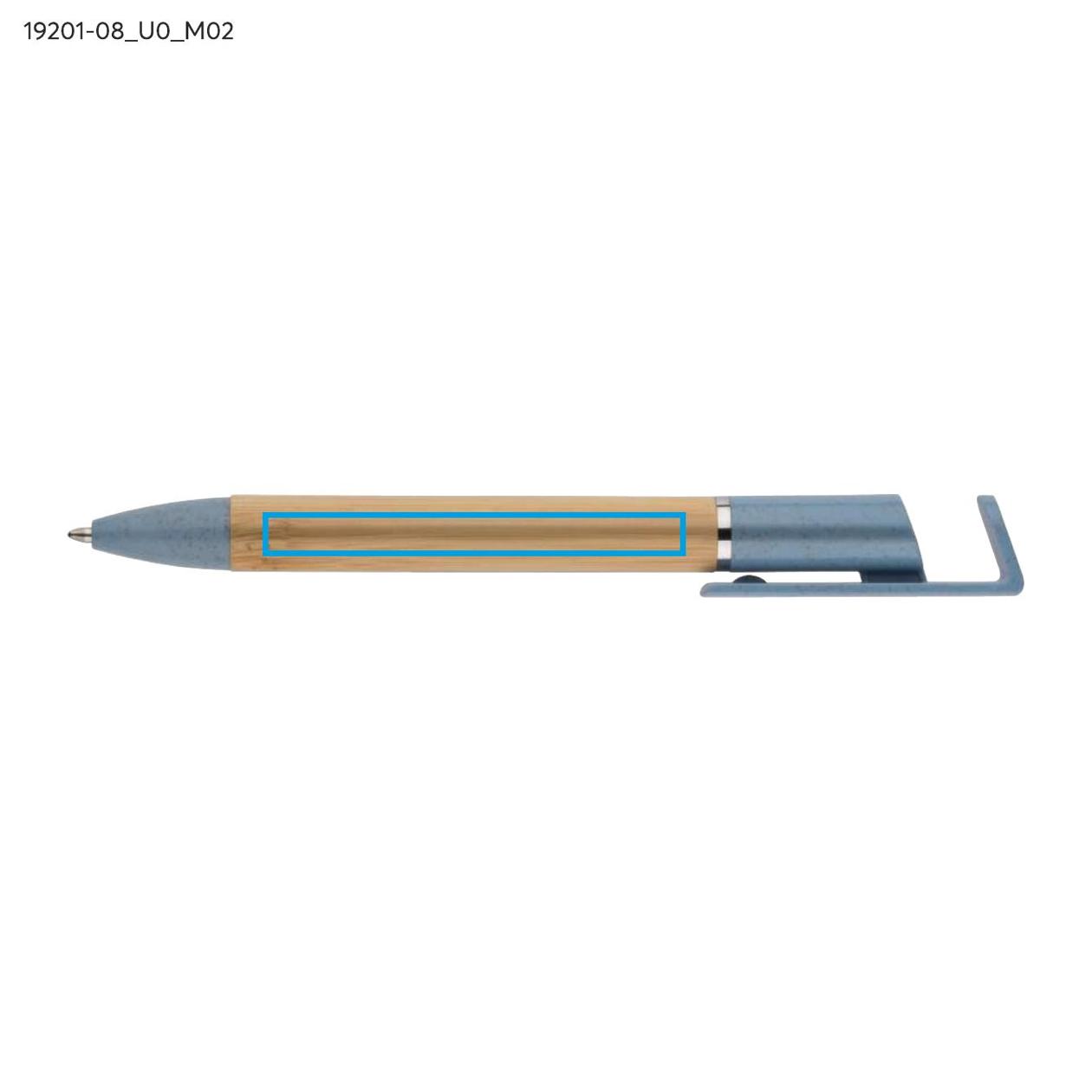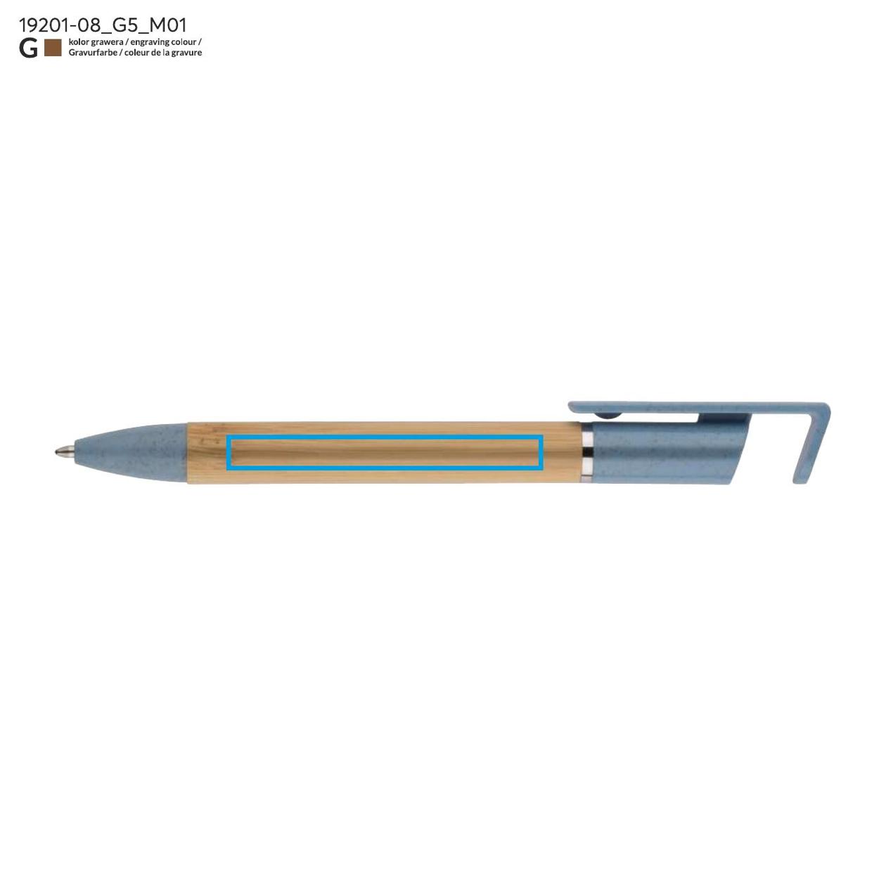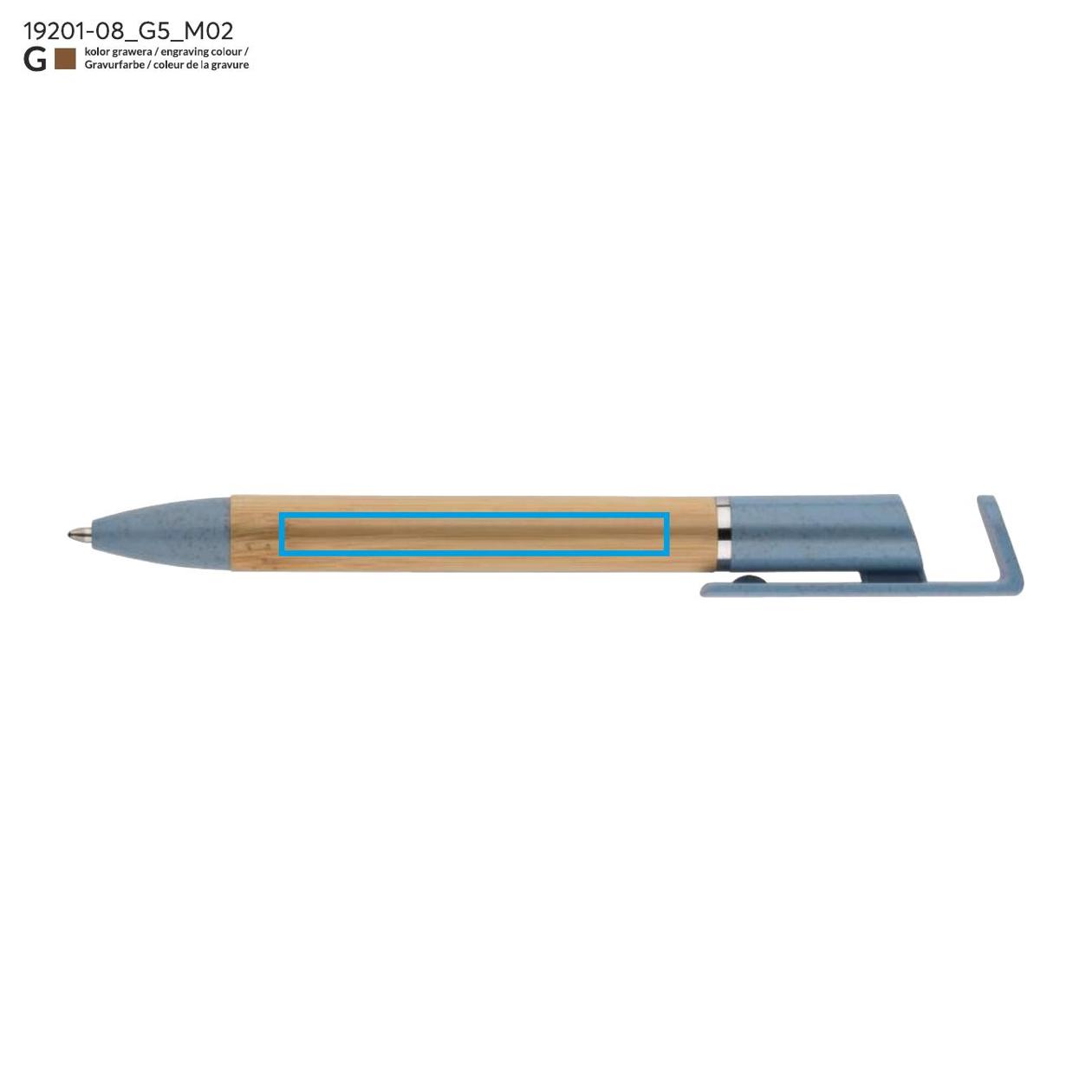 Długopis FONIK z bambusowym korpusem oraz klipem wykonanym ze słomy pszennej to praktyczny gadżet pełniący także funkcję stojaka na telefon.