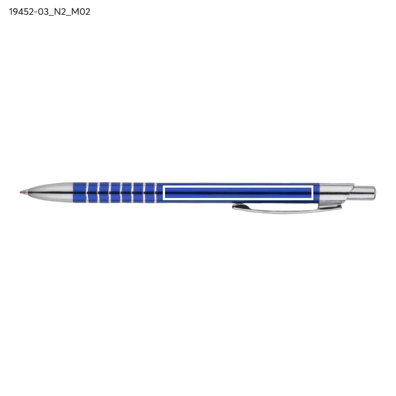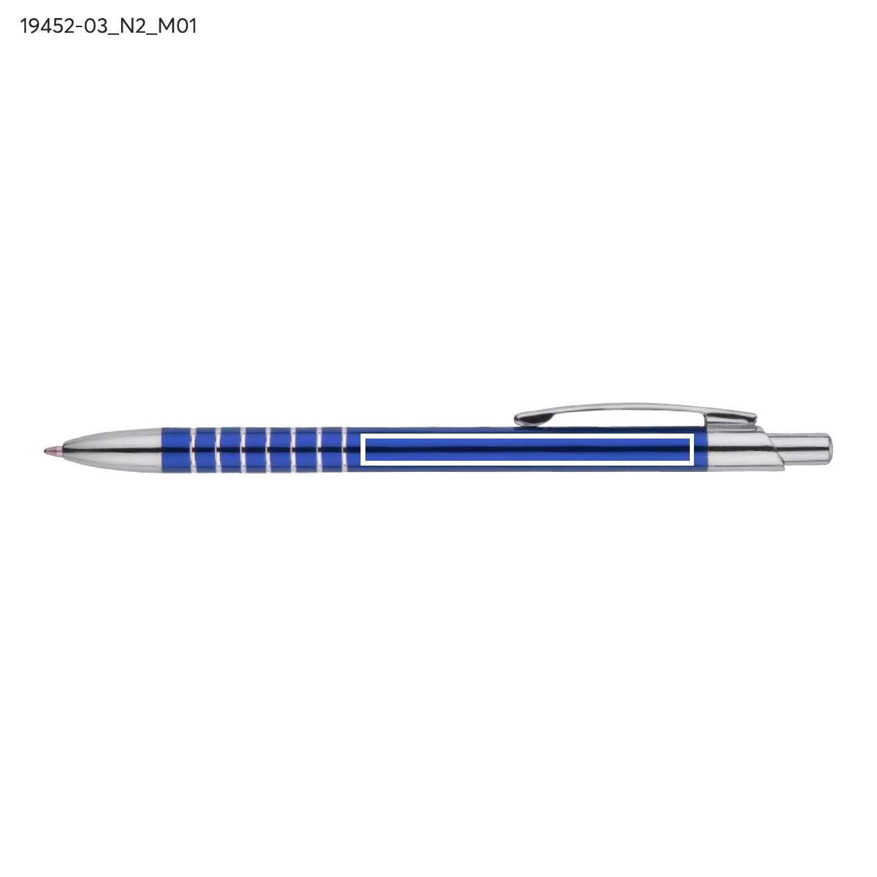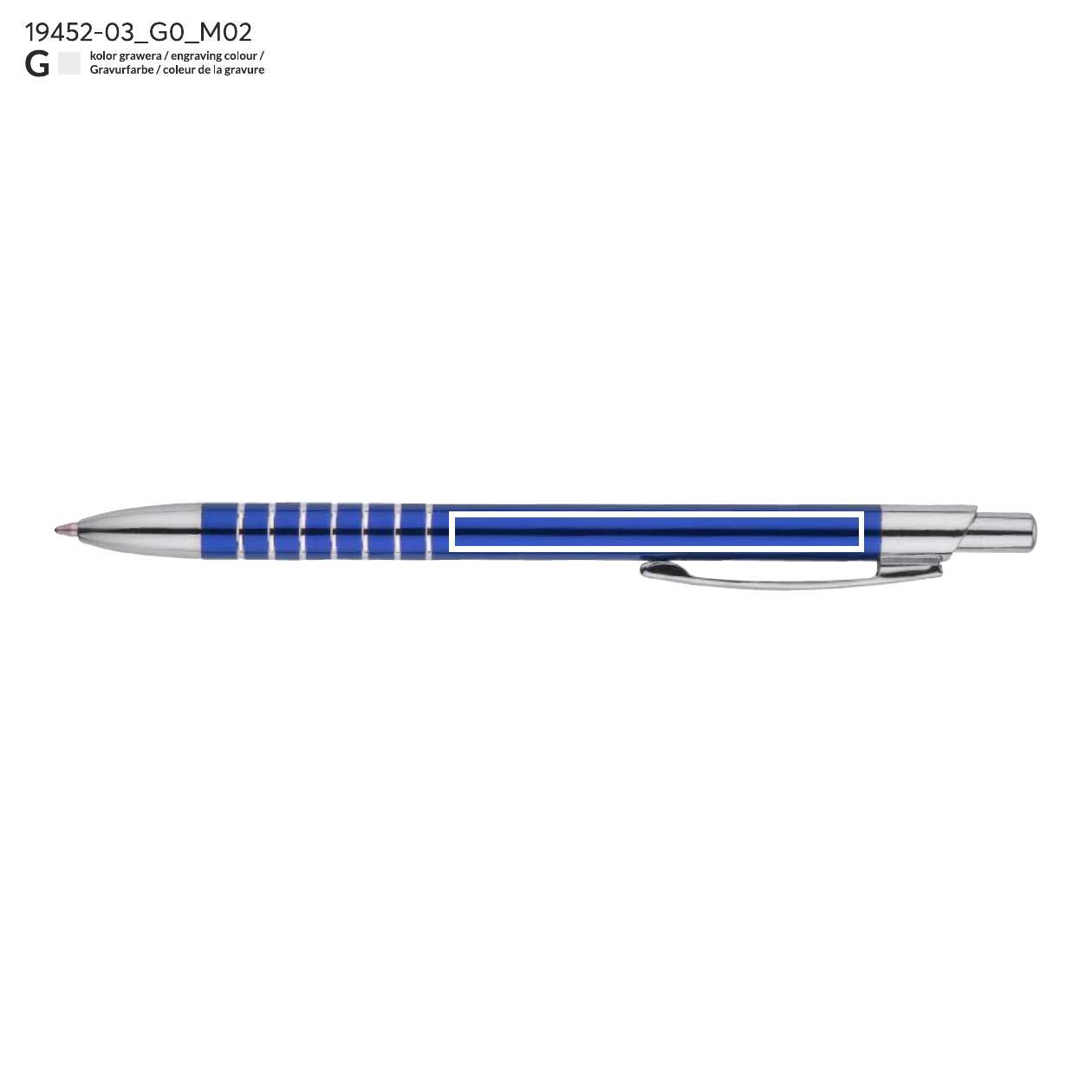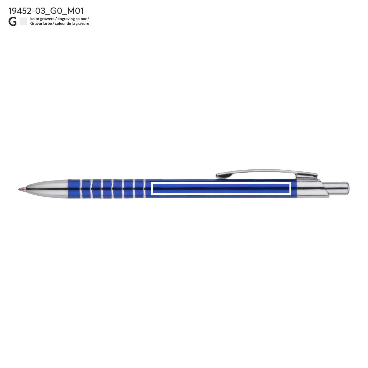 Prosty długopis wykonany z aluminium ozdobiony szerokimi ringami. Logo wygrawerujemy.