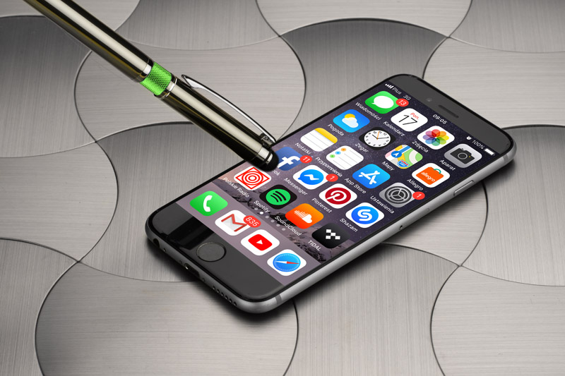 Elegancki metalowy długopis z kolorową aplikacją na korpusie oraz touchpenem.