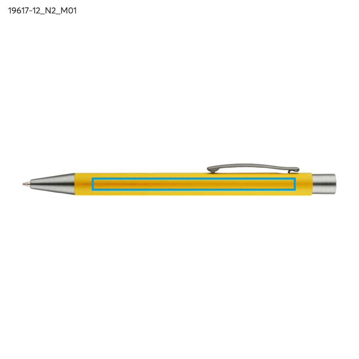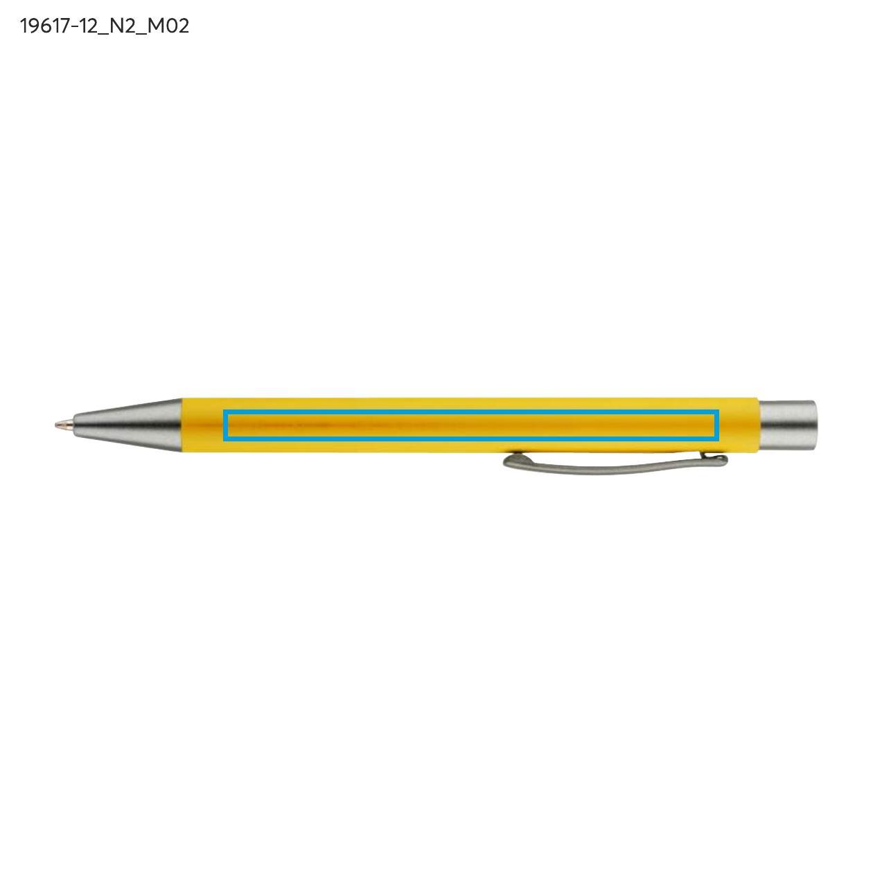 Długopis GOMA to prosty design połączony z przyjemna w dotyku gumowana powierzchnią. Całość jest utrzymana w lekkich, matowych barwach. Wykonany z aluminium. Wykończenia w kolorze grafitowym. Wkład w kolorze niebieskim.