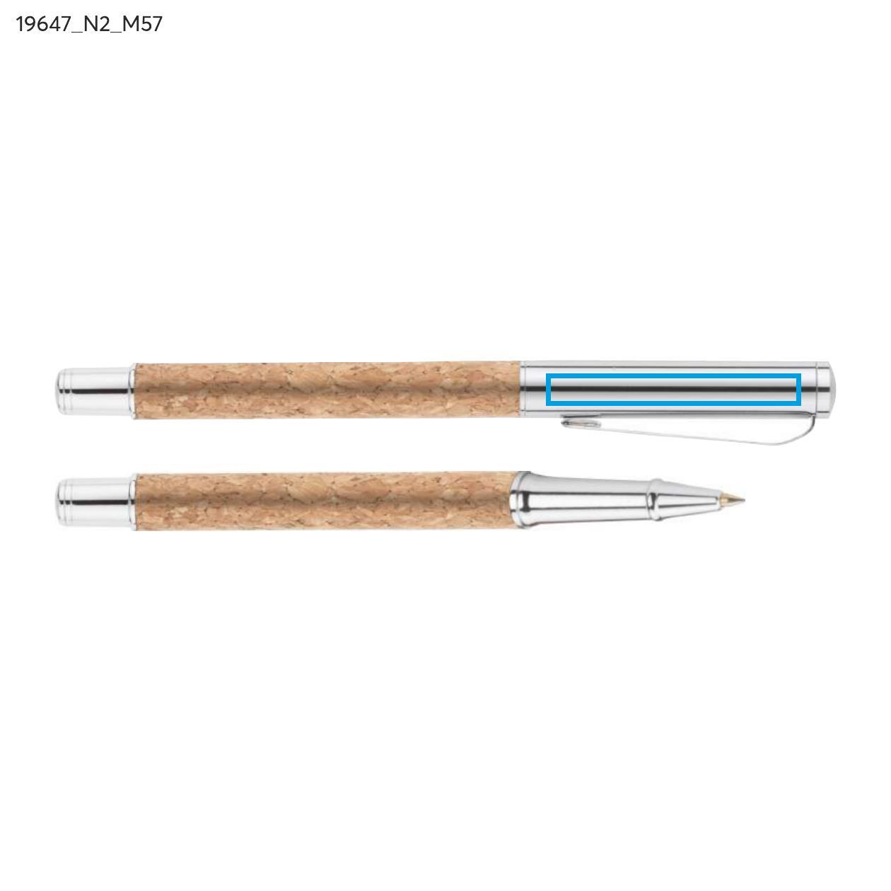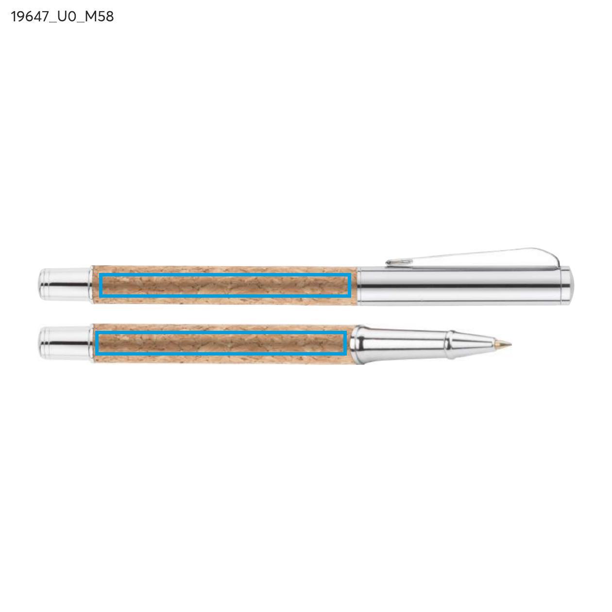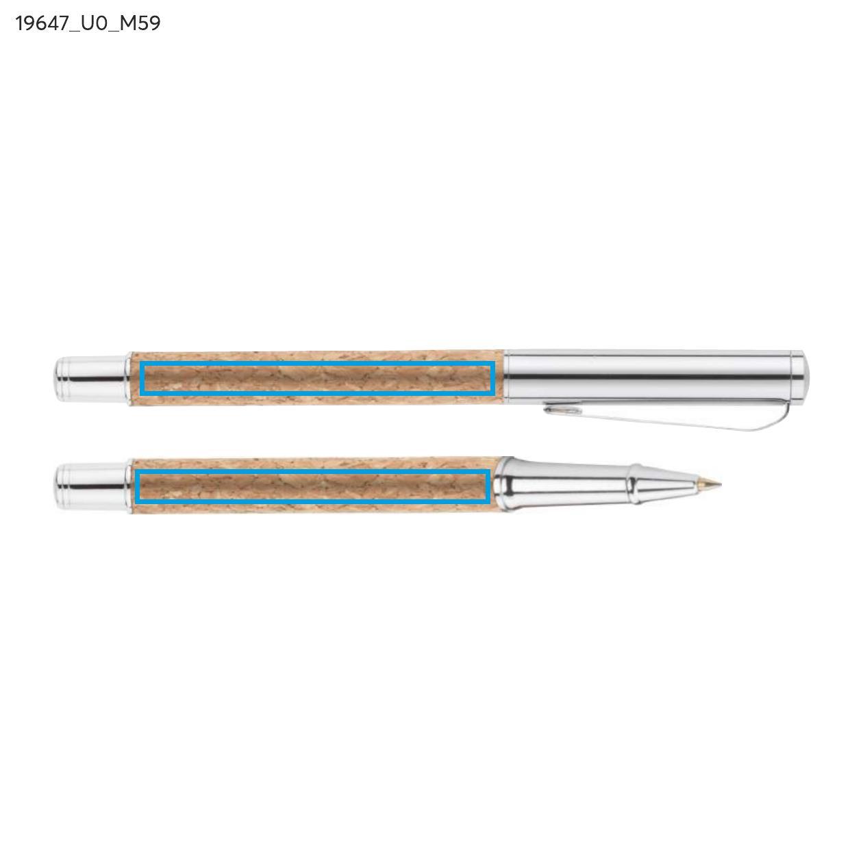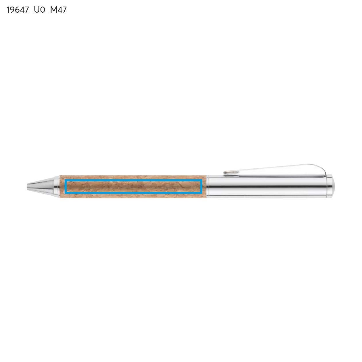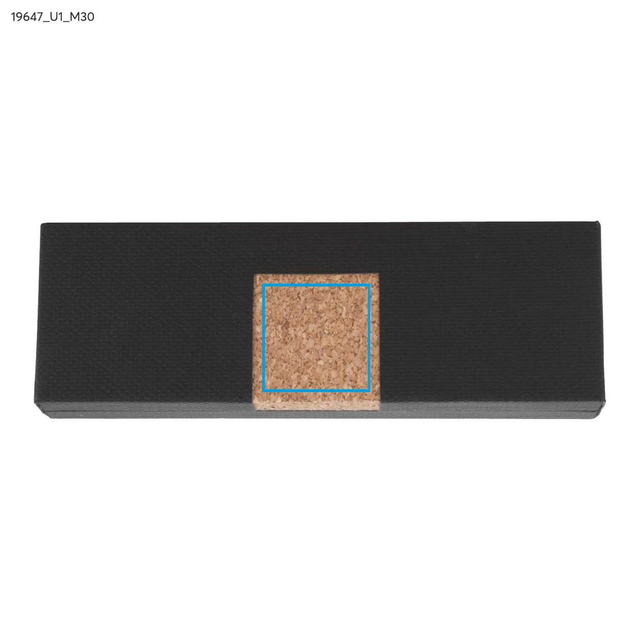 KANSAS to elegancki zestaw piśmienniczy dla miłośników naturalnych materiałów przyjaznych środowisku. W zestawie znajduje się długopis oraz pióro kulkowe wykonane z metalu oraz korka. Gustowne etui w kolorze czarnym ozdobione elementem korkowym. Długopis z mechanizmem typu twist, z czarnym wkładem, pióro kulkowe z zatyczką, z wkładem w kolorze czarnym.