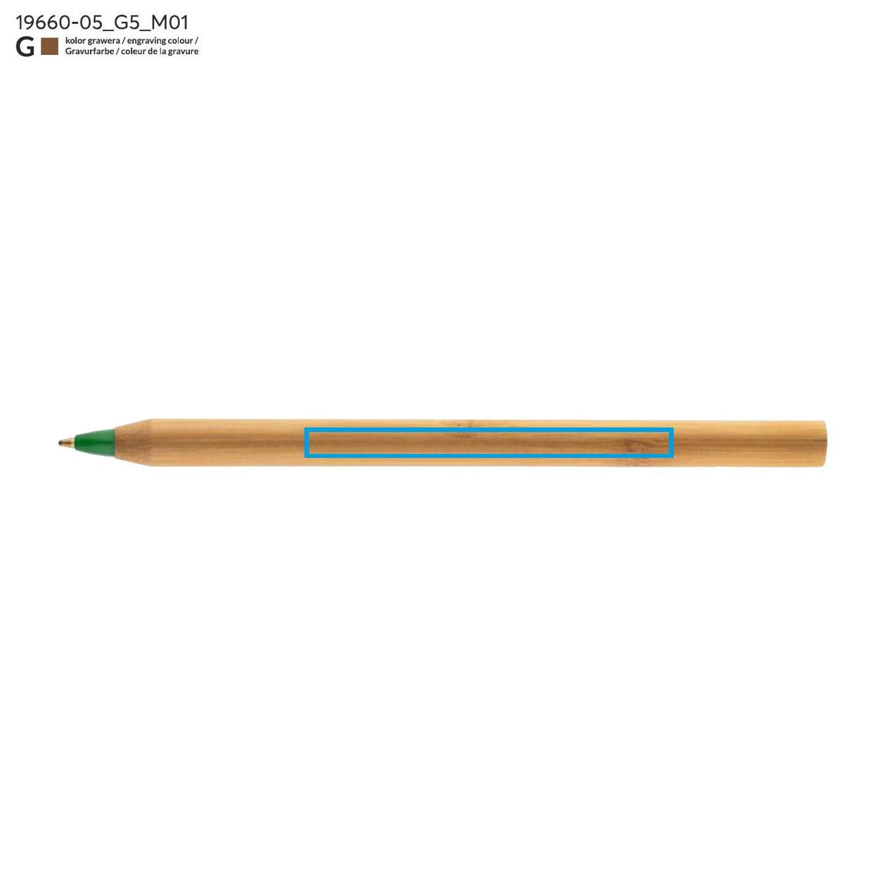 LASS to prosty długopis, którego korpus został wykonany w 100% z naturalnego bambusa. Długopis bez zatyczki. Wkład zabezpieczony przed wysychaniem za pomocą wosku. Wkład typu X20 w kolorze niebieskim.