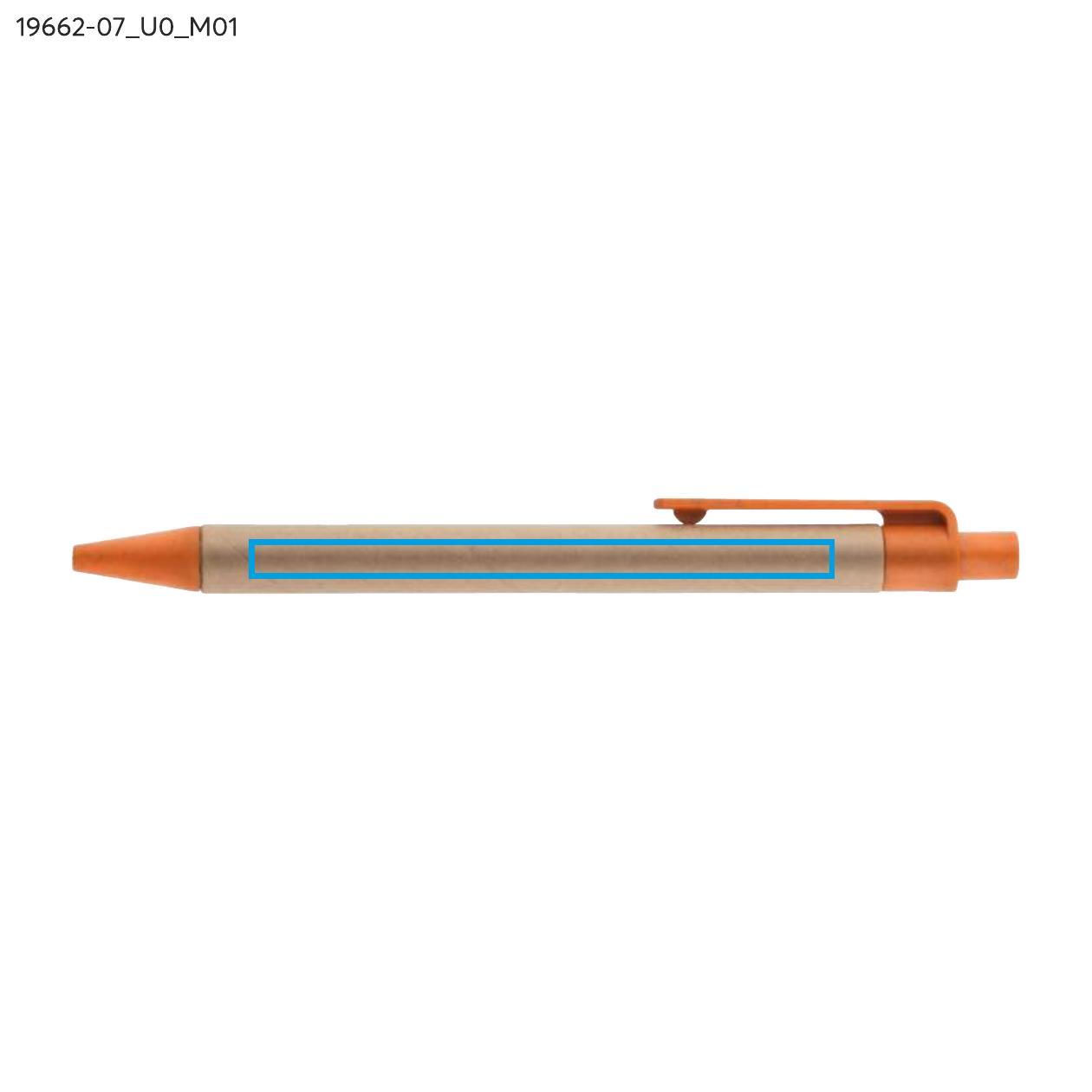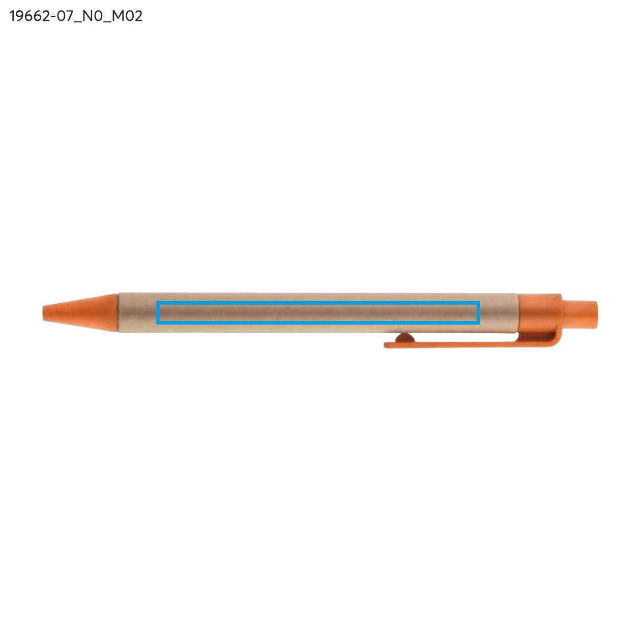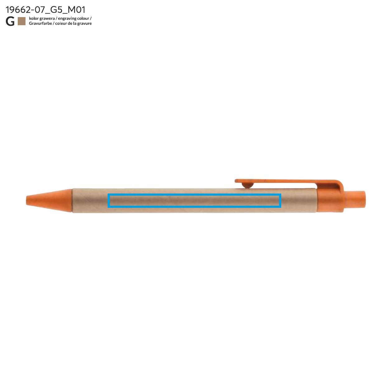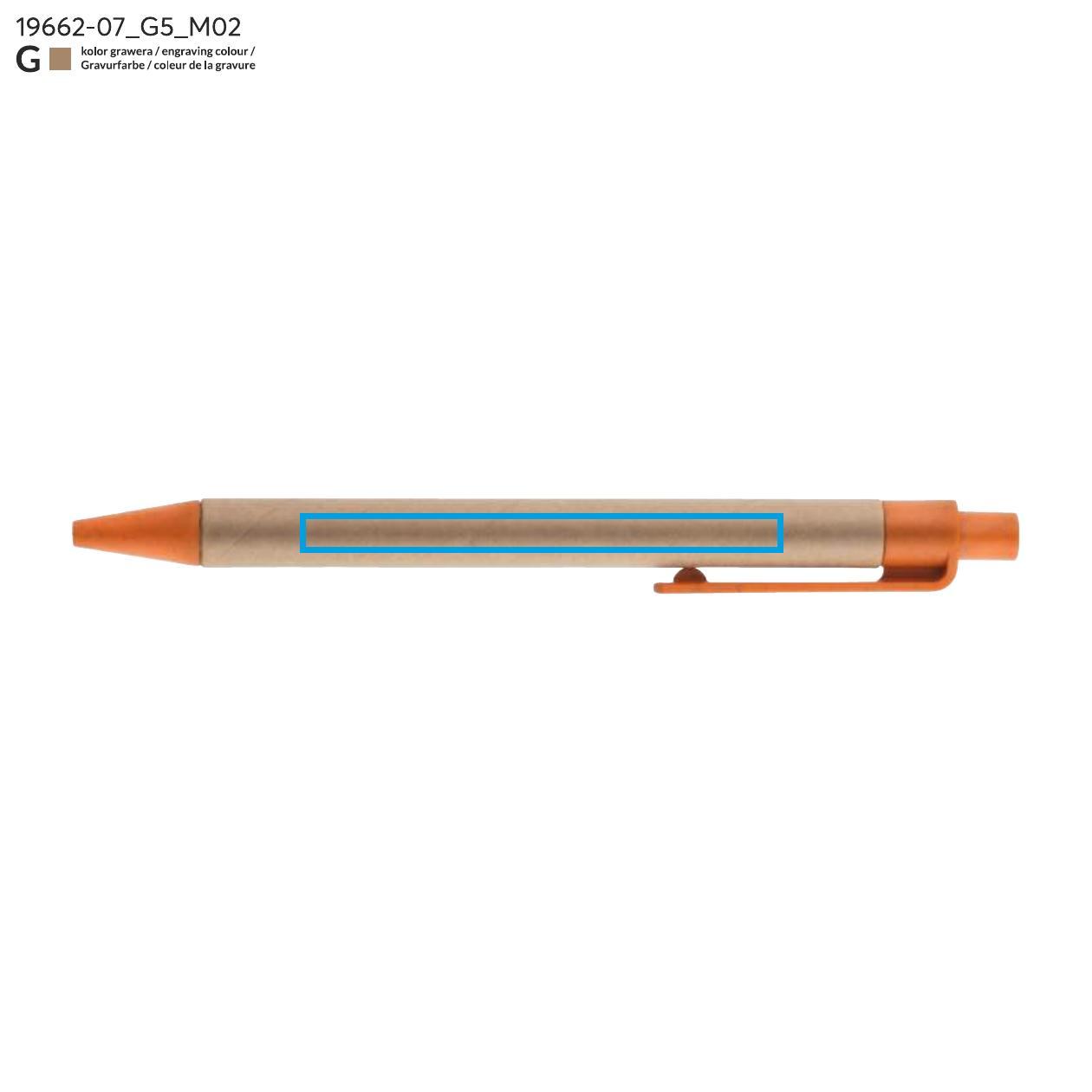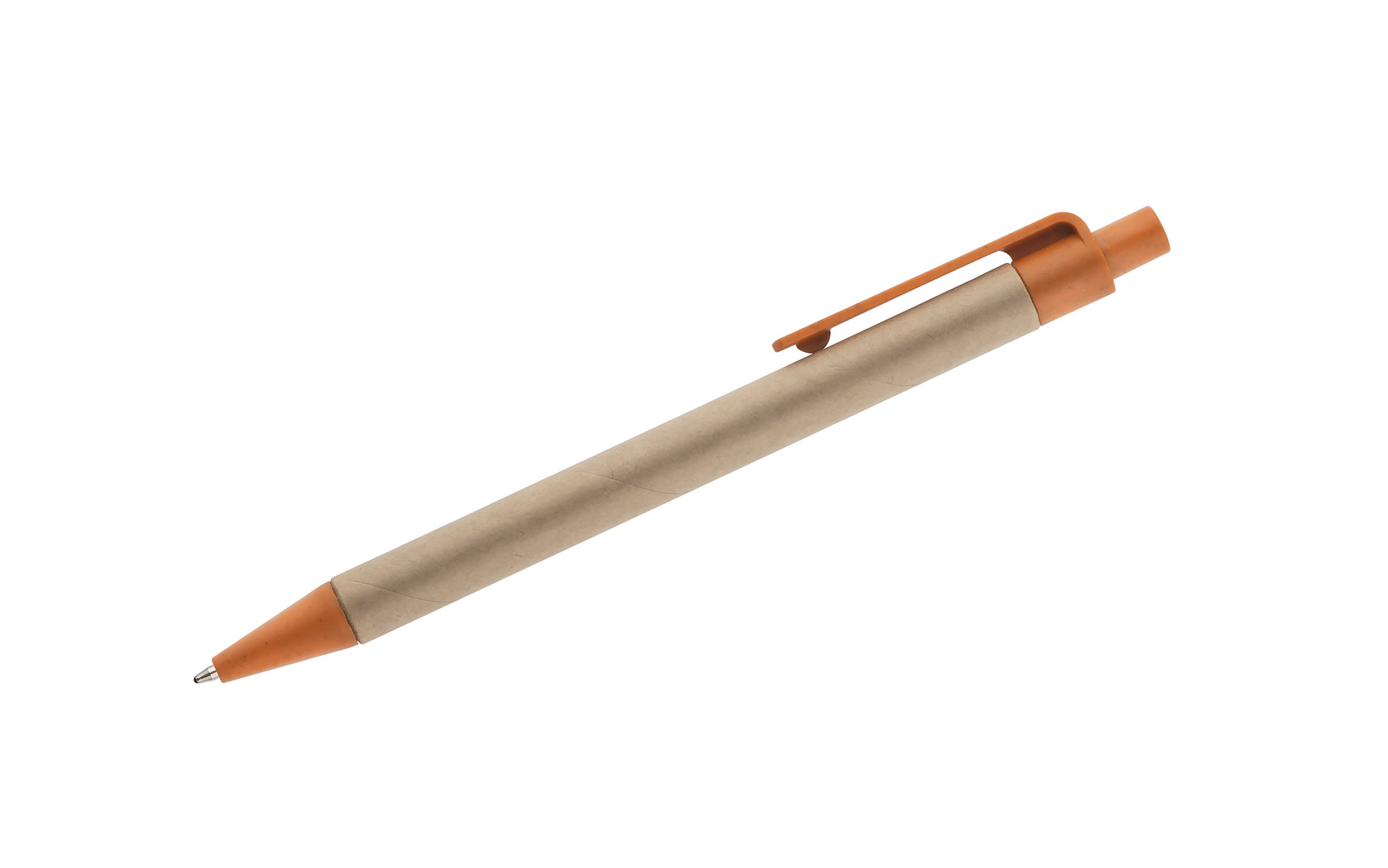 Długopis TIKO wykonany został z myślą o ponownym wykorzystaniu surowców. Jego korpus wykonany jest z papieru po recyklingu, a końcówki z tworzywa z domieszką słomy, która ogranicza ilość tworzywa sztucznego potrzebnego do produkcji. Prosty, ponadczasowy wzór. Długopis automatyczny. Wkład typu X20 w kolorze niebieskim.
