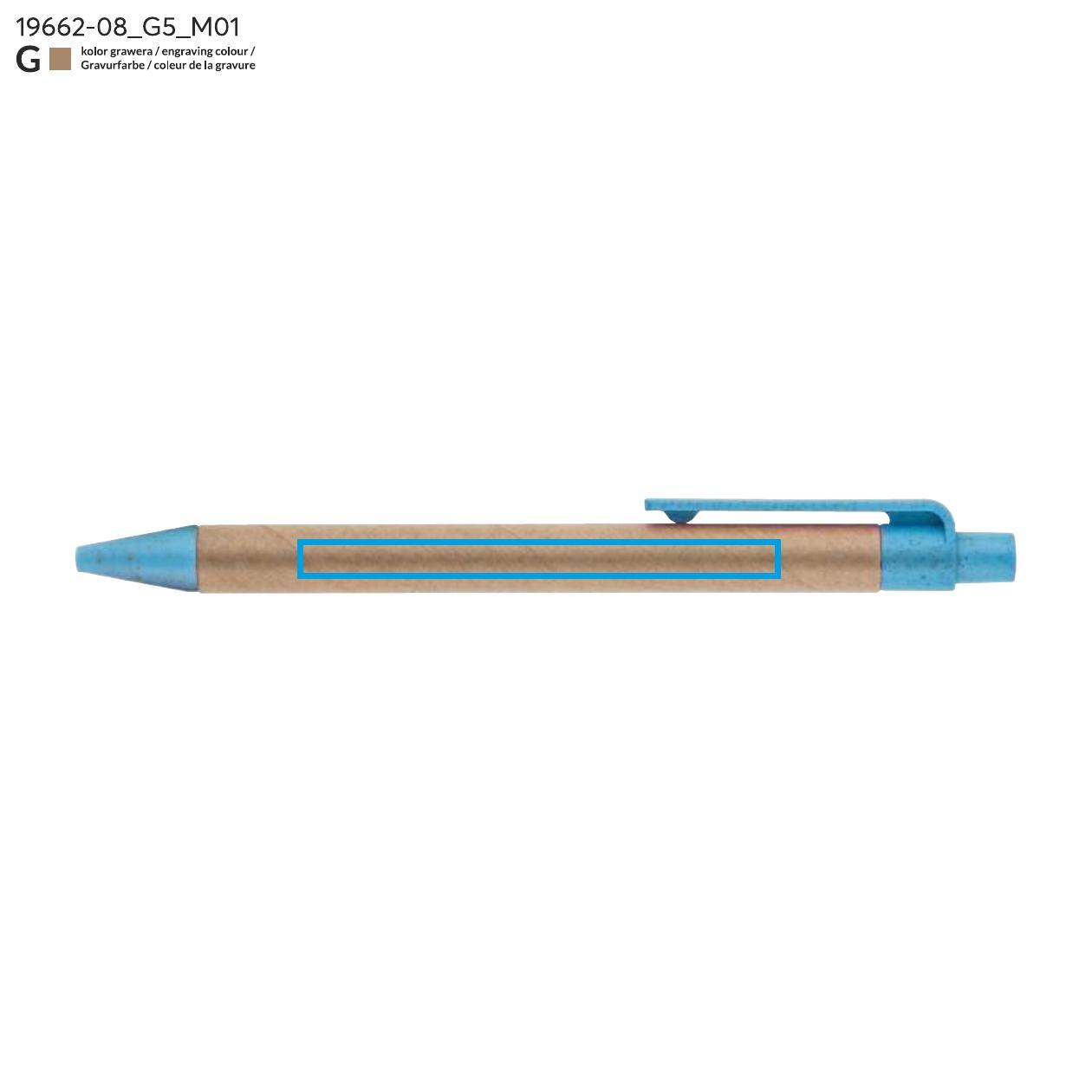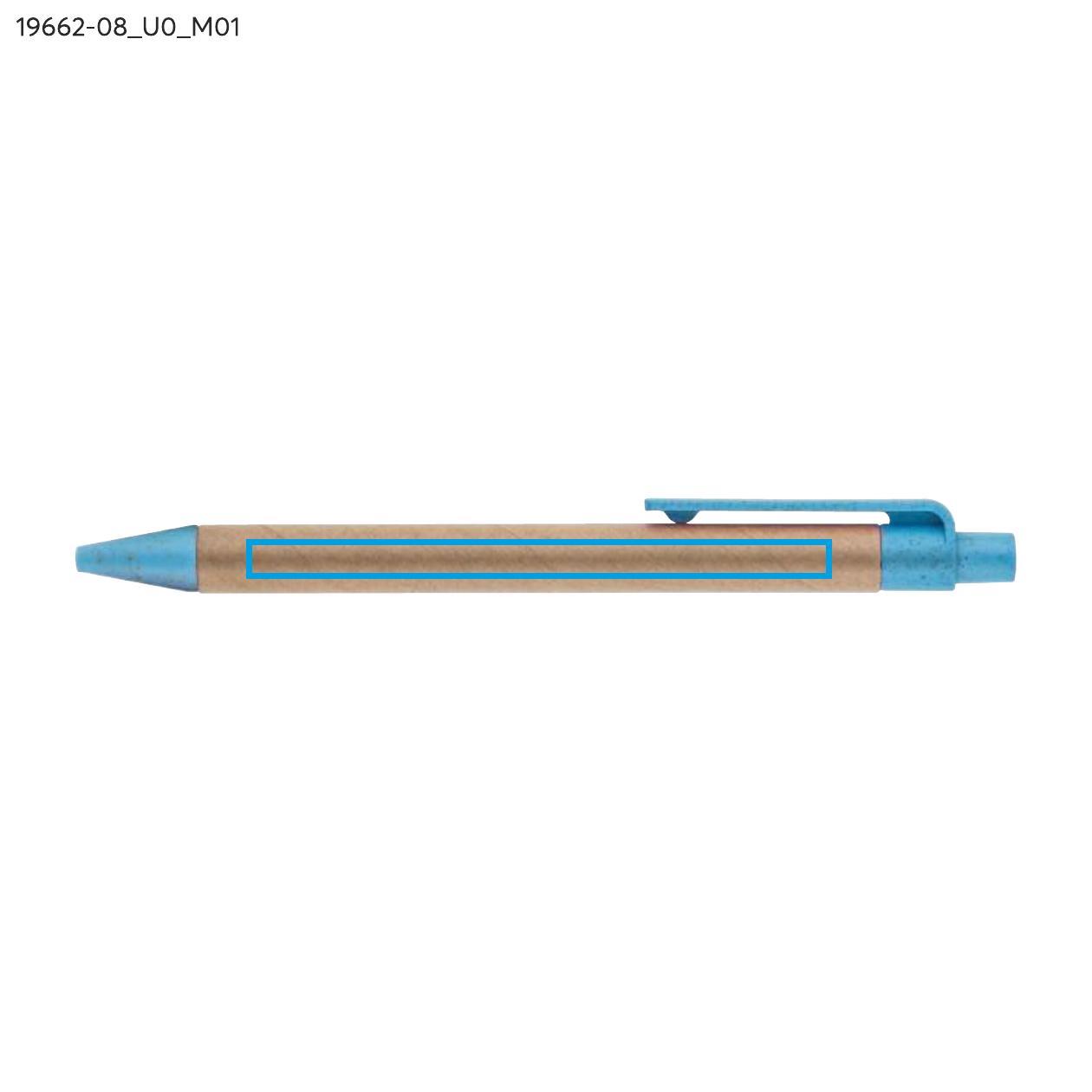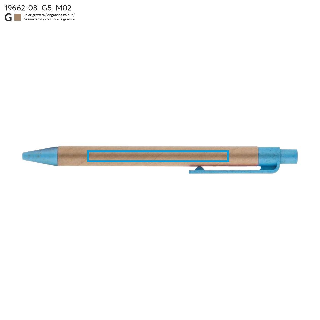 Długopis TIKO wykonany został z myślą o ponownym wykorzystaniu surowców. Jego korpus wykonany jest z papieru po recyklingu, a końcówki z tworzywa z domieszką słomy, która ogranicza ilość tworzywa sztucznego potrzebnego do produkcji. Prosty, ponadczasowy wzór. Długopis automatyczny. Wkład typu X20 w kolorze niebieskim.