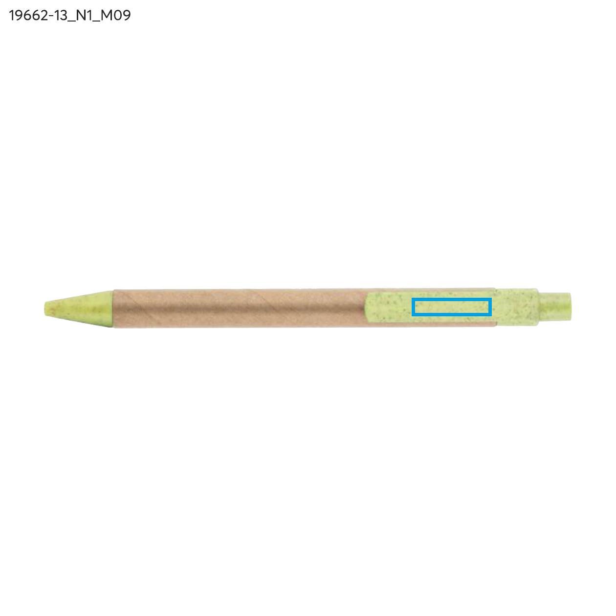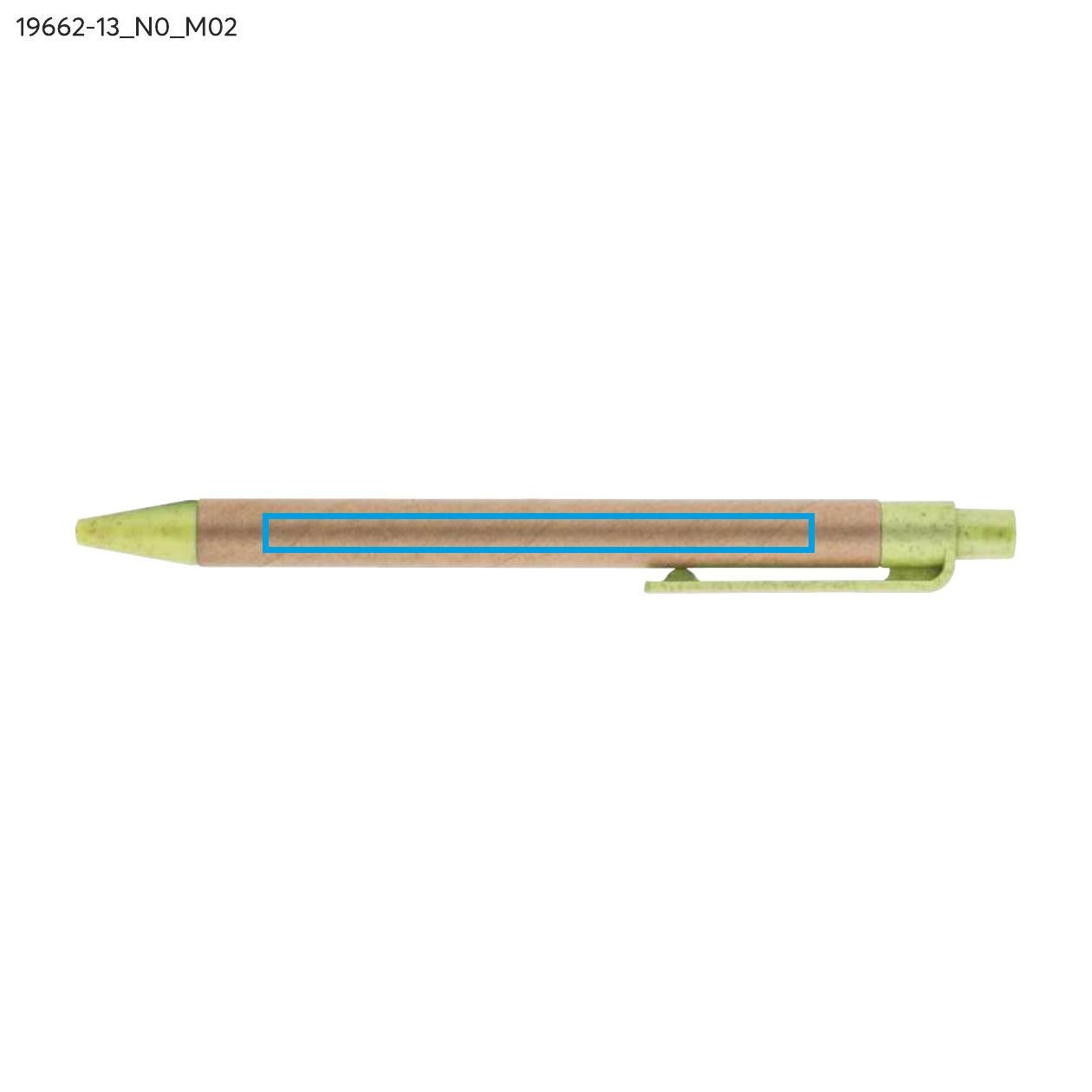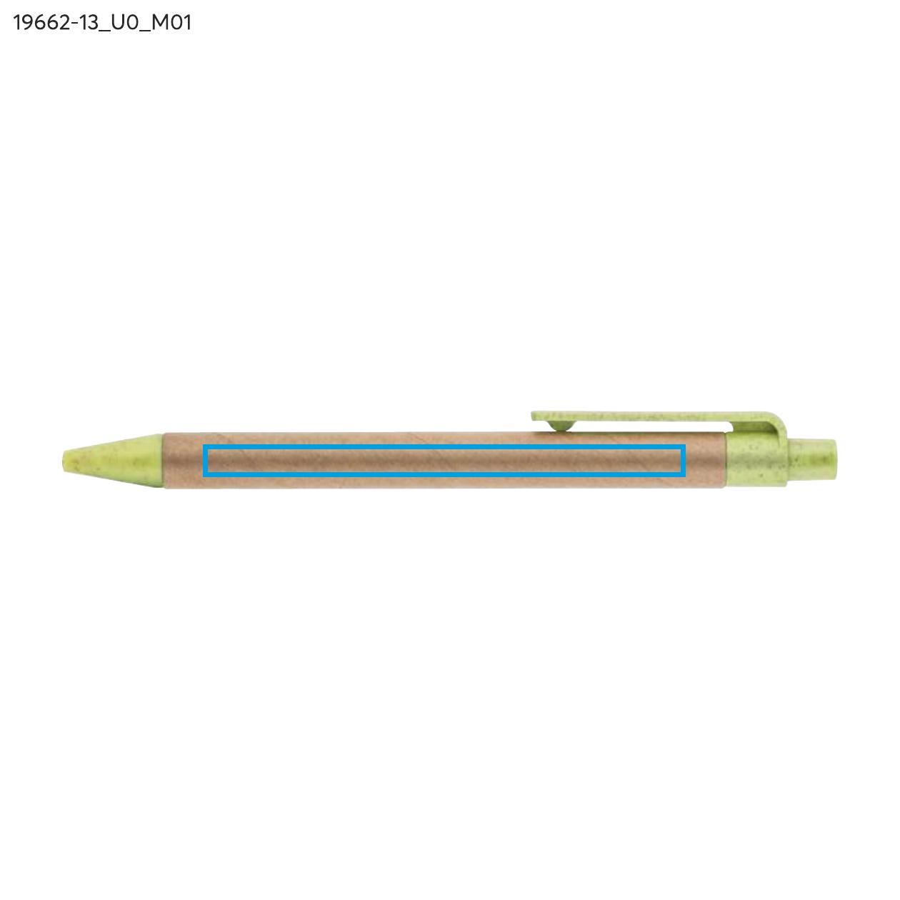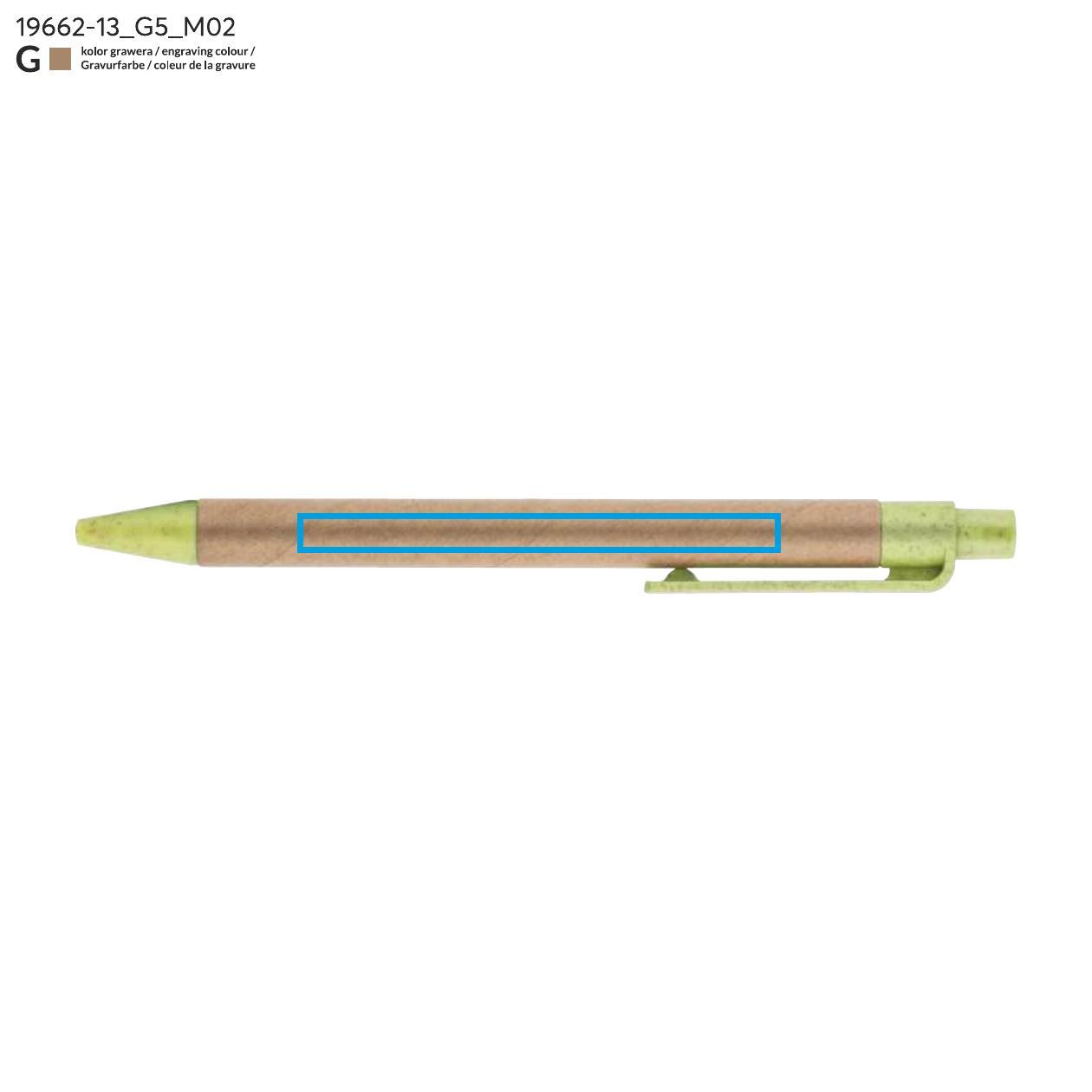 Długopis TIKO wykonany został z myślą o ponownym wykorzystaniu surowców. Jego korpus wykonany jest z papieru po recyklingu, a końcówki z tworzywa z domieszką słomy, która ogranicza ilość tworzywa sztucznego potrzebnego do produkcji. Prosty, ponadczasowy wzór. Długopis automatyczny. Wkład typu X20 w kolorze niebieskim.