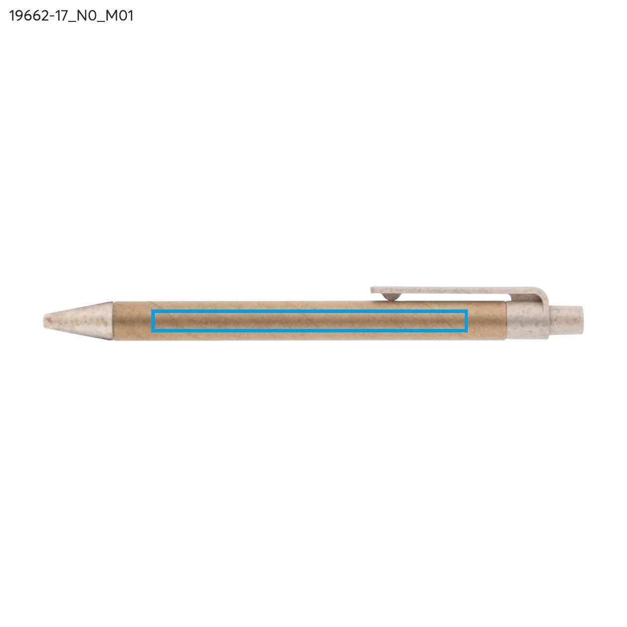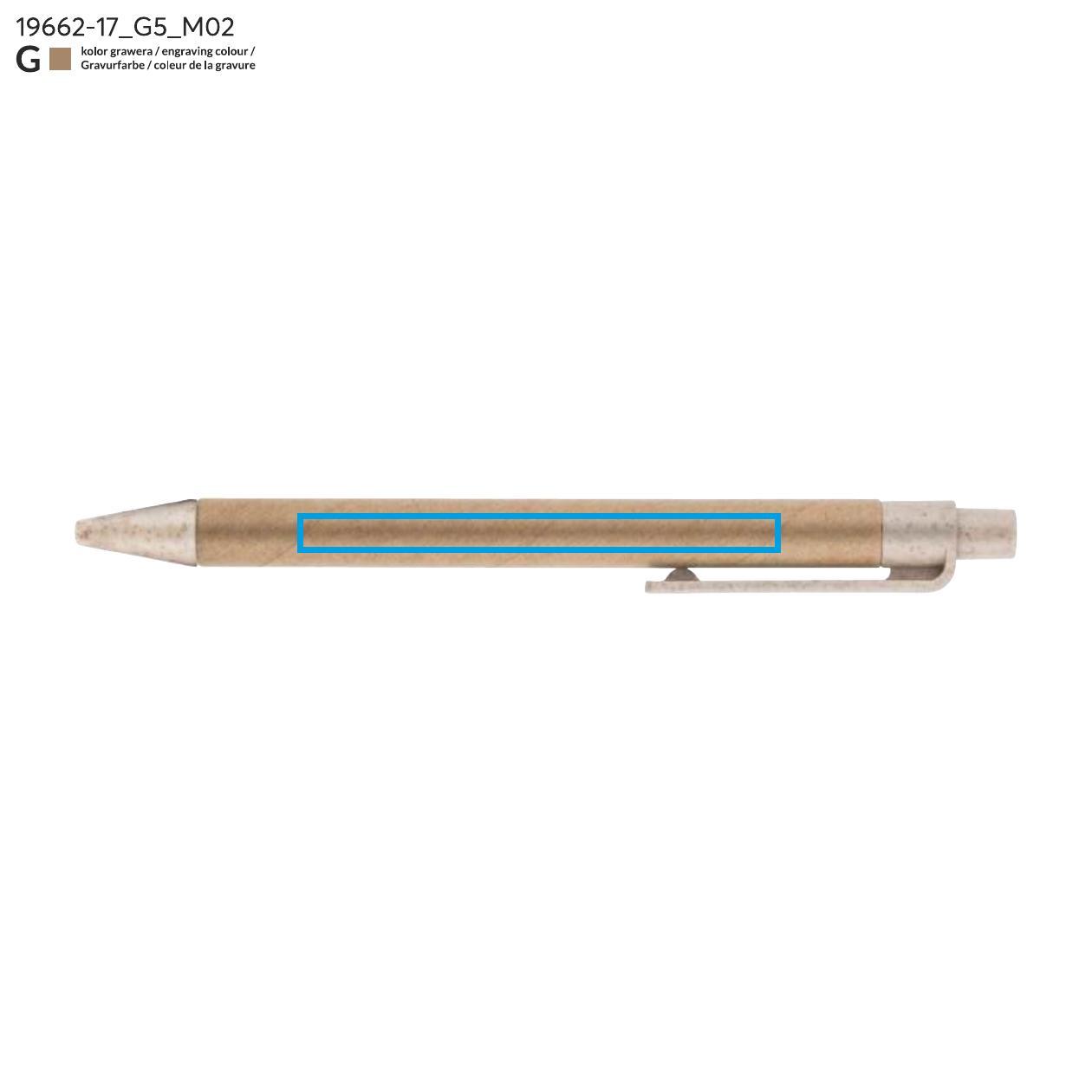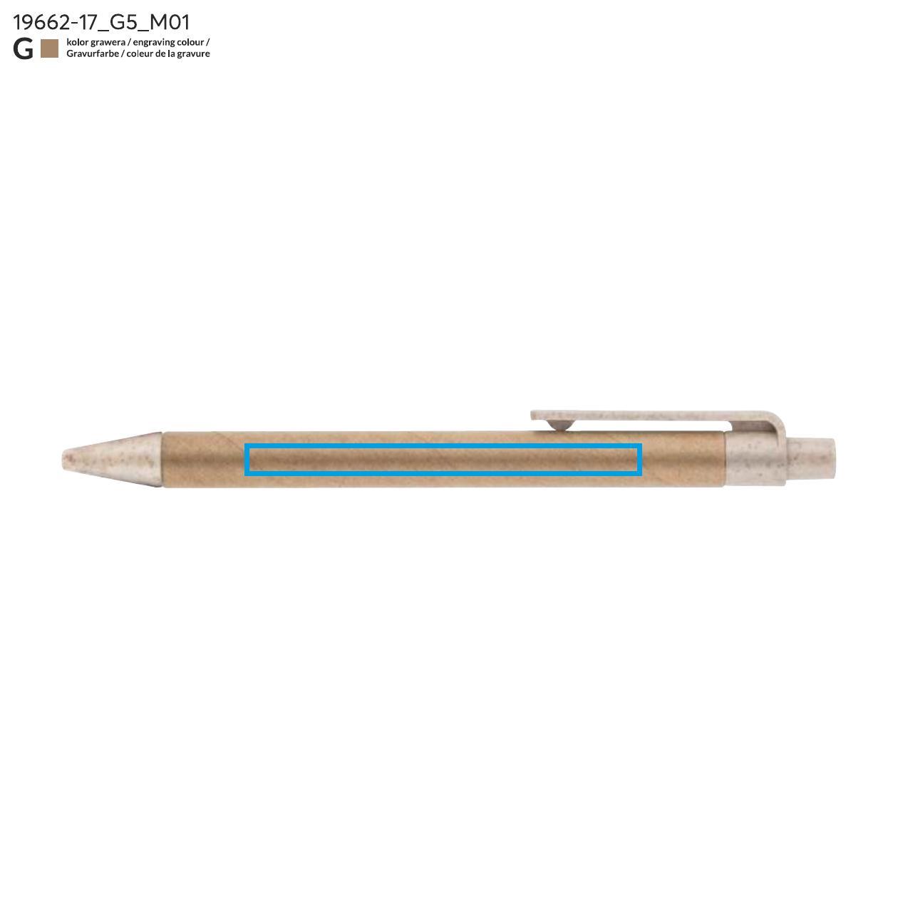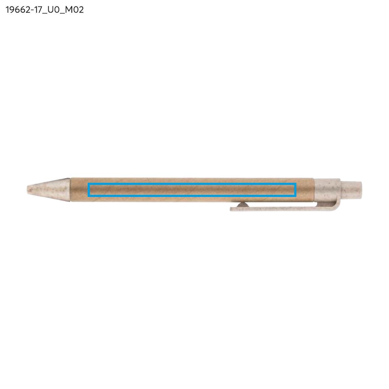 Długopis TIKO wykonany został z myślą o ponownym wykorzystaniu surowców. Jego korpus wykonany jest z papieru po recyklingu, a końcówki z tworzywa z domieszką słomy, która ogranicza ilość tworzywa sztucznego potrzebnego do produkcji. Prosty, ponadczasowy wzór. Długopis automatyczny. Wkład typu X20 w kolorze niebieskim.
