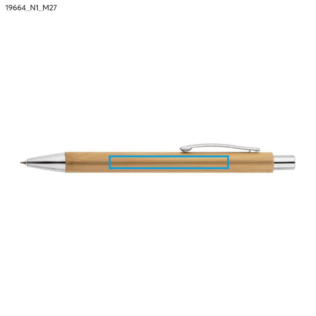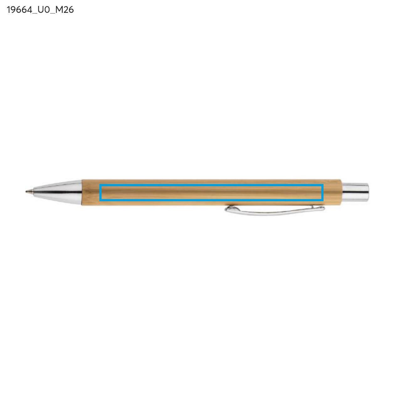 Zestaw piśmienniczy MAMBOO składa się z długopisu oraz ołówka automatycznego zapakowanych w brązowy, ekologiczny kartonik z tektury. Korpus długopisu i ołówka wykonany został z naturalnego bambusa. Chromowane wykończenia nadają mu elegancji. Wkład długopisu w kolorze niebieskim, ołówek automatyczny o grubości 0,7 mm.