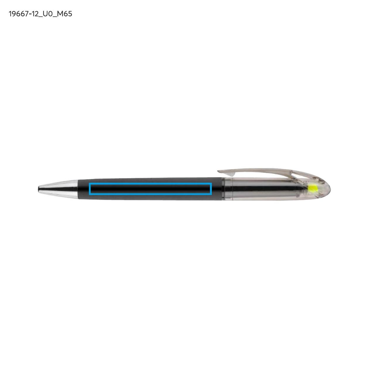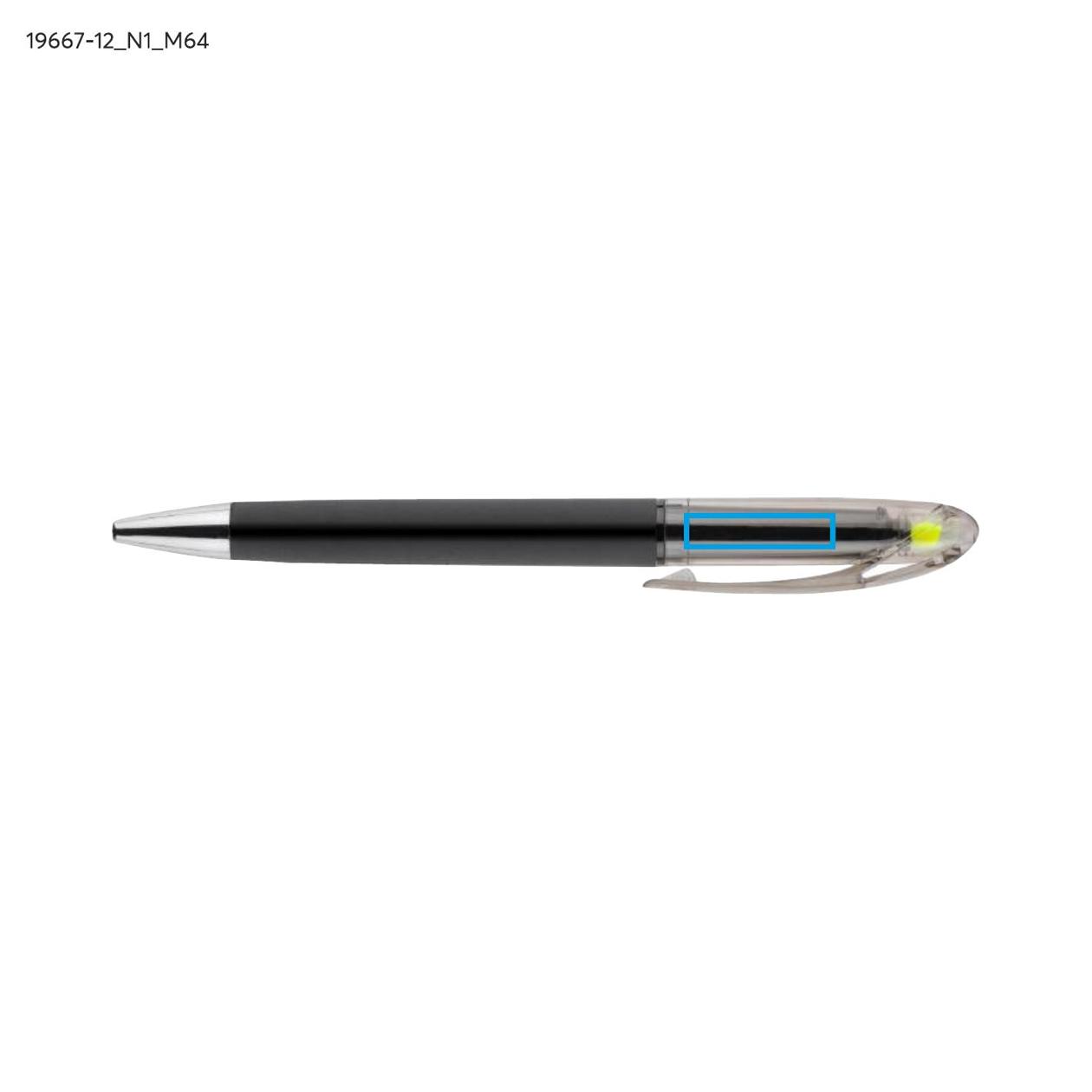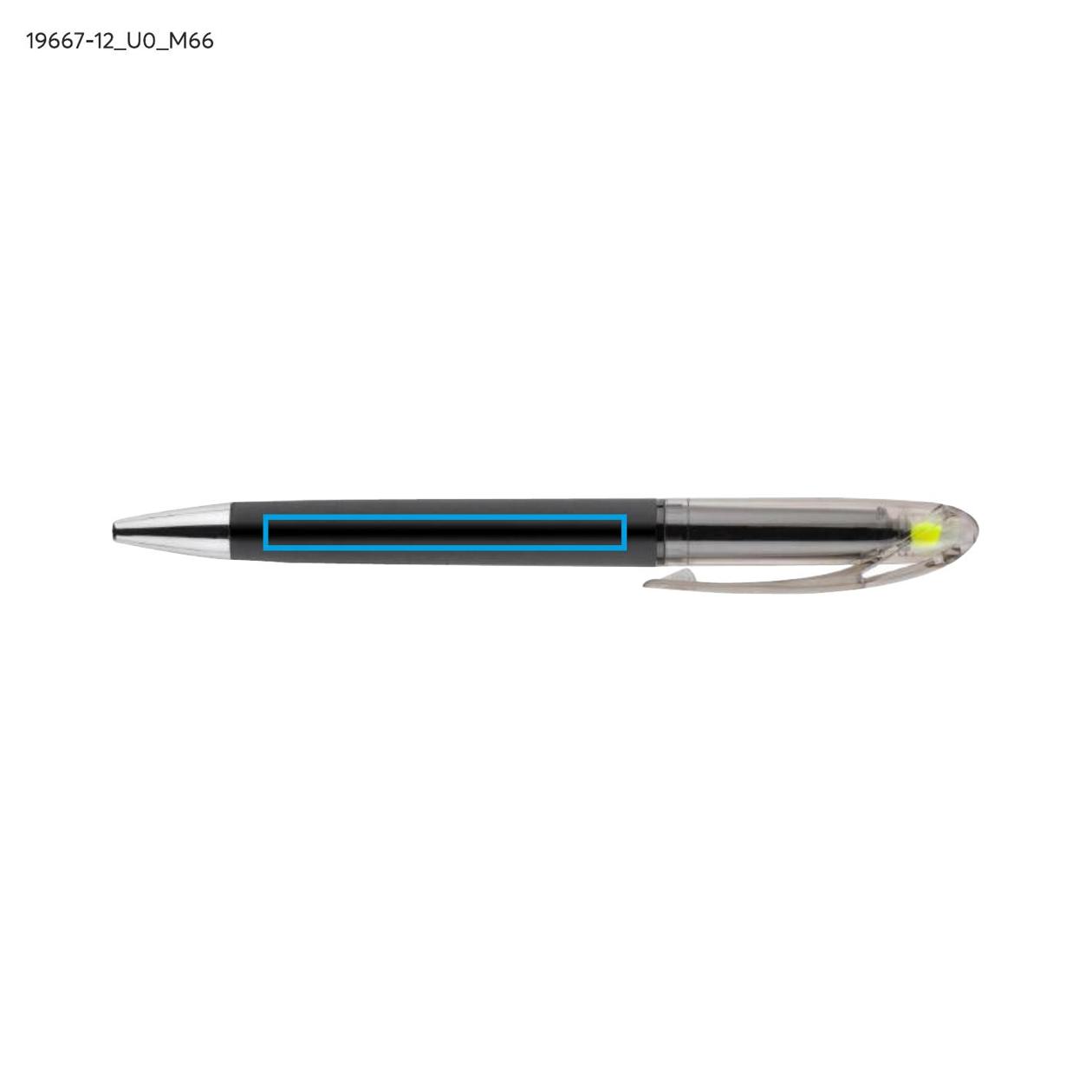 HILIG to dwa przydatne gadżety w jednym. Na górze tradycyjnego długopisu został umieszczony zakreślacz w żywym kolorze. Pokryty gumową powłoką korpus długopisu jest niezwykle przyjemny w dotyku. Długopis z mechanizmem typu twist, wkład długopisu w kolorze niebieskim.