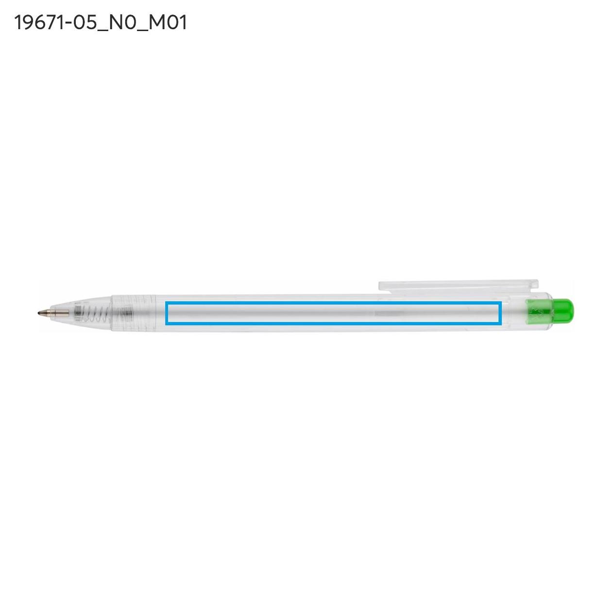 Długopis KLIIR powstał w całości z tworzywa PET po recyklingu (rPET). Ten prosty gadżet pokazuje nam, jak świadomie możemy gospodarować odpadami z tworzywa sztucznego i tworzyć z nich nowe przydatne przedmioty. Przezroczysty bezbarwny korpus długopisu ładnie połączony jest z przyciskiem w żywych kolorach. Długopis automatyczny, wkład typy G2 w kolorze niebieskim.