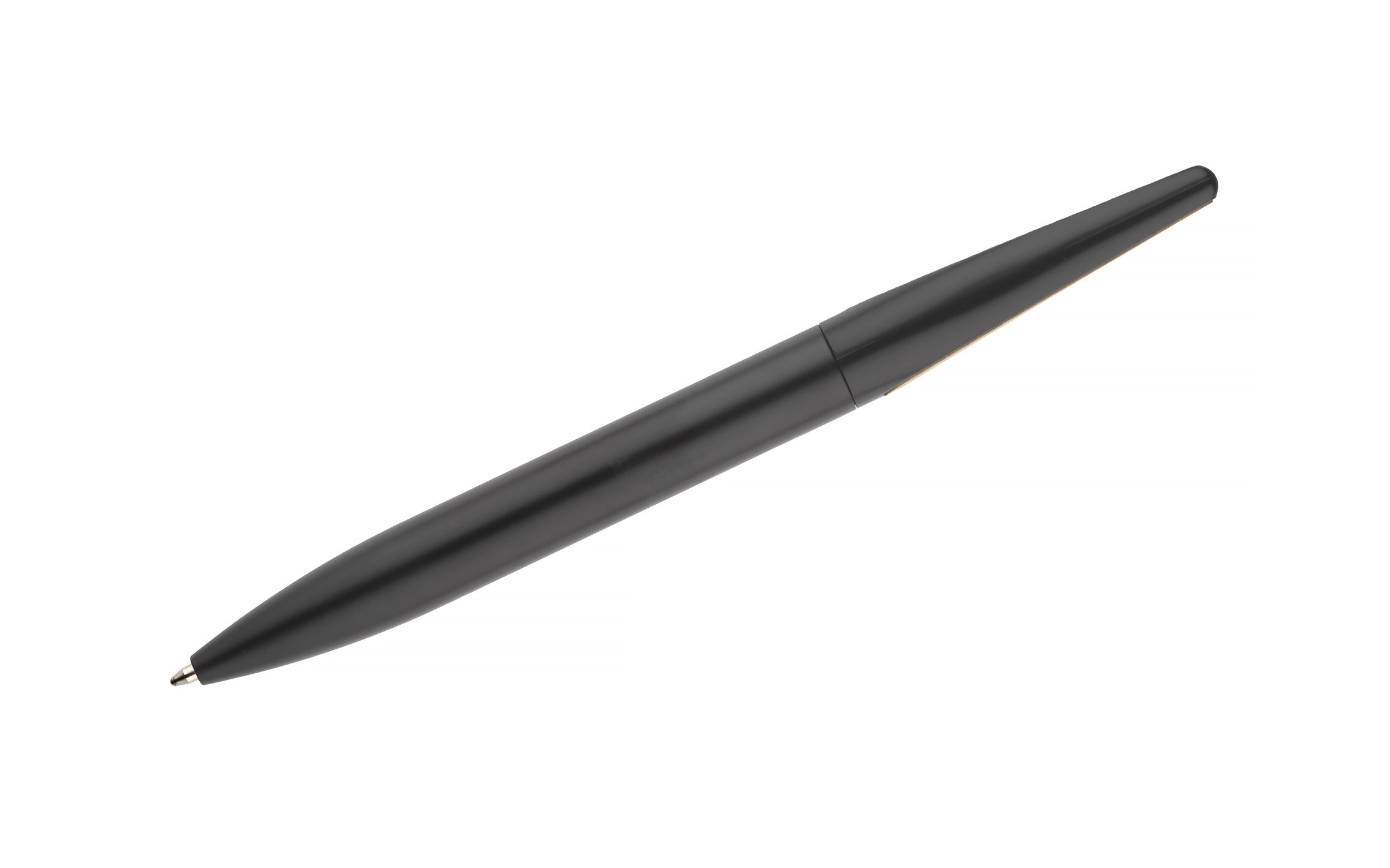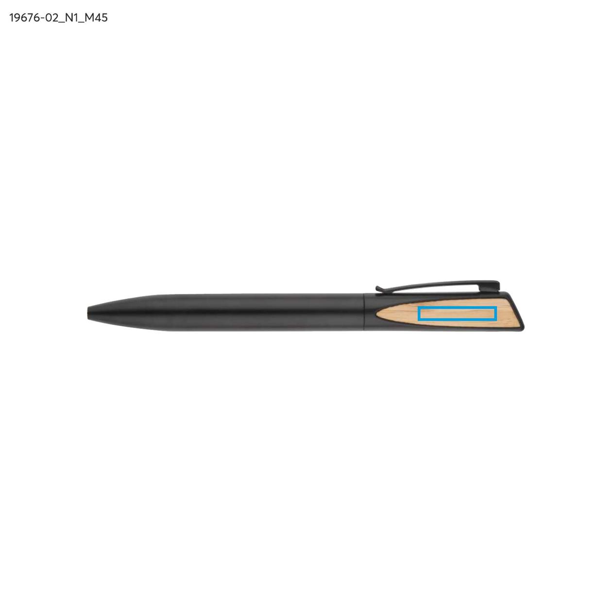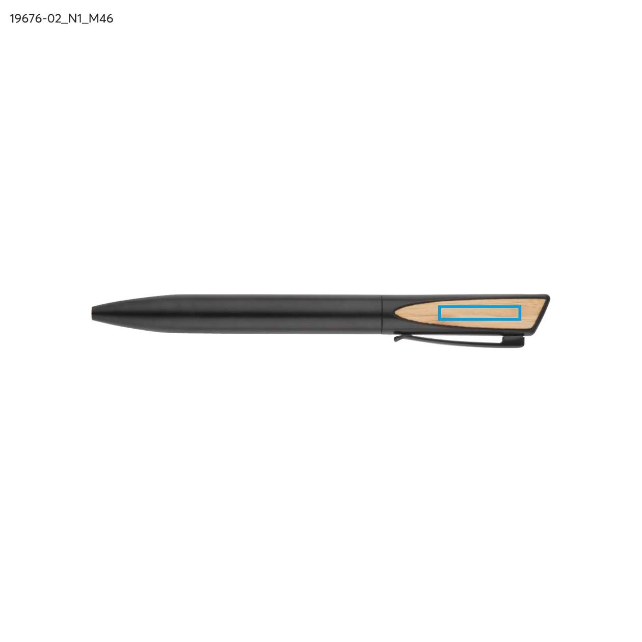 OYA to elegancki długopis wykonany z metalu oraz tworzywa w czarnym kolorze z ciekawym elementem ozdobnym z naturalnego bambusa. Długopis zapakowany jest w papierowy kartonik w kolorze brązowym. Mechanizm typu twist, wkład w kolorze niebieskim.