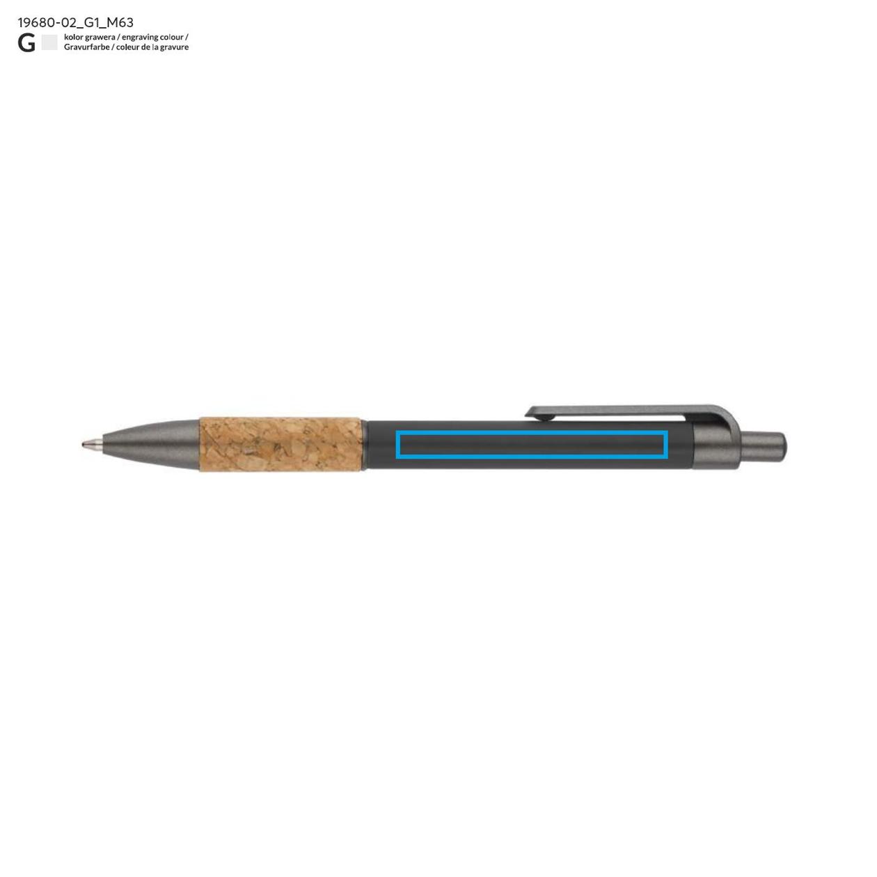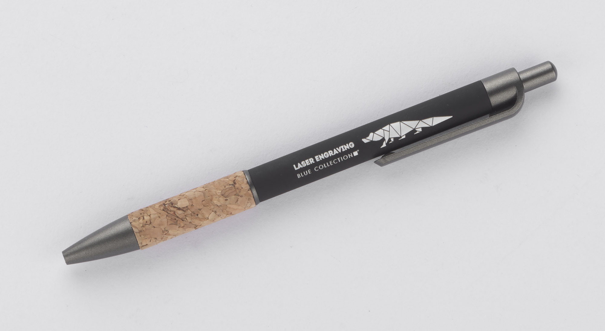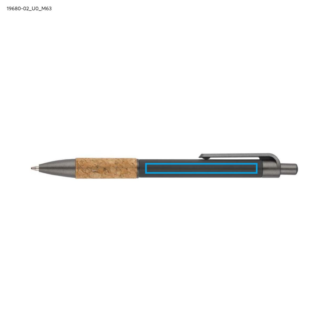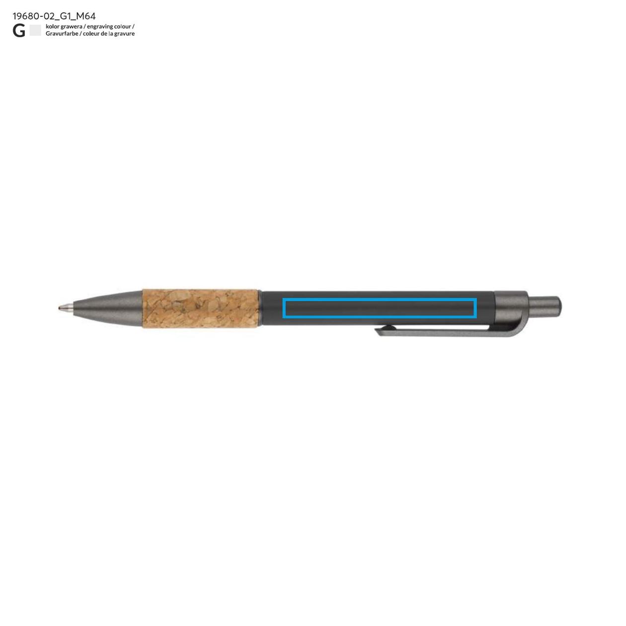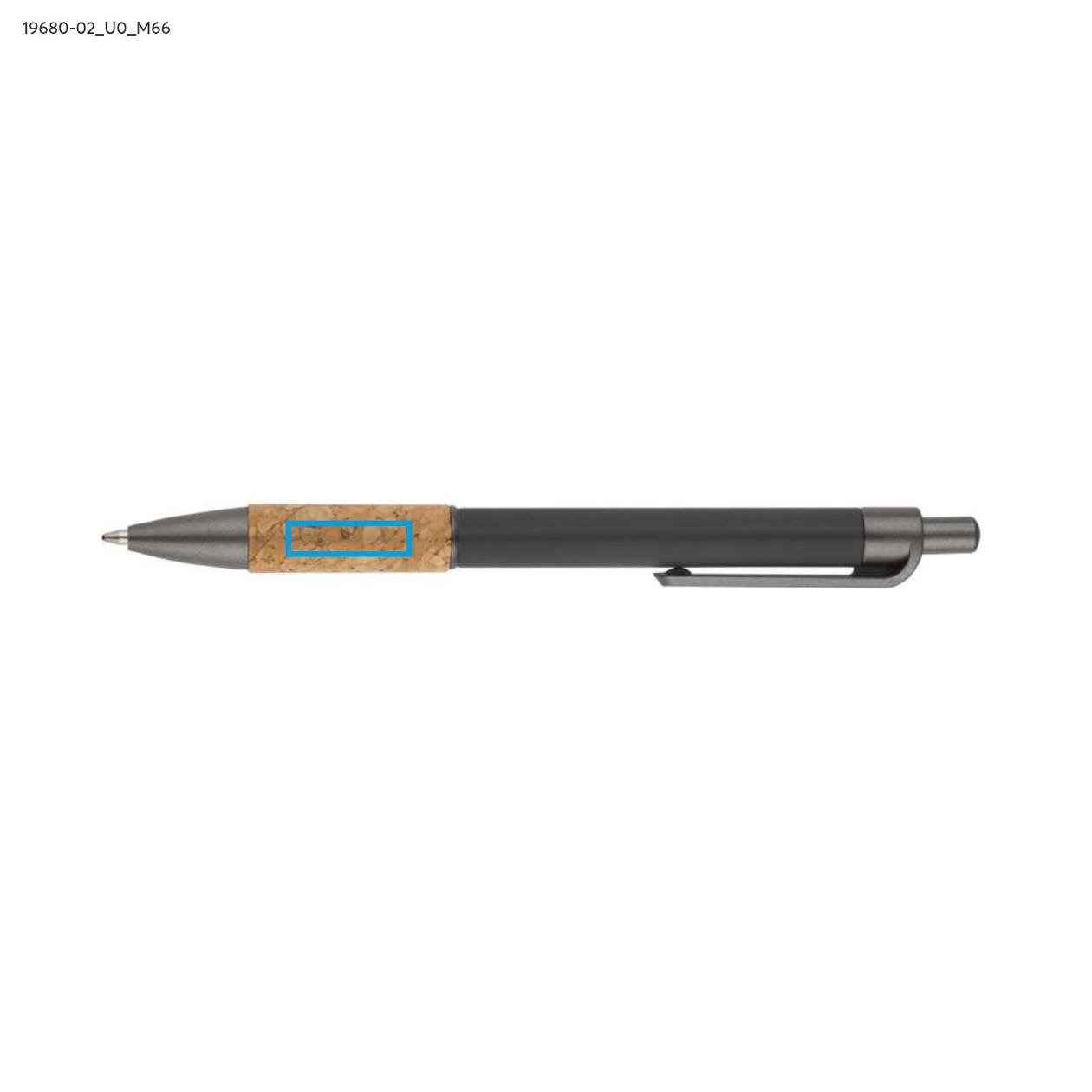 Długopis KUBOD to klasyczny model o prostym, eleganckim kształcie, idealny do znakowania. Aluminiowy korpus pokryty został matową powłoką soft touch, która zwiększa komfort użytkowania. Naturalny korek w części chwytnej przyciąga uwagę i wyróżnia produkt na tle standardowych modeli. Metaliczne akcenty z tworzywa dodają całości nowoczesnego charakteru. Długopis posiada mechanizm automatyczny i jest wyposażony w niebieski wkład typu X20 (wymienny, niedostępny w naszej ofercie).