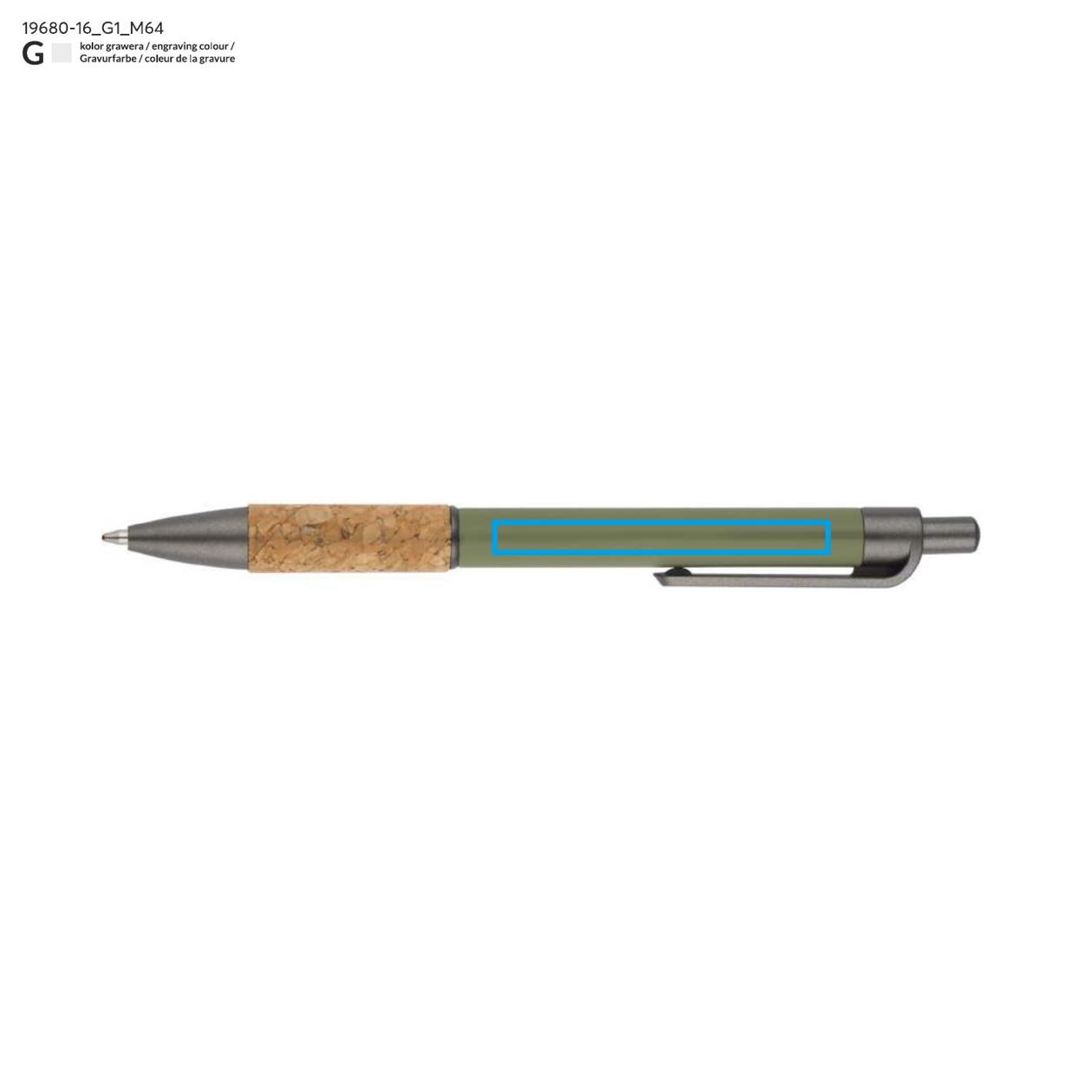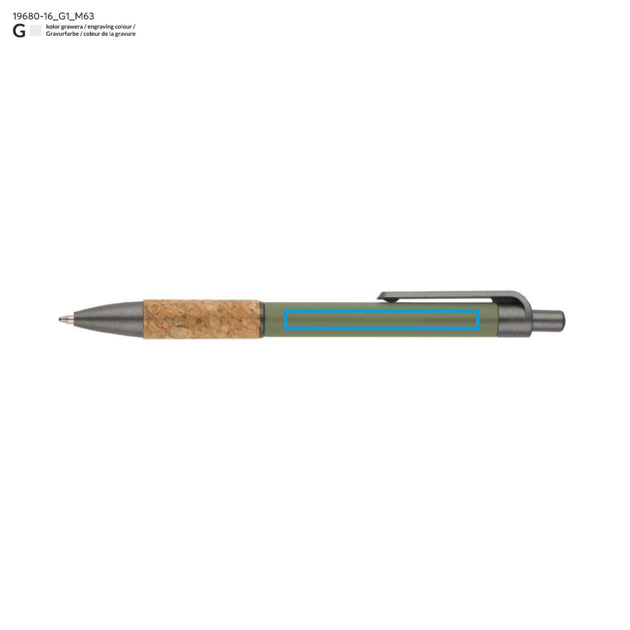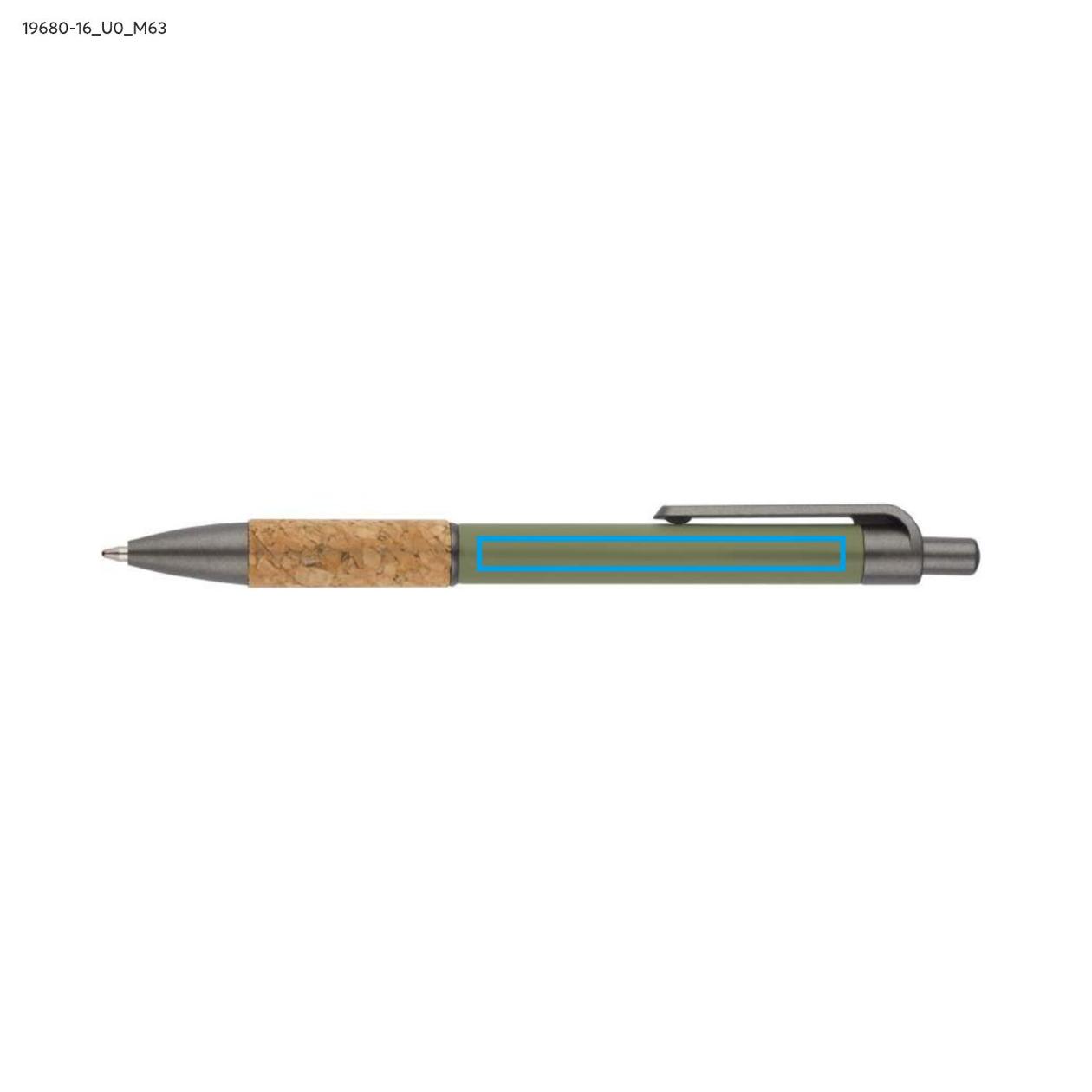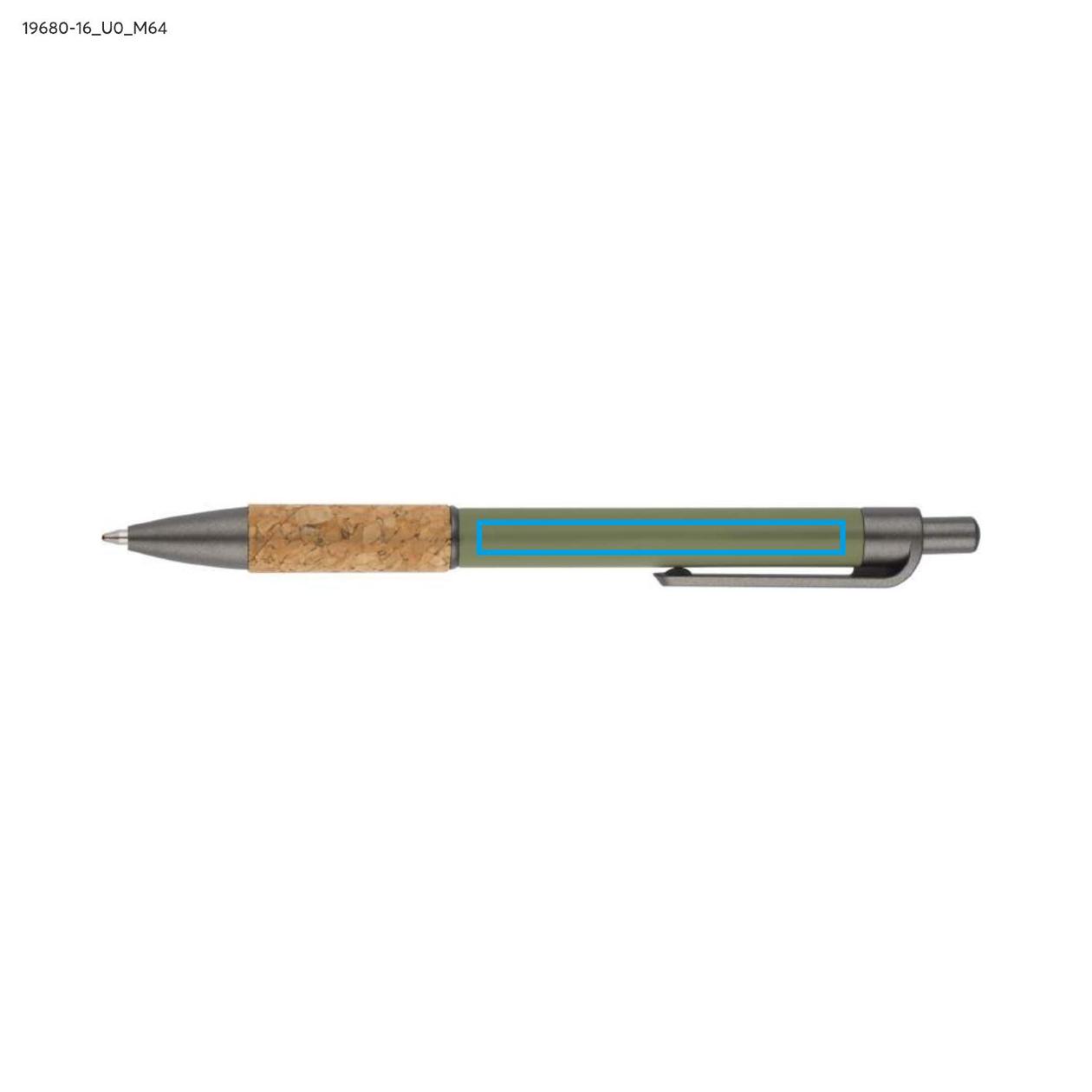 Długopis KUBOD to klasyczny model o prostym, eleganckim kształcie, idealny do znakowania. Aluminiowy korpus pokryty został matową powłoką soft touch, która zwiększa komfort użytkowania. Naturalny korek w części chwytnej przyciąga uwagę i wyróżnia produkt na tle standardowych modeli. Metaliczne akcenty z tworzywa dodają całości nowoczesnego charakteru. Długopis posiada mechanizm automatyczny i jest wyposażony w niebieski wkład typu X20 (wymienny, niedostępny w naszej ofercie).