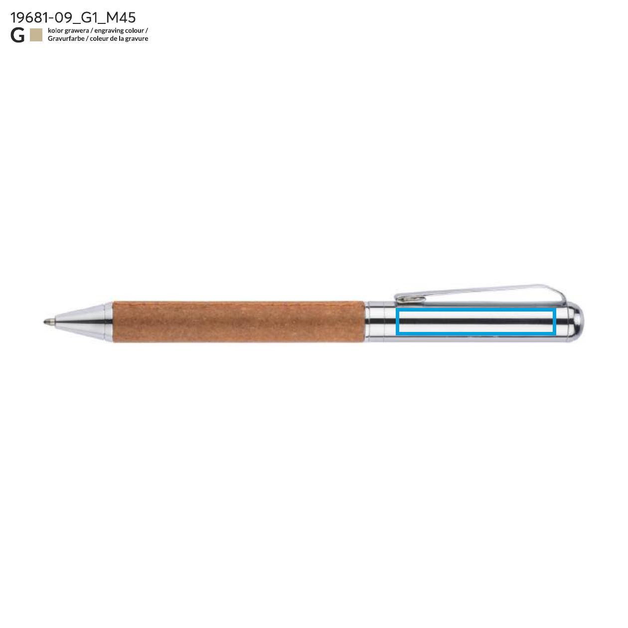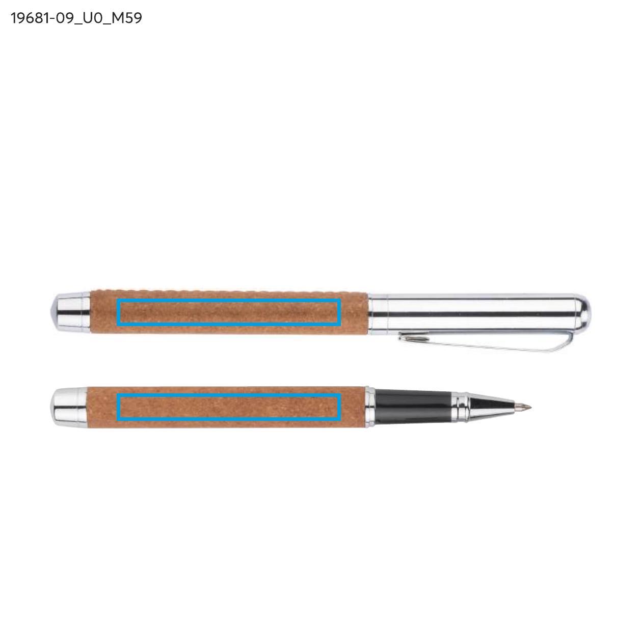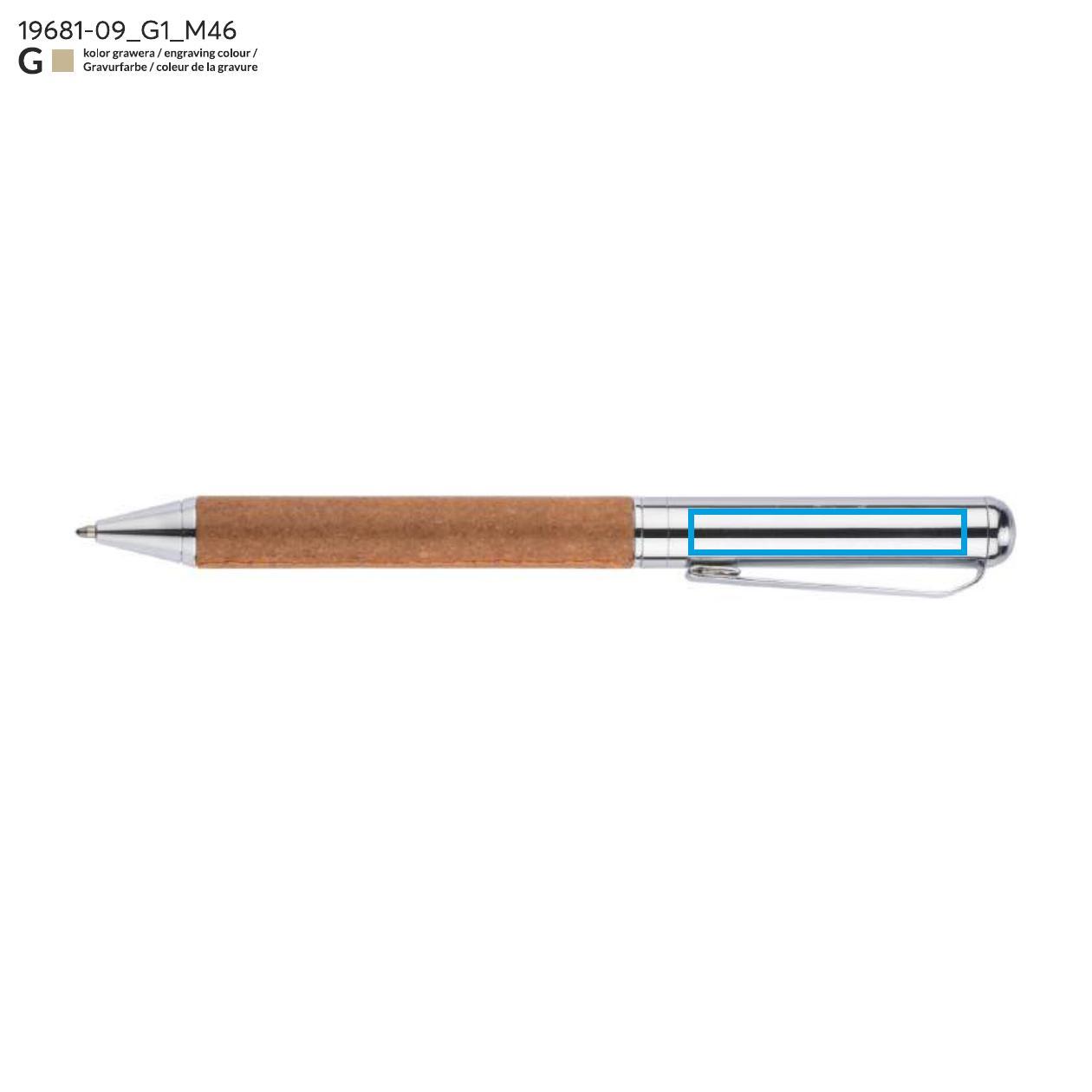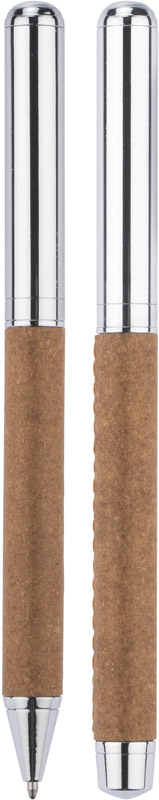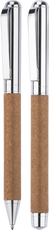 Zestaw OHIO to propozycja eleganckiego kompletu piśmienniczego nawiązującego do eko trendów. Metalowy korpus długopisów został wykończony naturalną skórą z recyklingu. Chromowane wykończenia świetnie komponują się z naturalnym surowcem na korpusie. W zestawie długopis oraz pióro kulkowe. Wkłady w kolorze niebieskim. Zestaw zapakowany w gustowne pudełko wykonane z papieru. Wieczko ozdobione skórą z recyklingu.