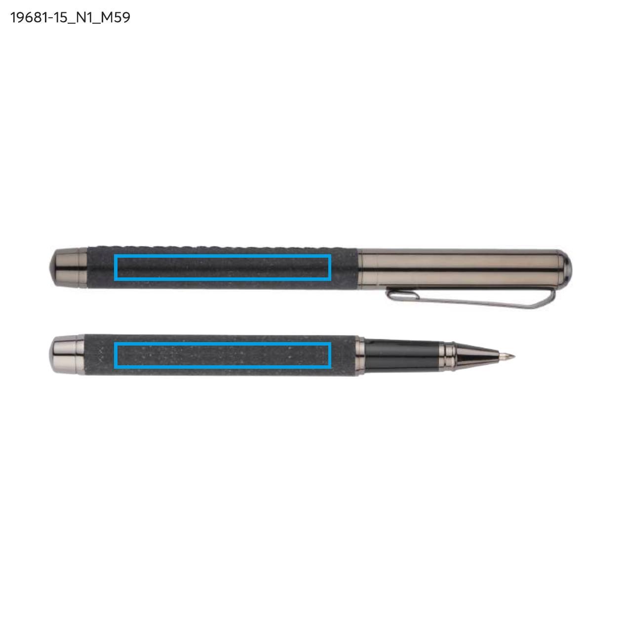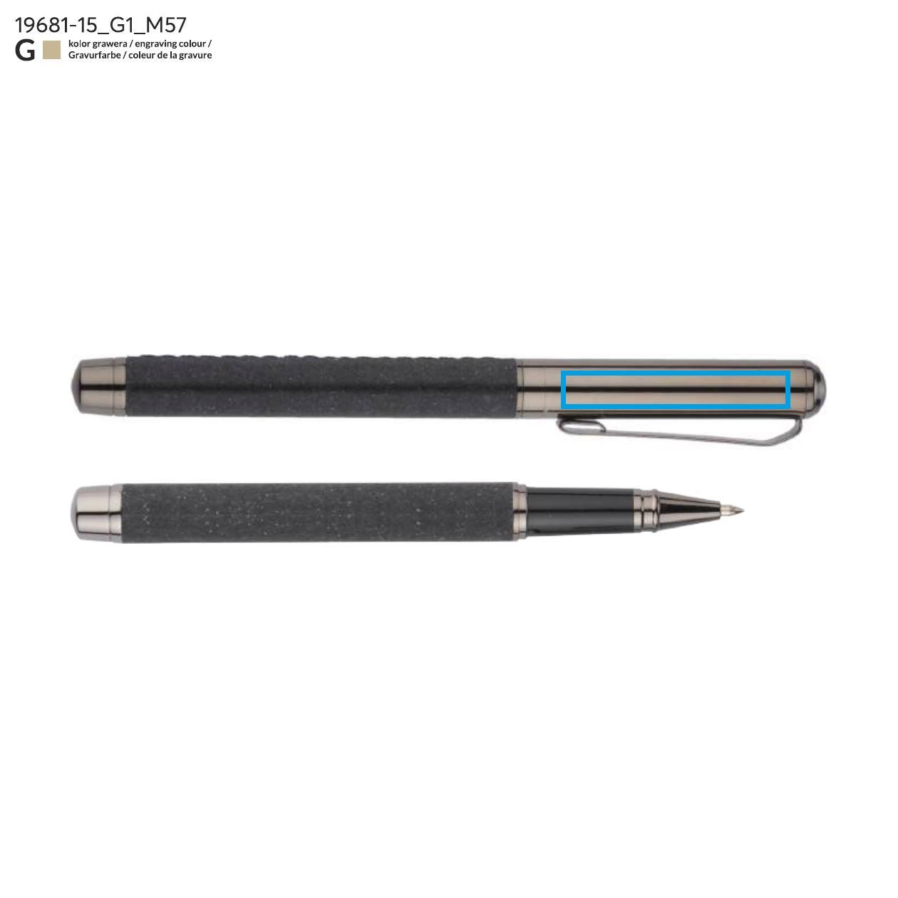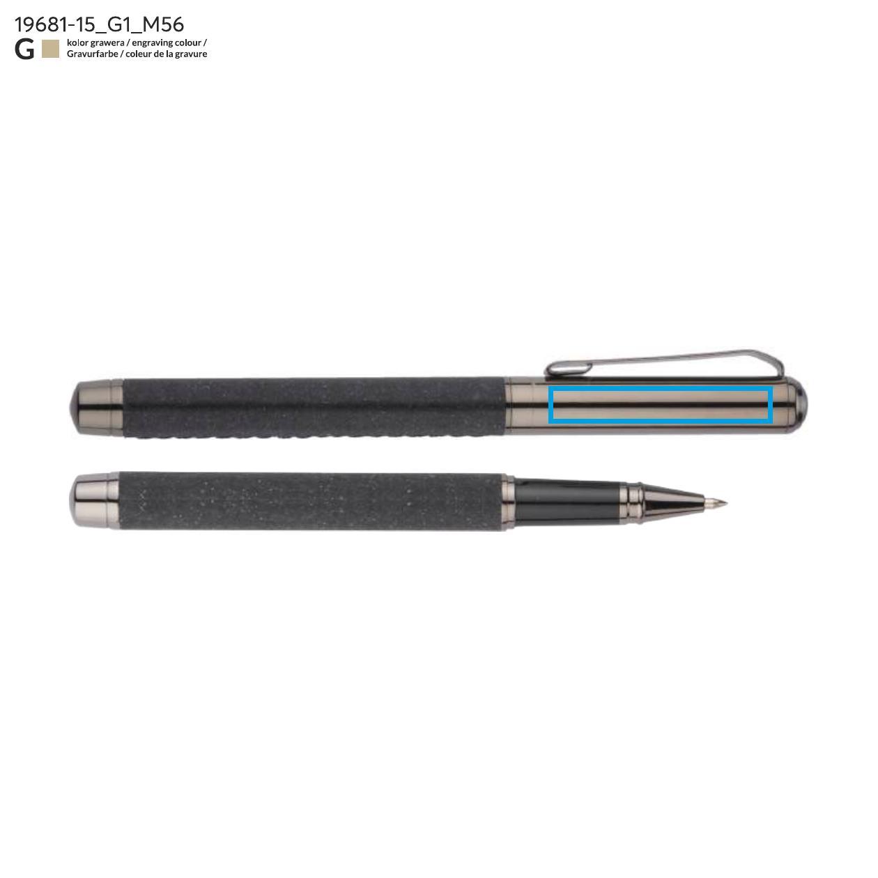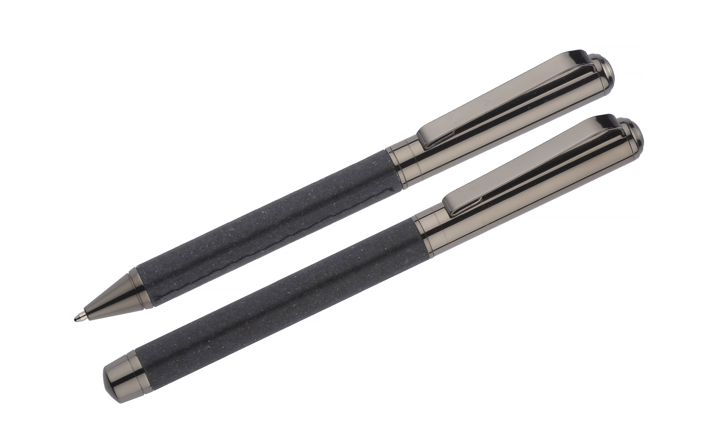 Zestaw OHIO to propozycja eleganckiego kompletu piśmienniczego nawiązującego do eko trendów. Metalowy korpus długopisów został wykończony naturalną skórą z recyklingu. Chromowane wykończenia świetnie komponują się z naturalnym surowcem na korpusie. W zestawie długopis oraz pióro kulkowe. Wkłady w kolorze niebieskim. Zestaw zapakowany w gustowne pudełko wykonane z papieru. Wieczko ozdobione skórą z recyklingu.