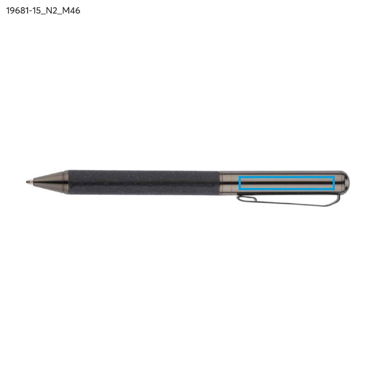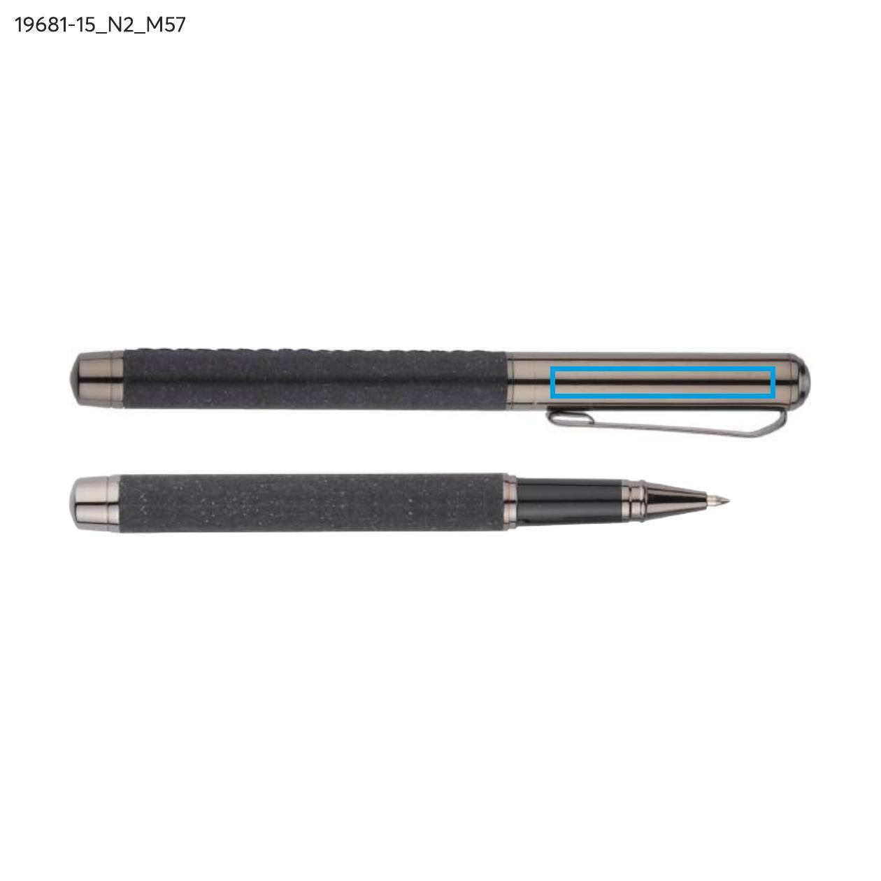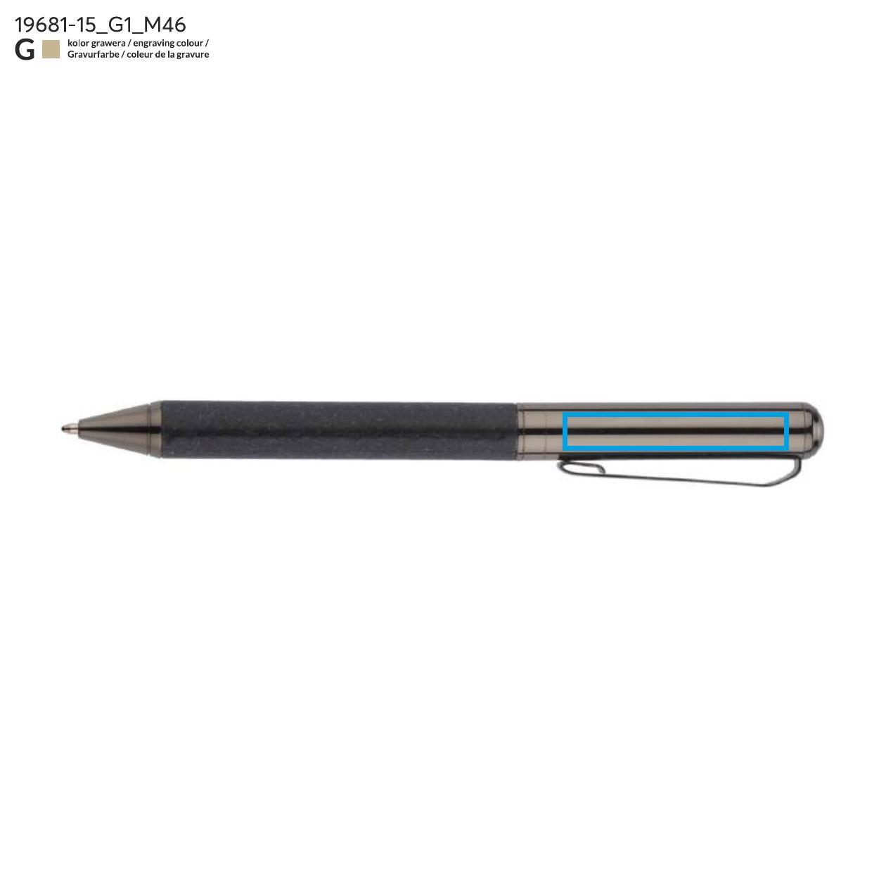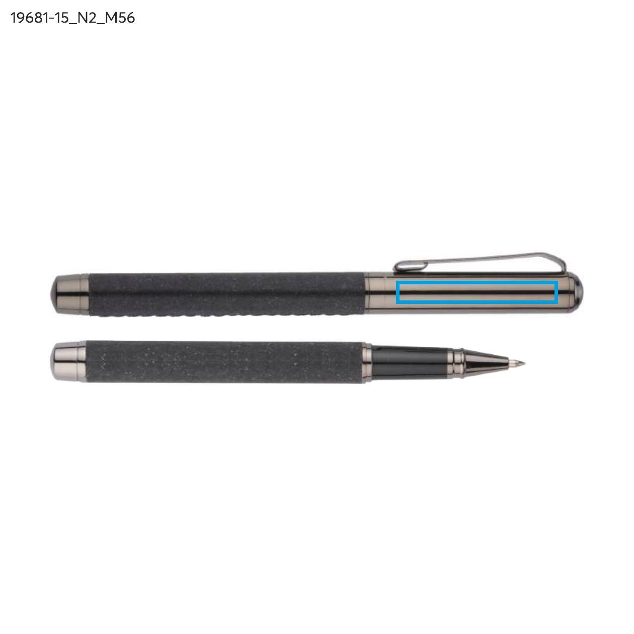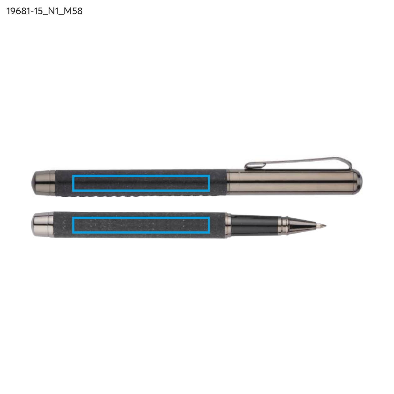 Zestaw OHIO to propozycja eleganckiego kompletu piśmienniczego nawiązującego do eko trendów. Metalowy korpus długopisów został wykończony naturalną skórą z recyklingu. Chromowane wykończenia świetnie komponują się z naturalnym surowcem na korpusie. W zestawie długopis oraz pióro kulkowe. Wkłady w kolorze niebieskim. Zestaw zapakowany w gustowne pudełko wykonane z papieru. Wieczko ozdobione skórą z recyklingu.