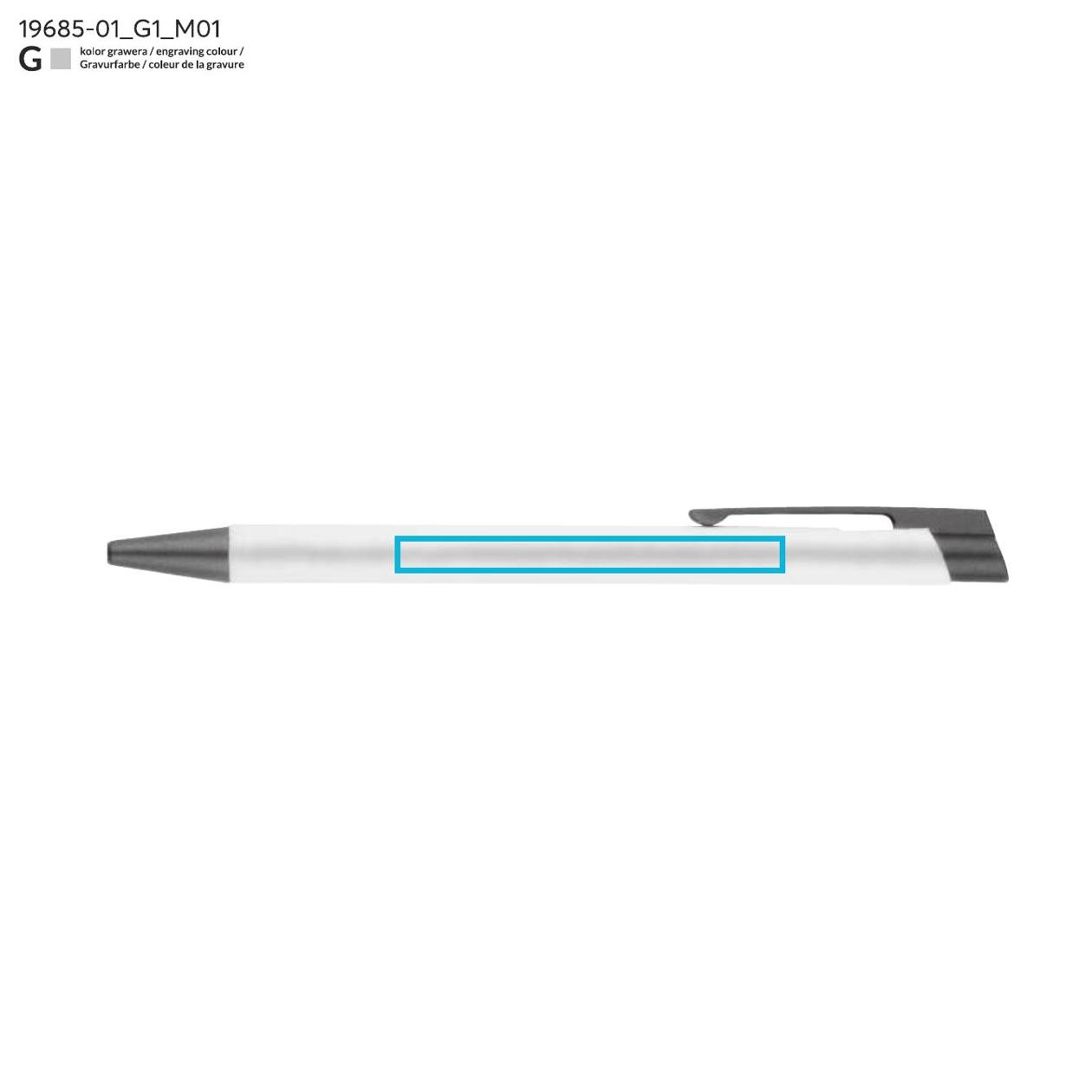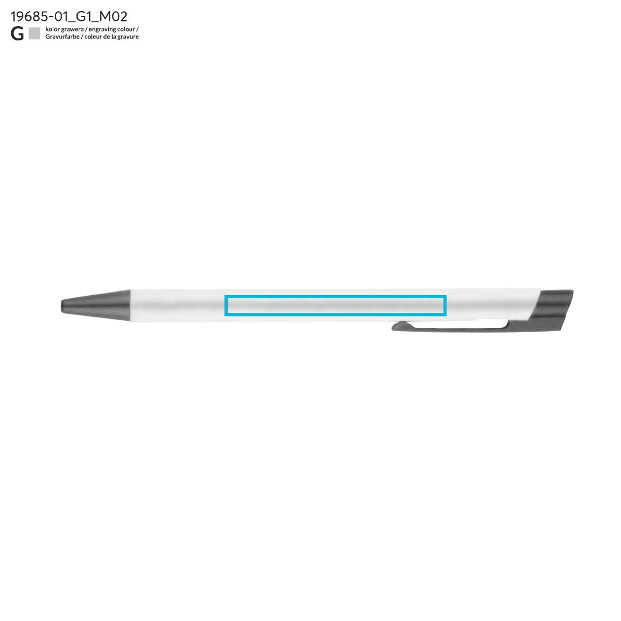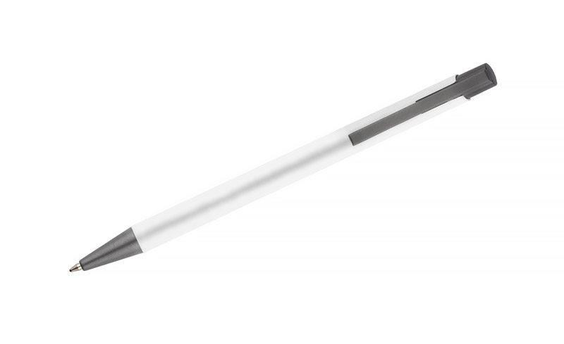 Długopis OPTIMA łączy w sobie elegancję i prostotę. Smukły korpus wykonany został z aluminium i pokryty gumowaną farbą, która tworzy przyjemną w dotyku powłokę. Długopis automatyczny. Wykończenia w kolorze grafitowym. Wkład w kolorze niebieskim.