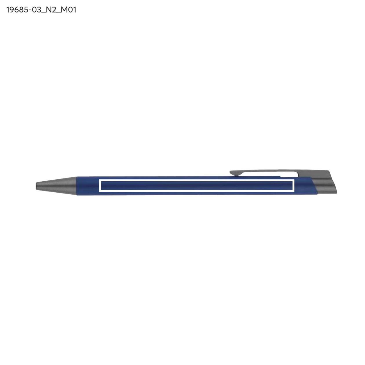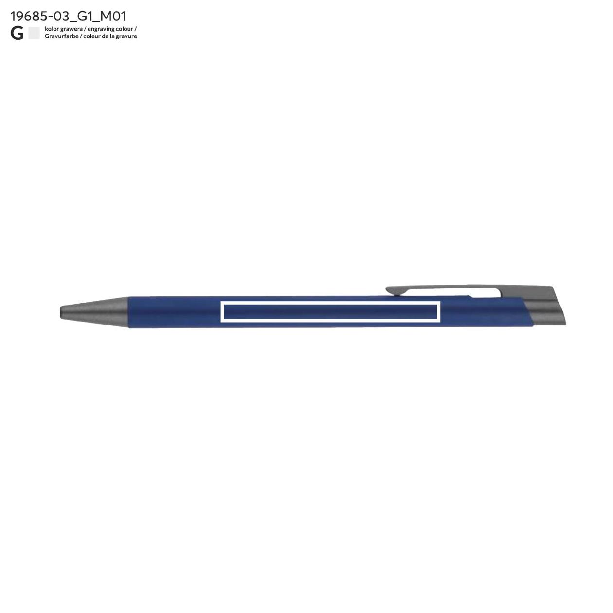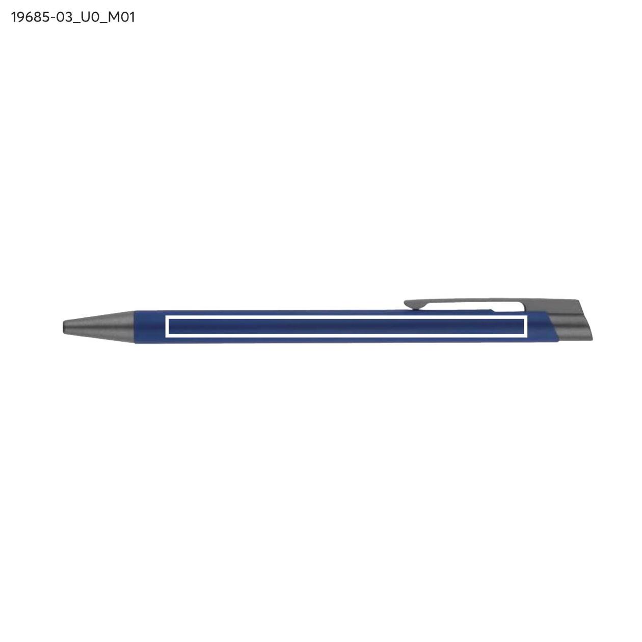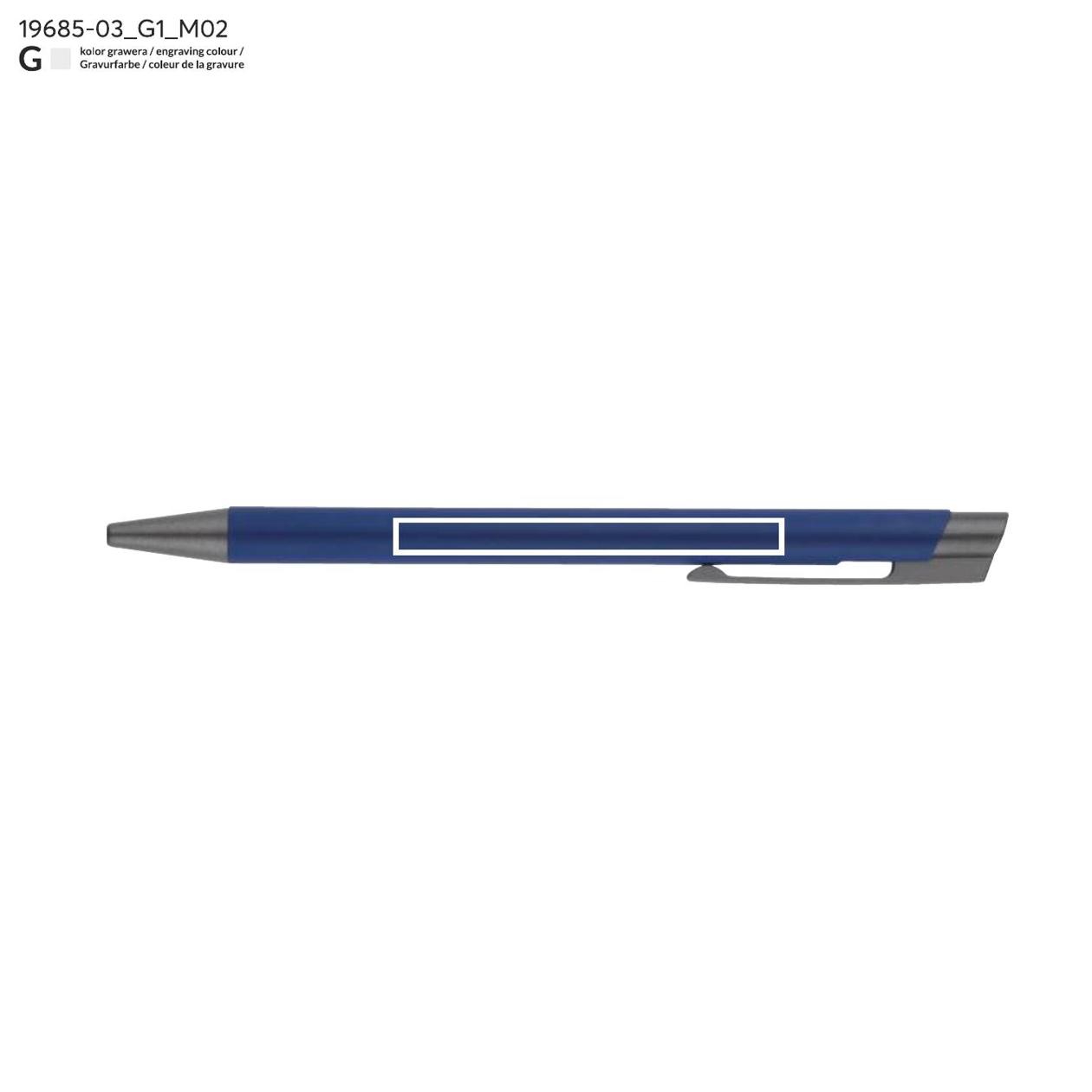Długopis OPTIMA łączy w sobie elegancję i prostotę. Smukły korpus wykonany został z aluminium i pokryty gumowaną farbą, która tworzy przyjemną w dotyku powłokę. Długopis automatyczny. Wykończenia w kolorze grafitowym. Wkład w kolorze niebieskim.