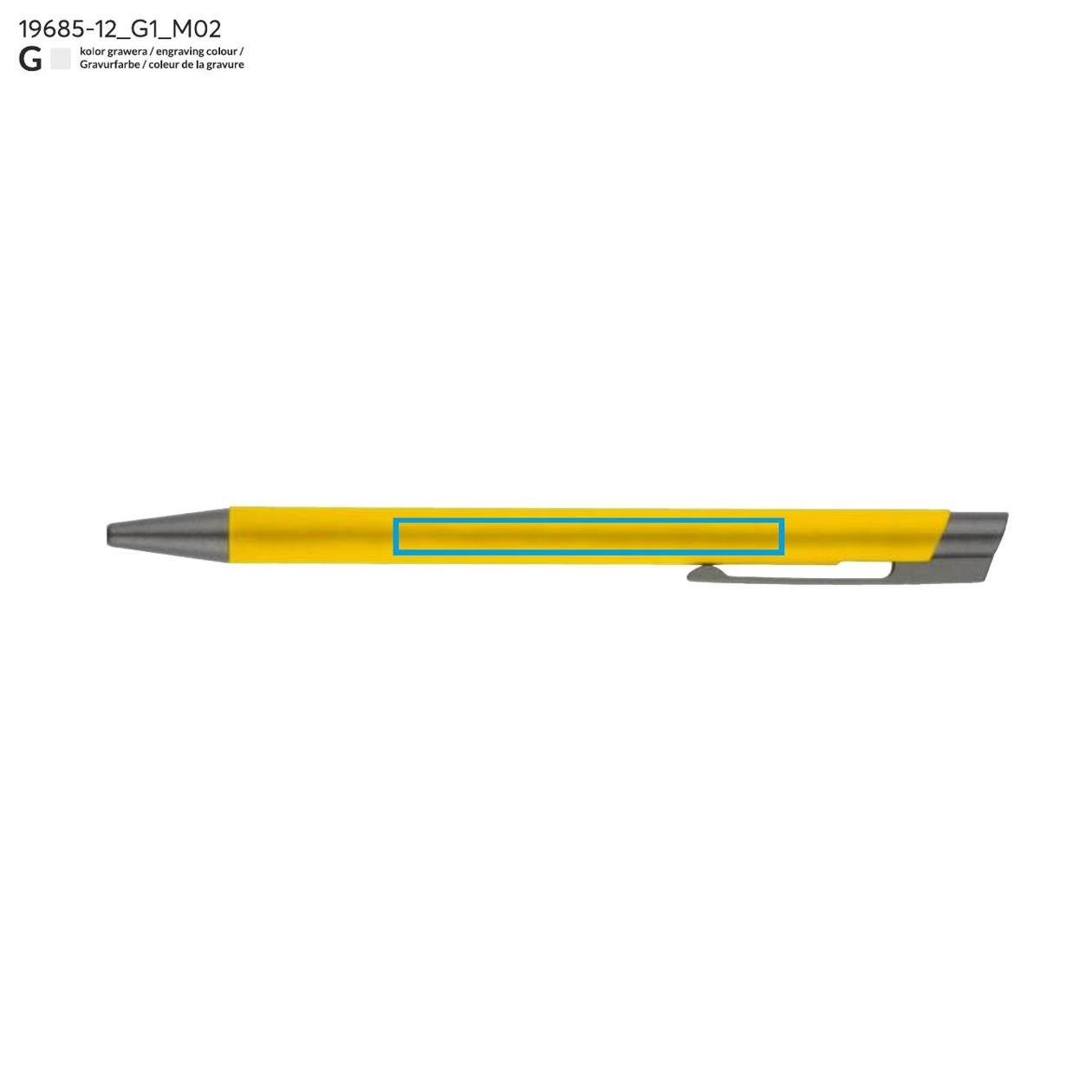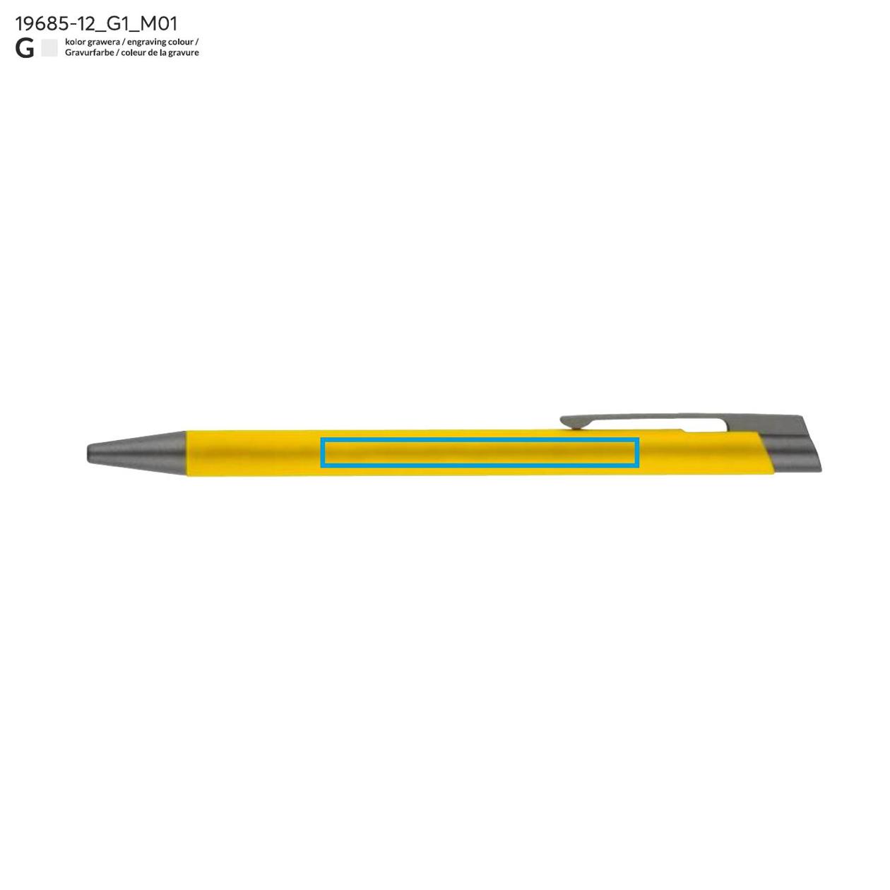 Długopis OPTIMA łączy w sobie elegancję i prostotę. Smukły korpus wykonany został z aluminium i pokryty gumowaną farbą, która tworzy przyjemną w dotyku powłokę. Długopis automatyczny. Wykończenia w kolorze grafitowym. Wkład w kolorze niebieskim.