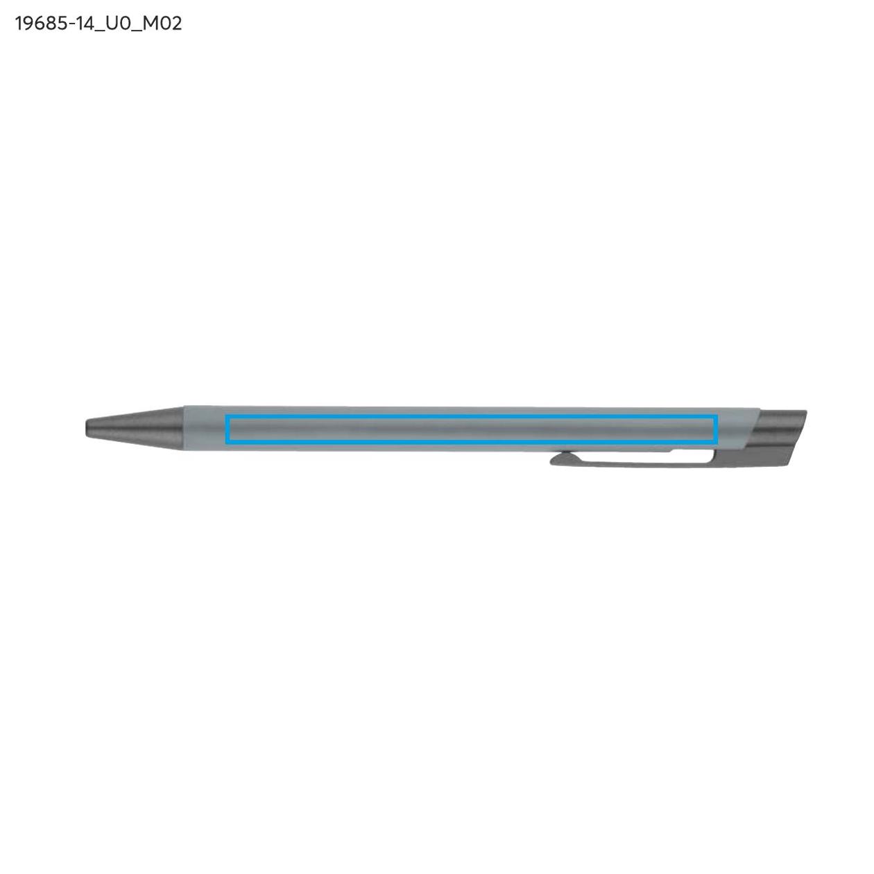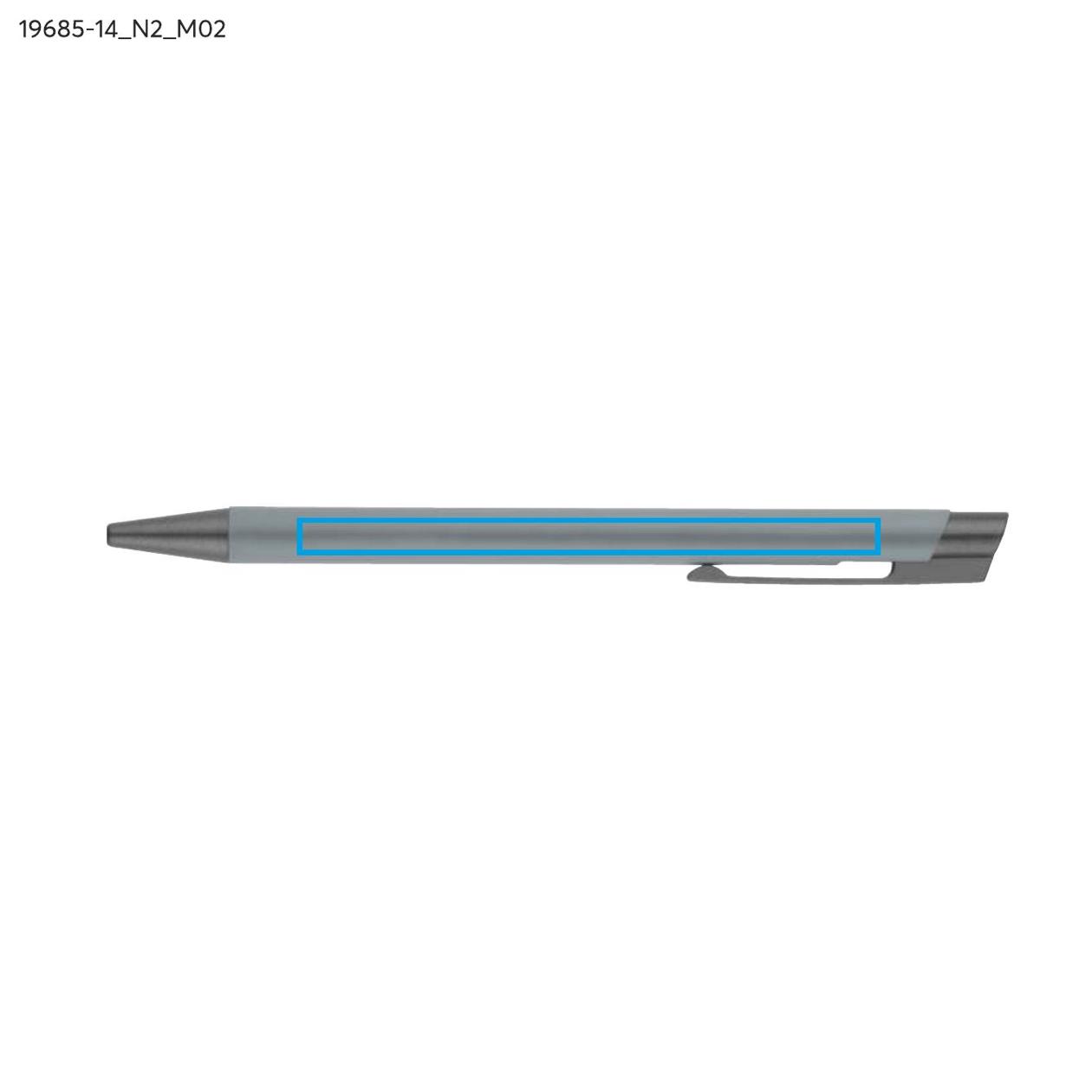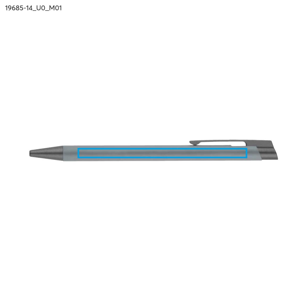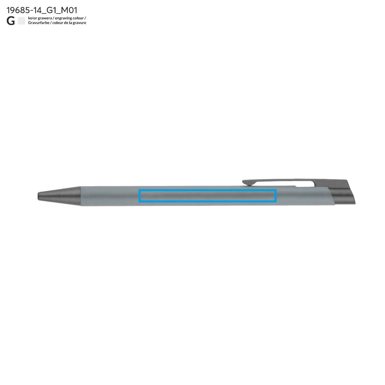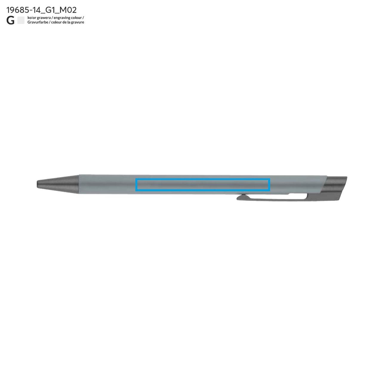 Długopis OPTIMA łączy w sobie elegancję i prostotę. Smukły korpus wykonany został z aluminium i pokryty gumowaną farbą, która tworzy przyjemną w dotyku powłokę. Długopis automatyczny. Wykończenia w kolorze grafitowym. Wkład w kolorze niebieskim.