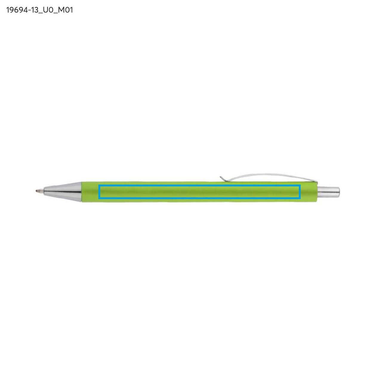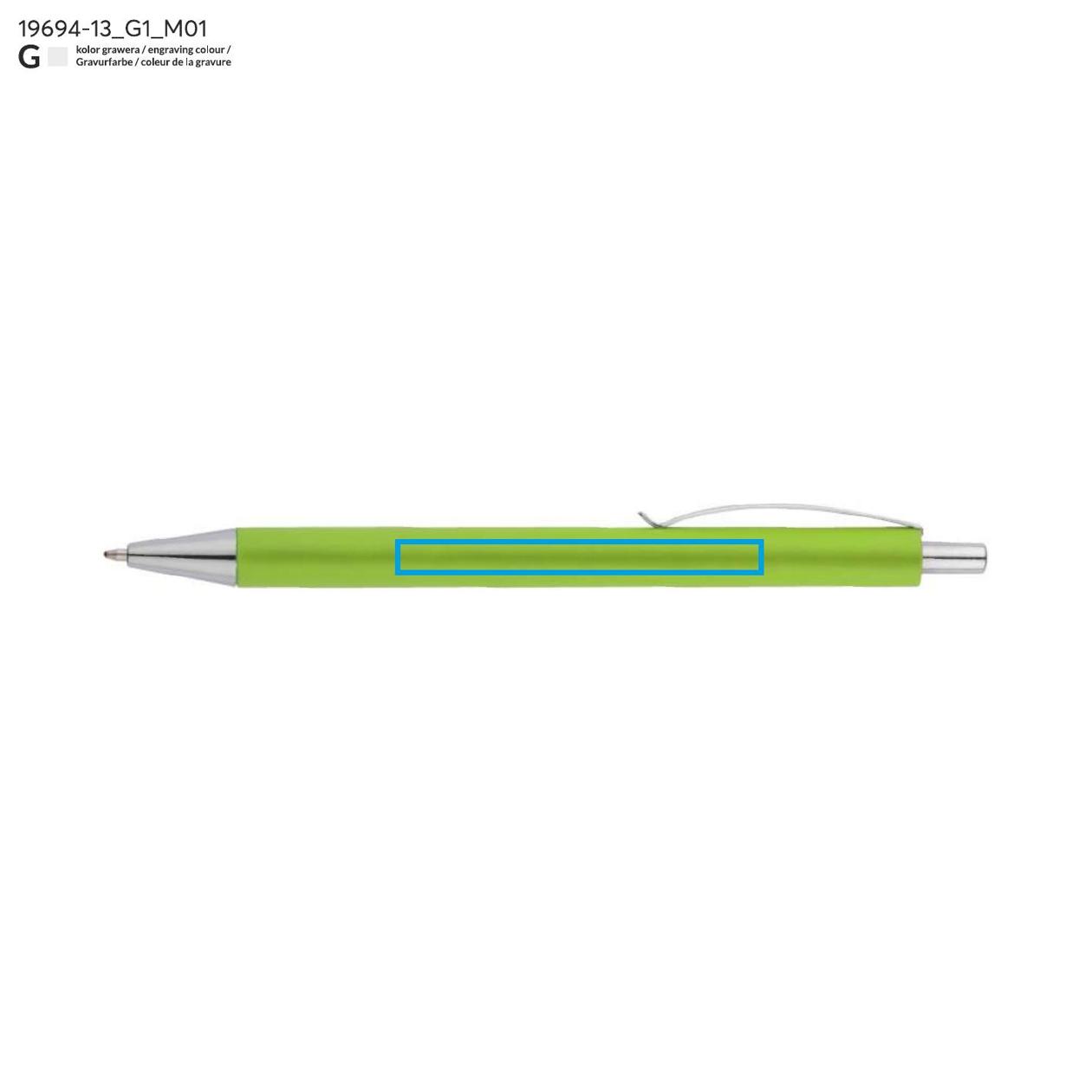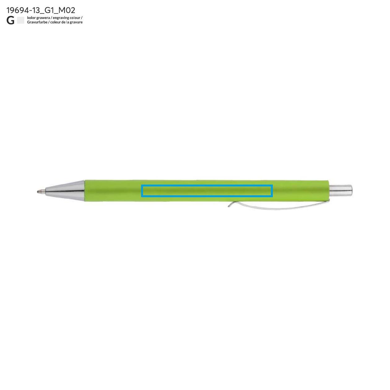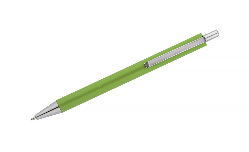 Długopis NOVI wykończony przyjemna w dotyku gumowana powierzchnią z chromowanymi elemantami w kolorze srebrnym. Wkład w kolorze niebieskim.