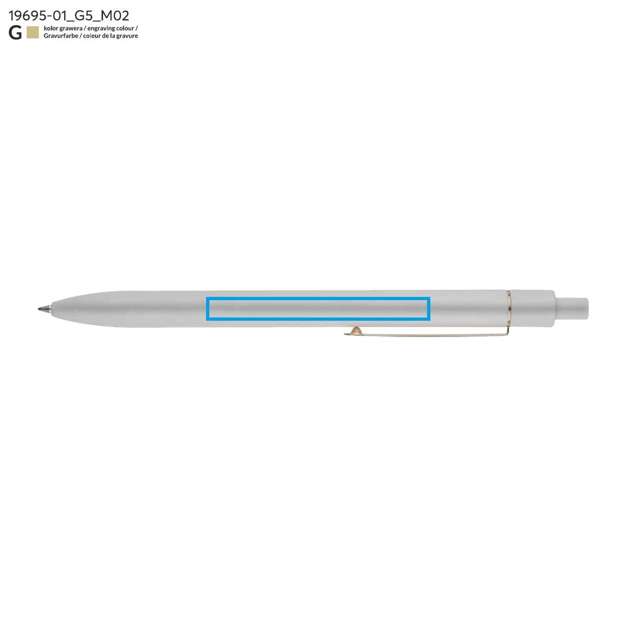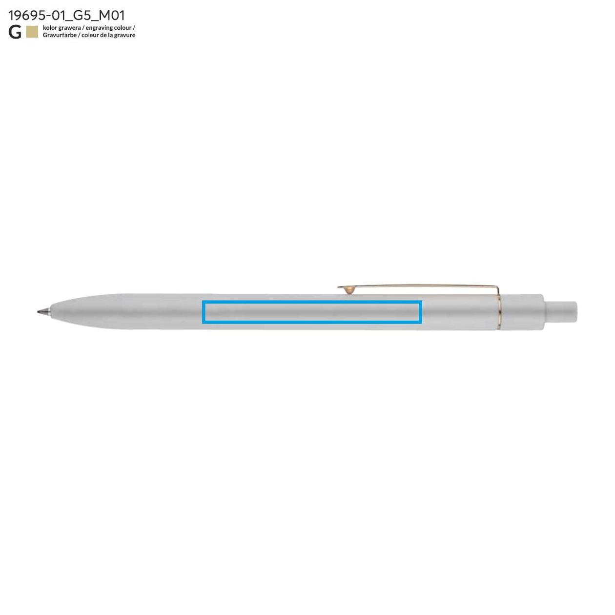 Stylowy długopis aluminiowy z matowym wykończeniem i klipem w kolorze złotym.