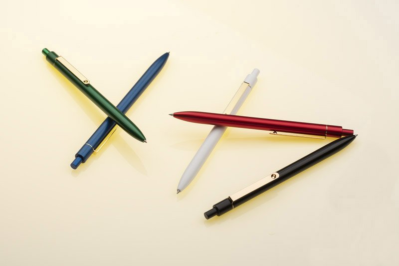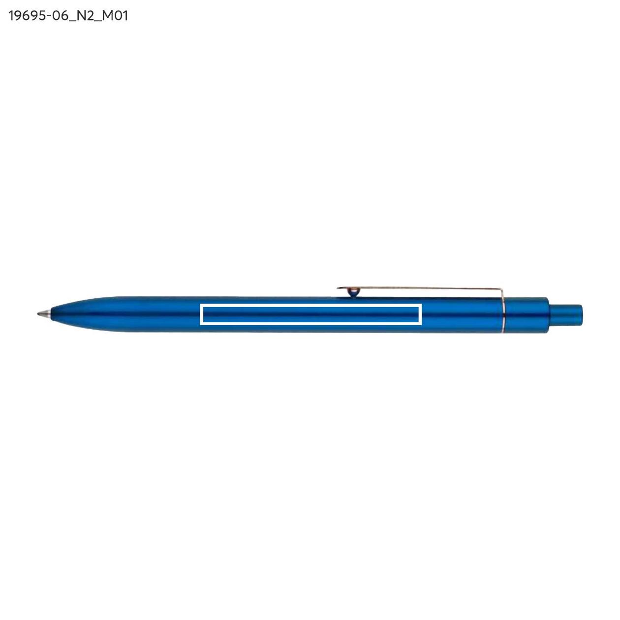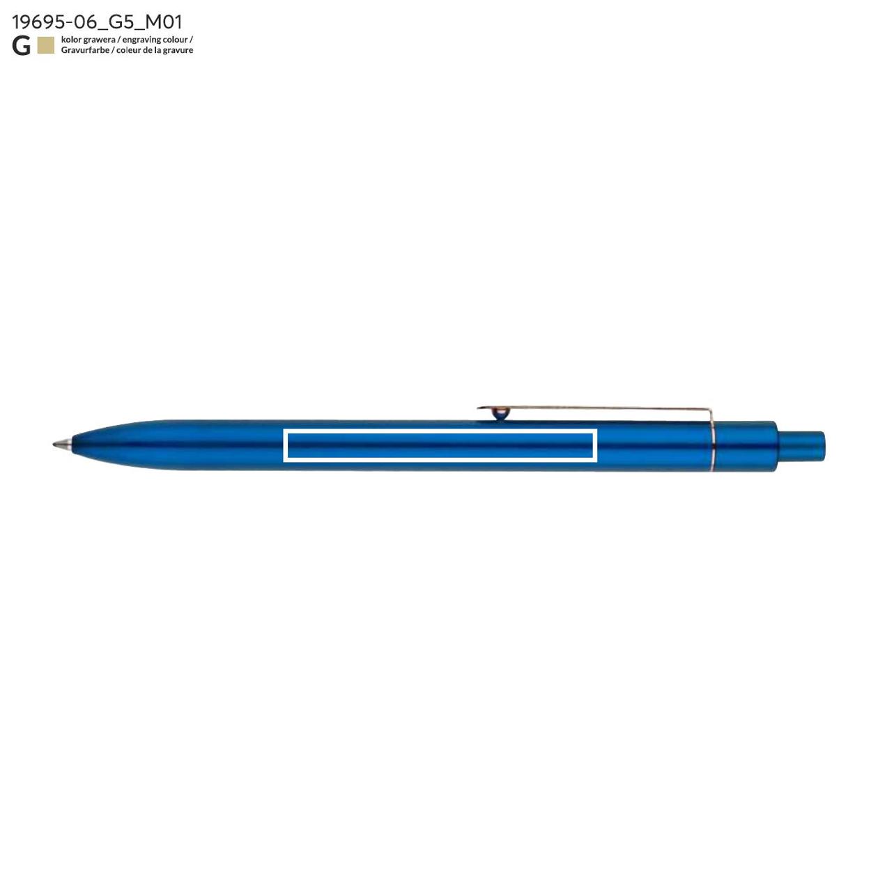 Stylowy długopis aluminiowy z matowym wykończeniem i klipem w kolorze złotym.