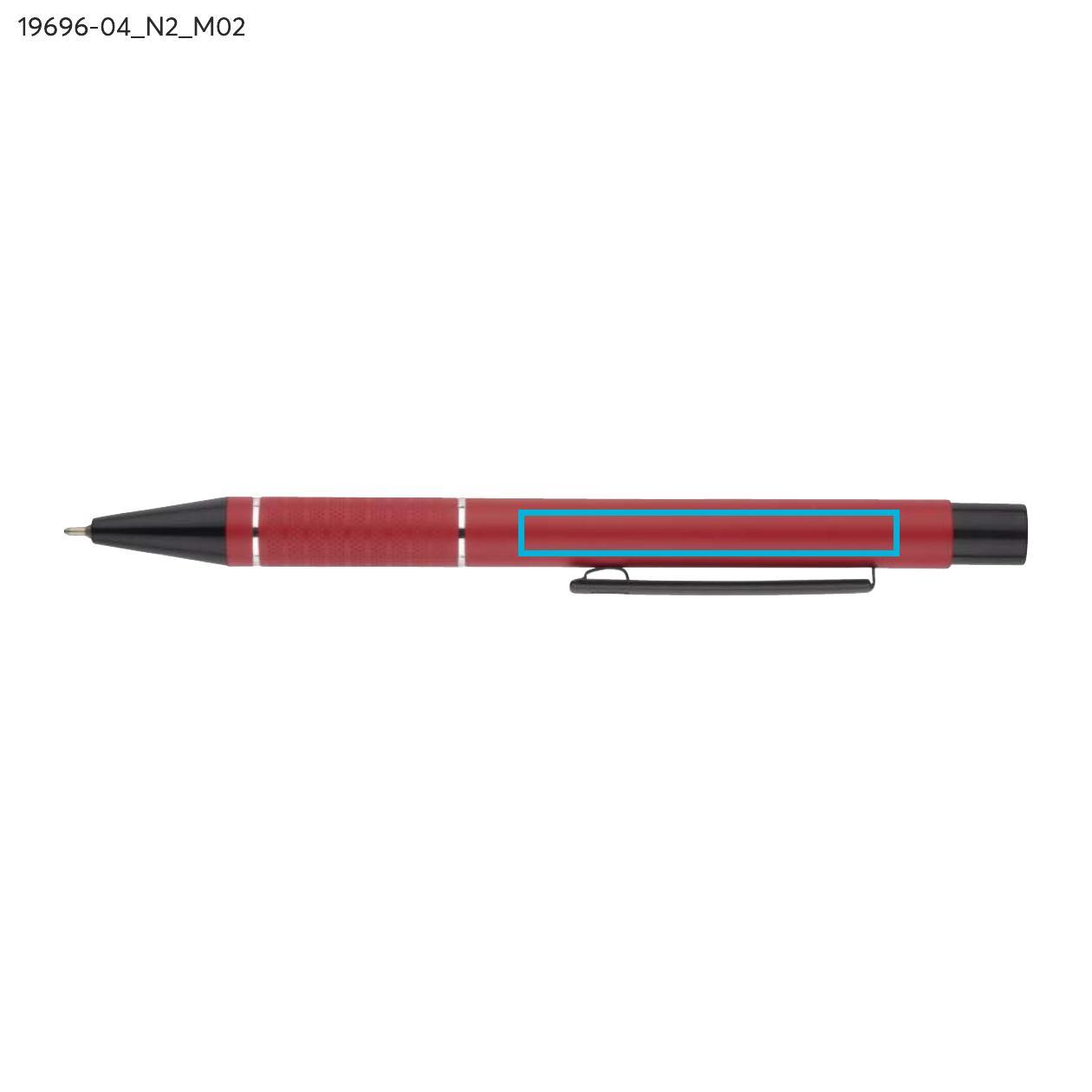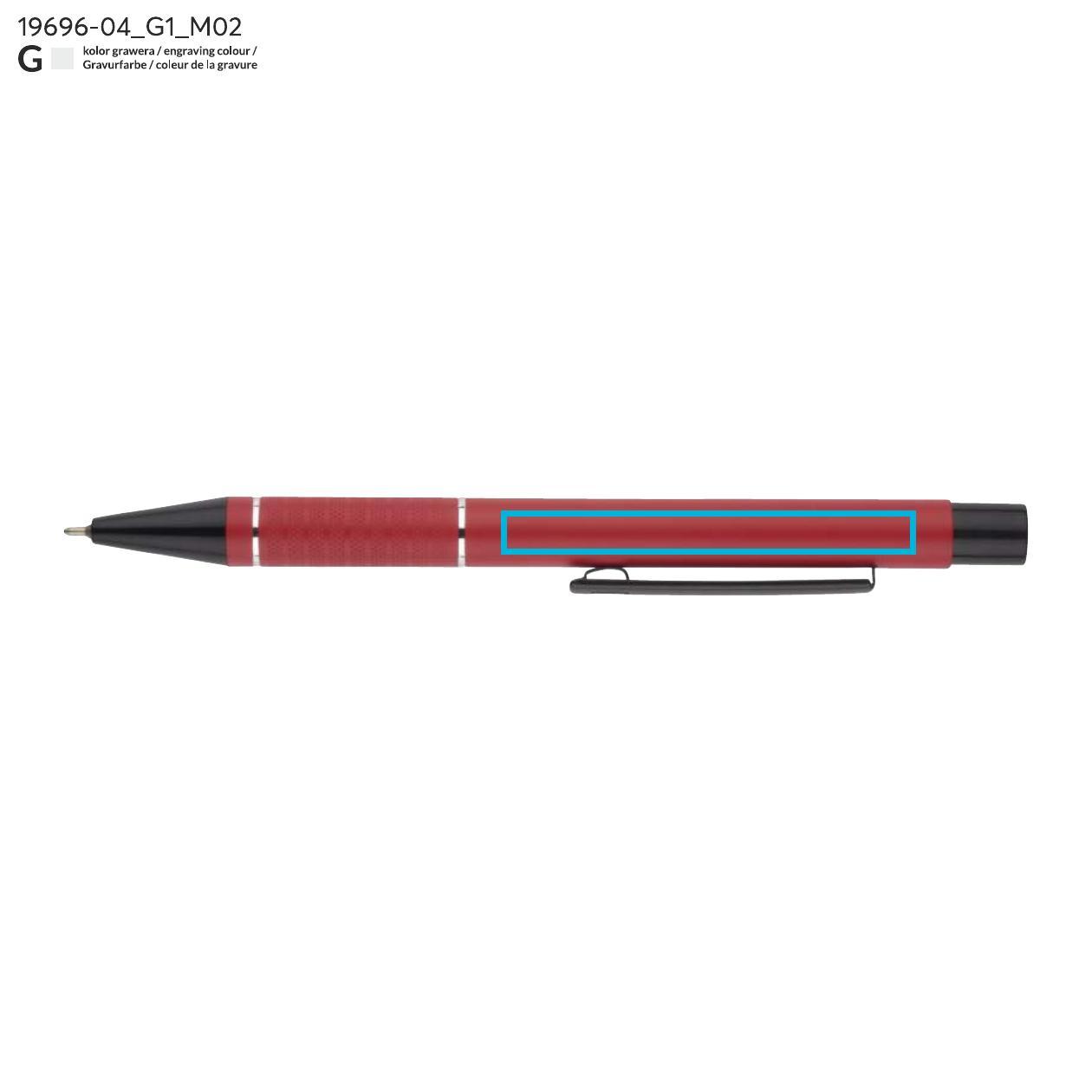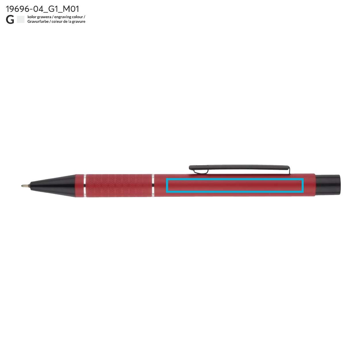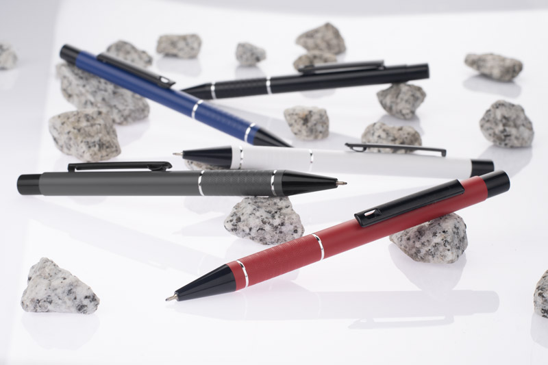 Długopis SATO łączy w sobie niezawodność, piękno i funkcjonalność. Wykonany jest z lekkiego aluminium, a czarne wykończenie nadaje mu elegancji i prestiżu, sprawiając, że doskonale sprawdzi się jako produkt reklamowy w każdej branży. Korpus długopisu został ozdobiony dwoma srebrnymi ringami oraz paskami o delikatnie chropowatej strukturze, dodając mu przyjemnie sensorycznego wymiaru. Wkład z tuszem pół żelowym zapewnia niesamowicie gładkie i płynne pisanie. Grubość linii 0,7 mm pozwoli użytkownikom cieszyć się wyjątkowo precyzyjnymi notatkami, podkreśleniami i listami.