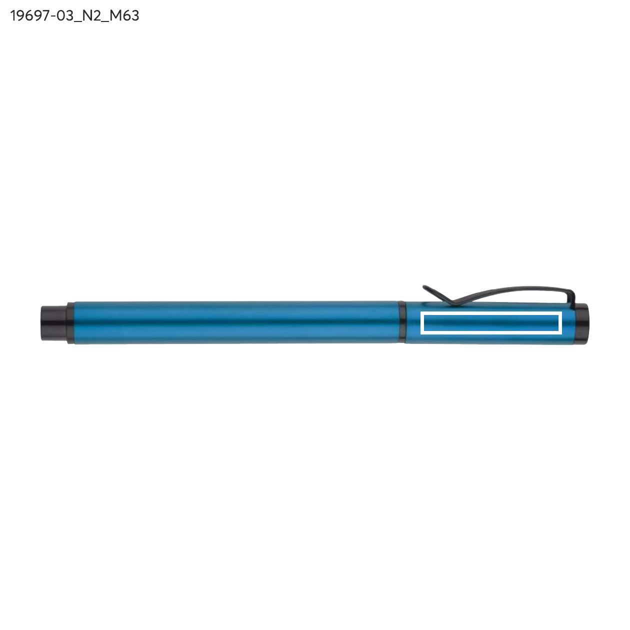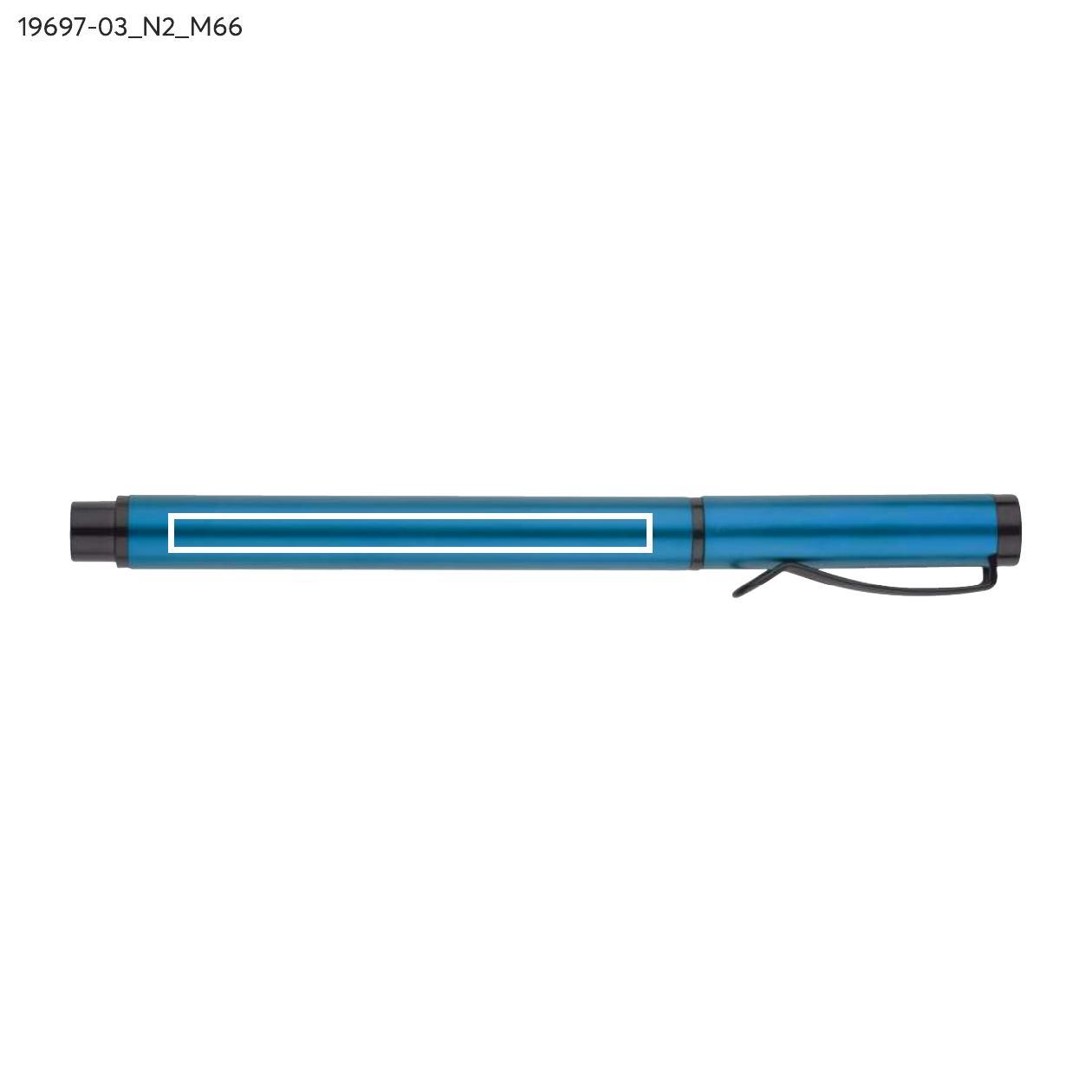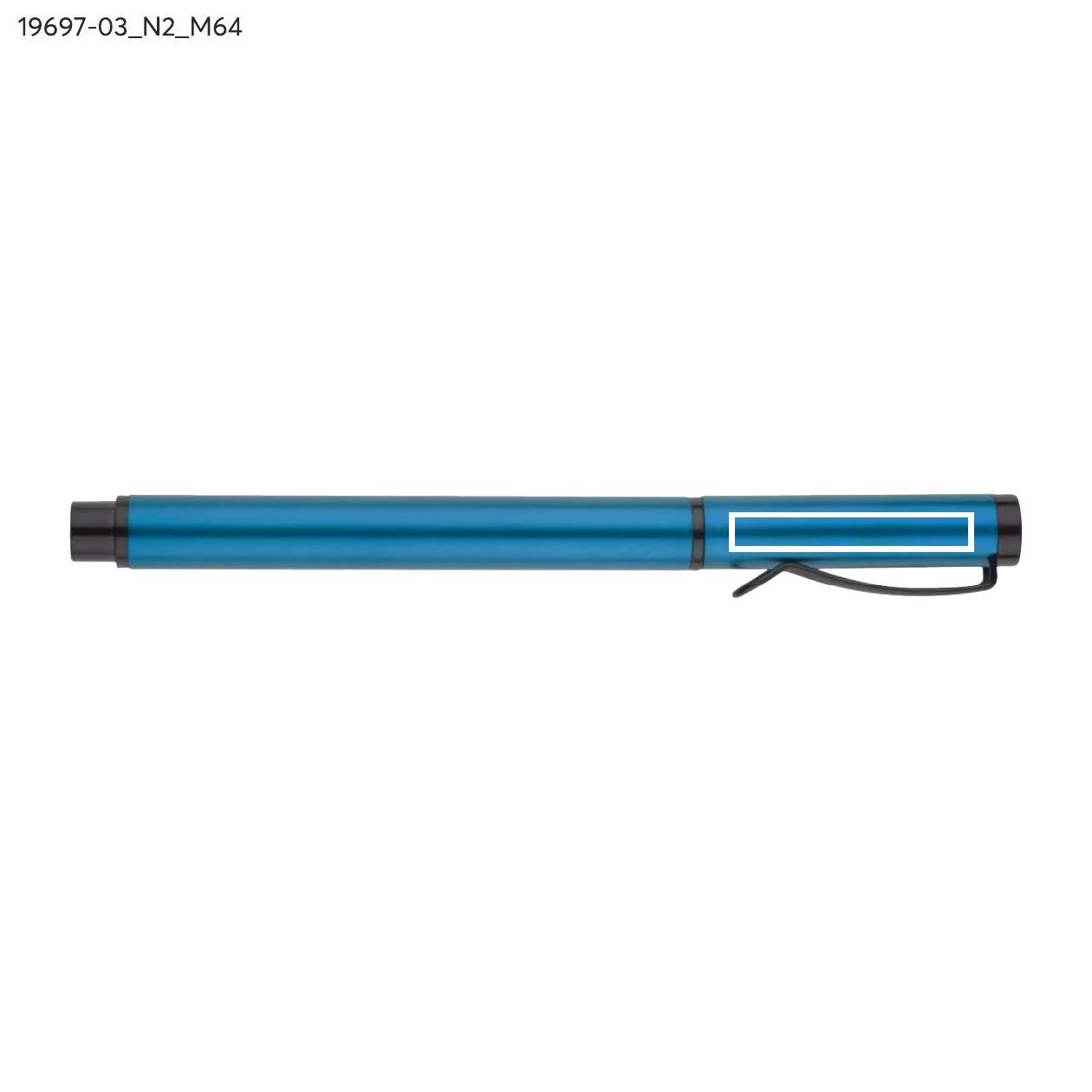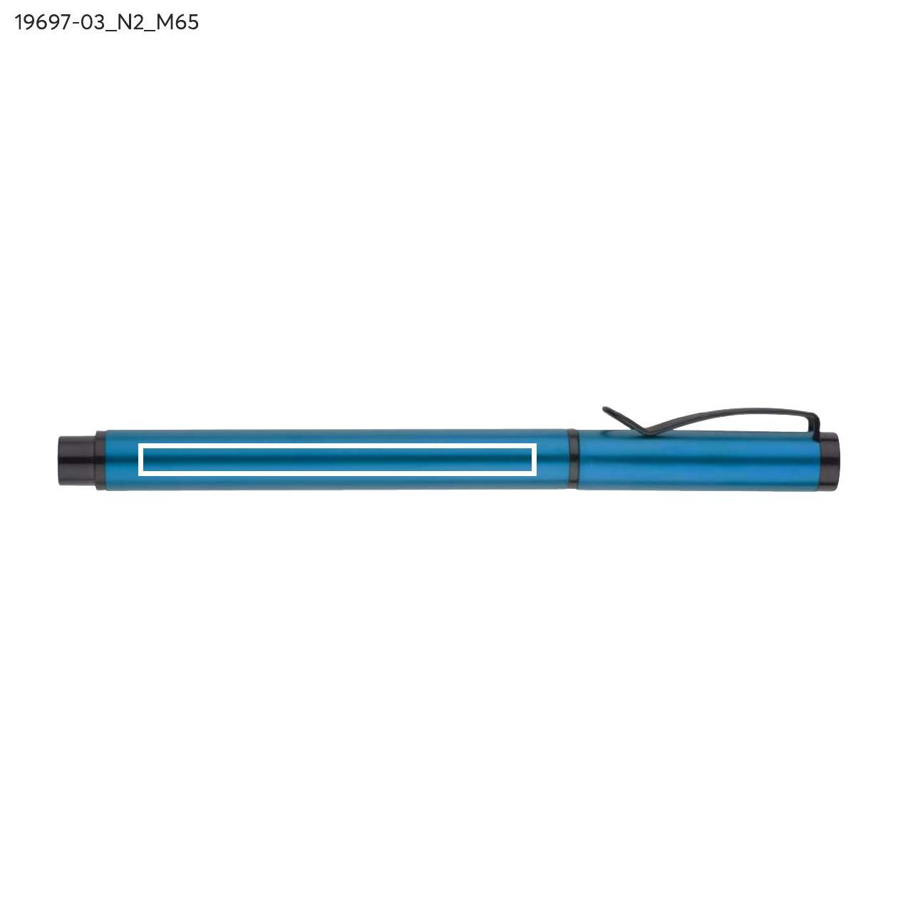 Długopis CHEN to oryginalny i niezwykle elegancki produkt wykonany z lekkiego aluminium. Wykończenie w kolorze czarnym gustownie dopełnia wyraziste kolory korpusu, a unikalna w formie zatyczka z niestandardowym klipem nadaje temu długopisowi niepowtarzalny charakter. Wkład żelowy w kolorze niebieskim o grubości linii 0,5 mm zapewnia płynność pisania.