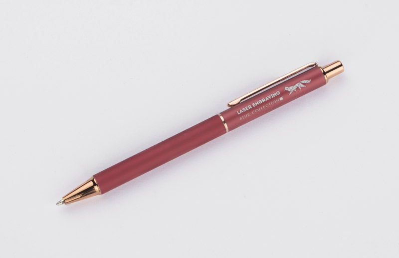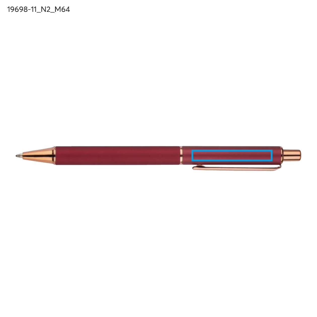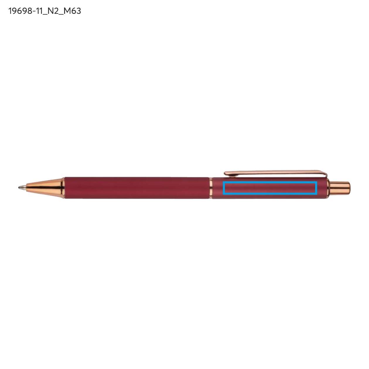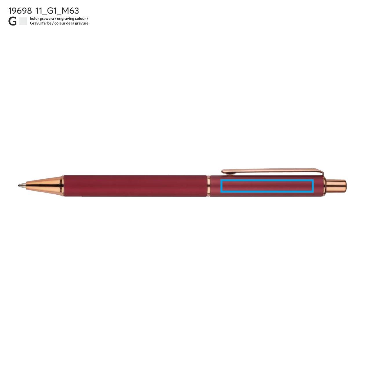 Matowy długopis z akcentami w kolorze różowego złota. Korpus oraz klips wykonane z metalu.